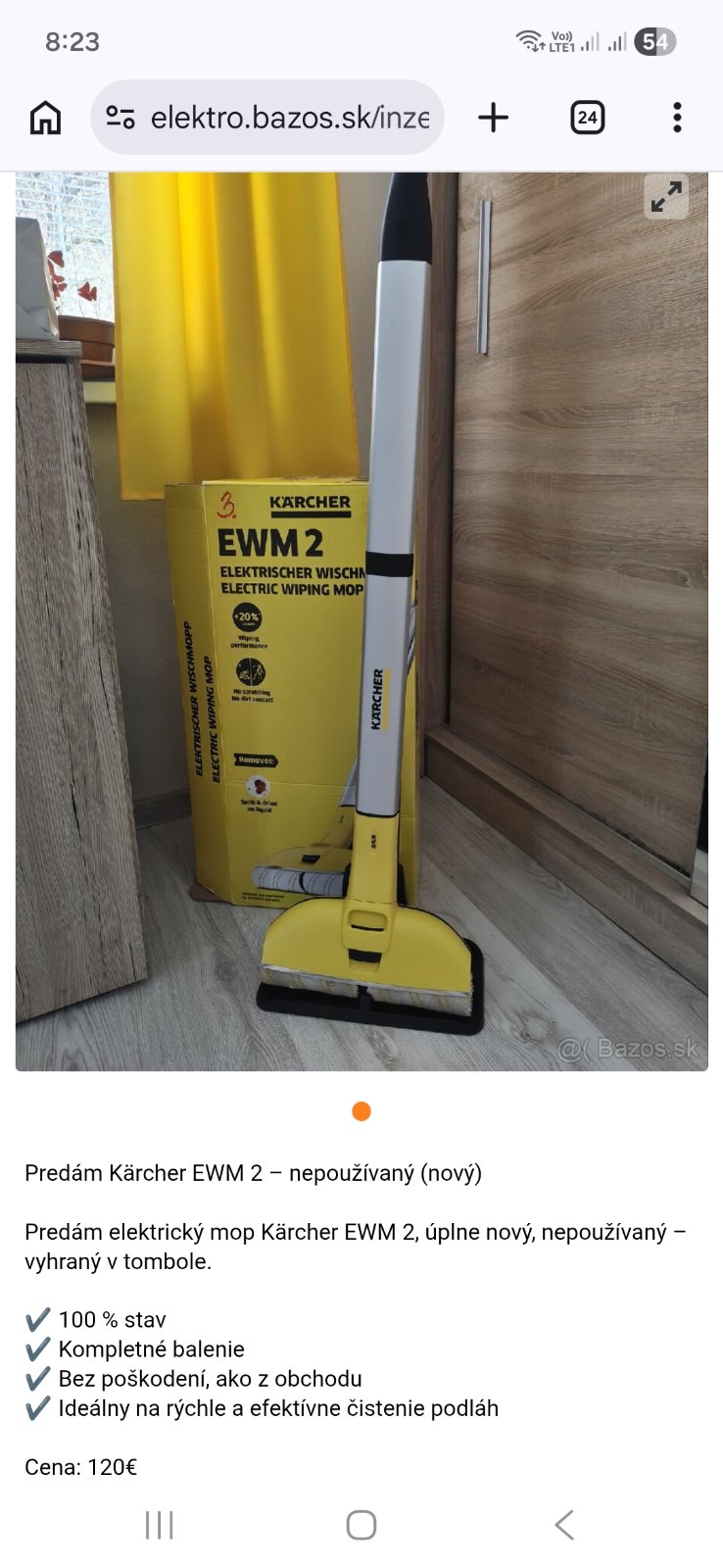 Značka Kärcher, vysáva a zmyva, za mňa dobrá vec, len sme prešli na robotický... Málo používané...