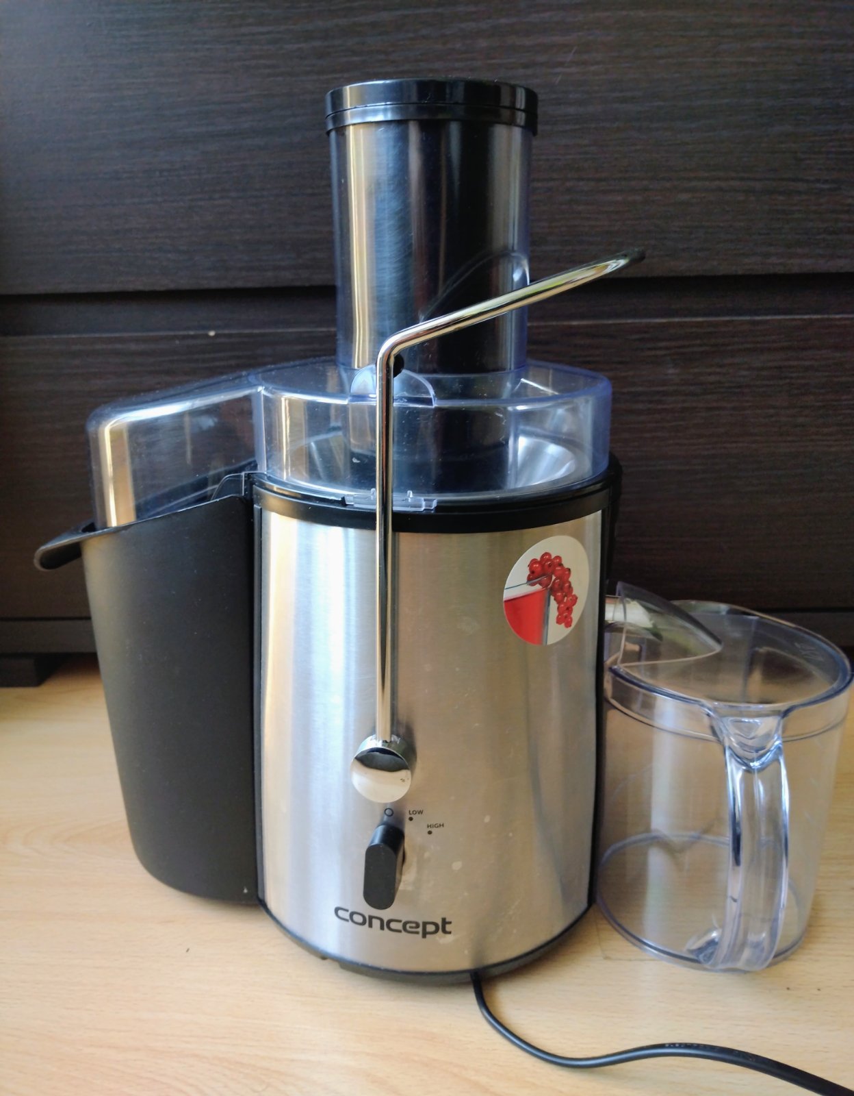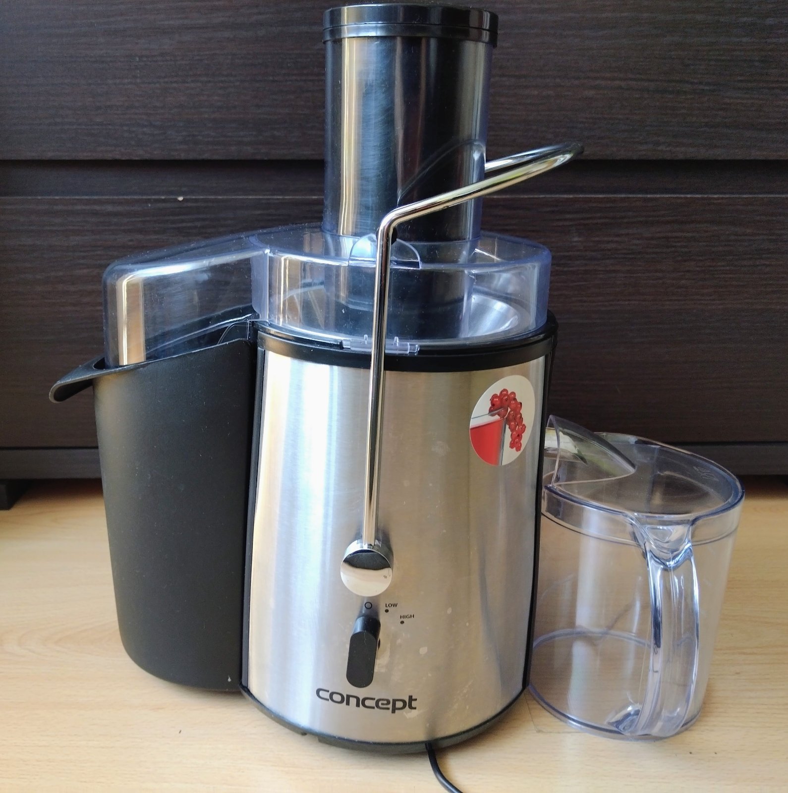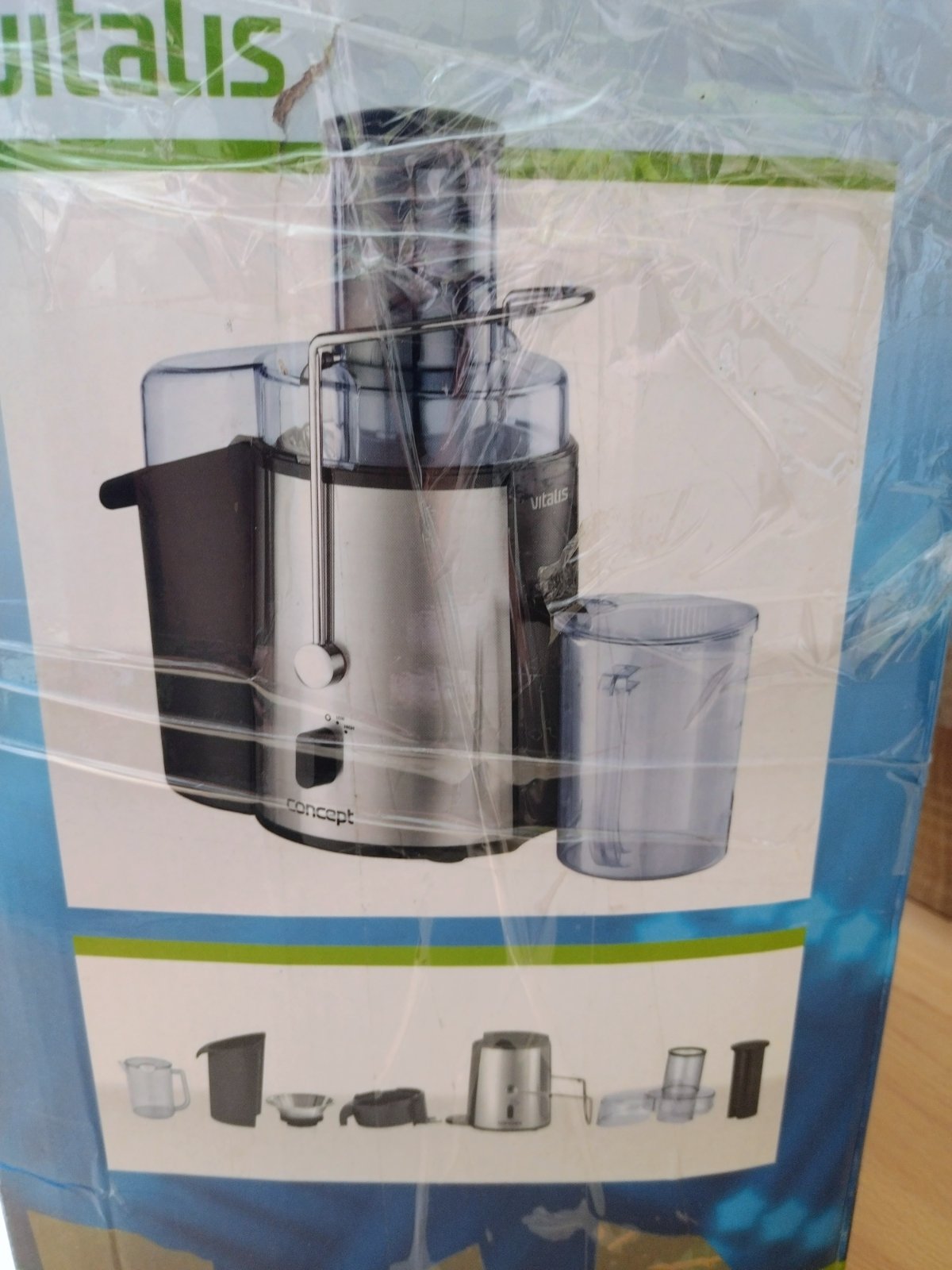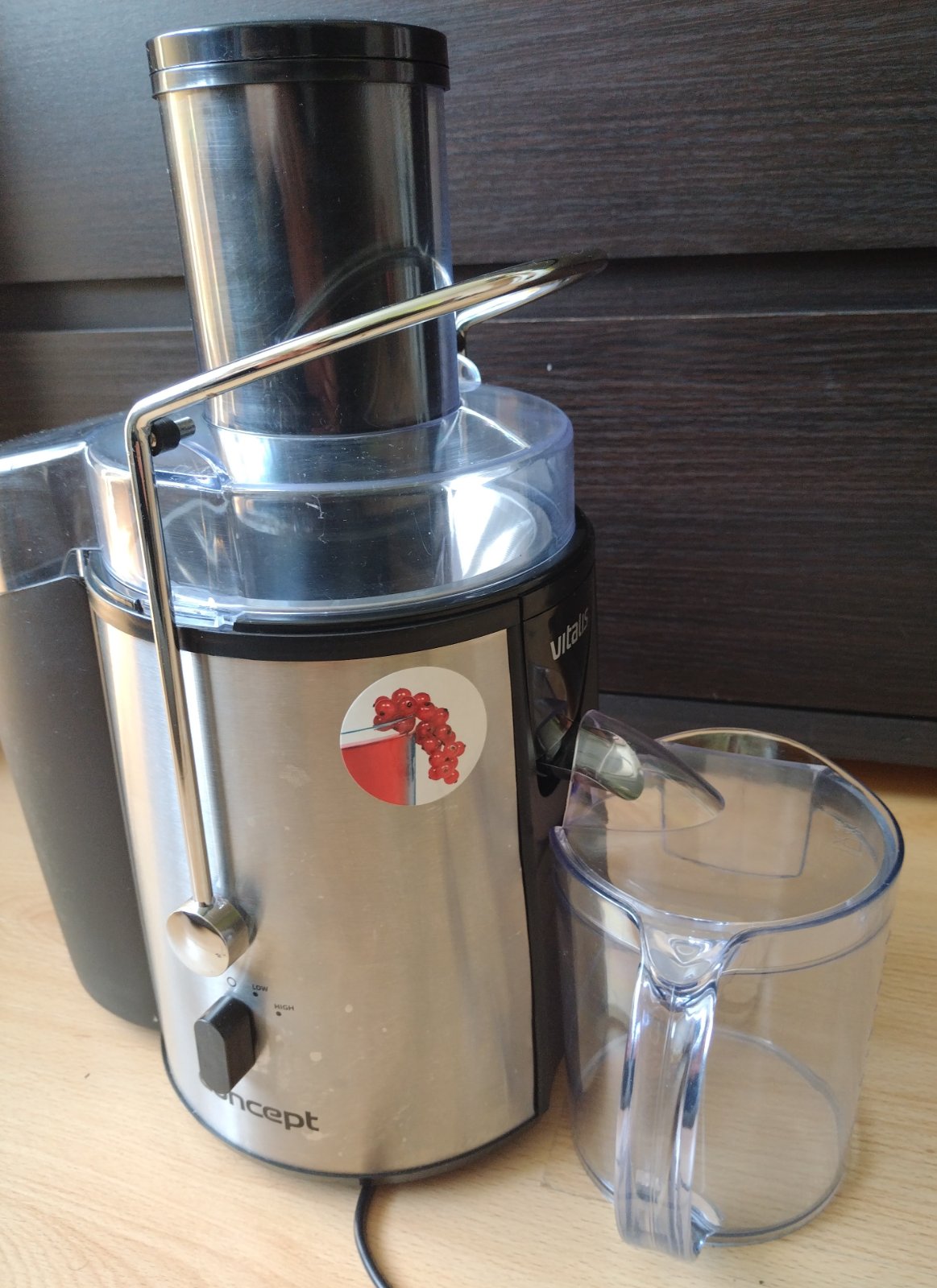 Odstredivý odšťavovač Concept Vitalis,tento model je charakteristický svojím dizajnom z nehrdzavejúcej ocele a vysokými otáčkami, ktoré umožňujú rýchlu prípravu čerstvých štiav.