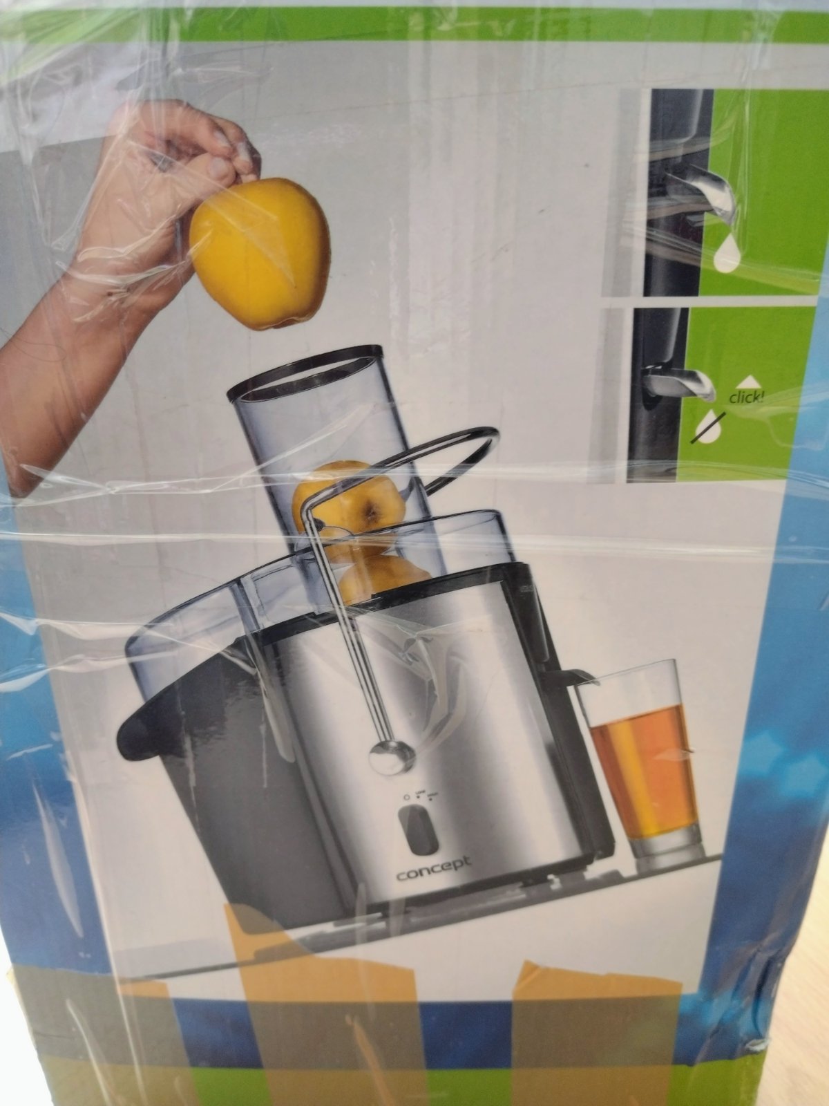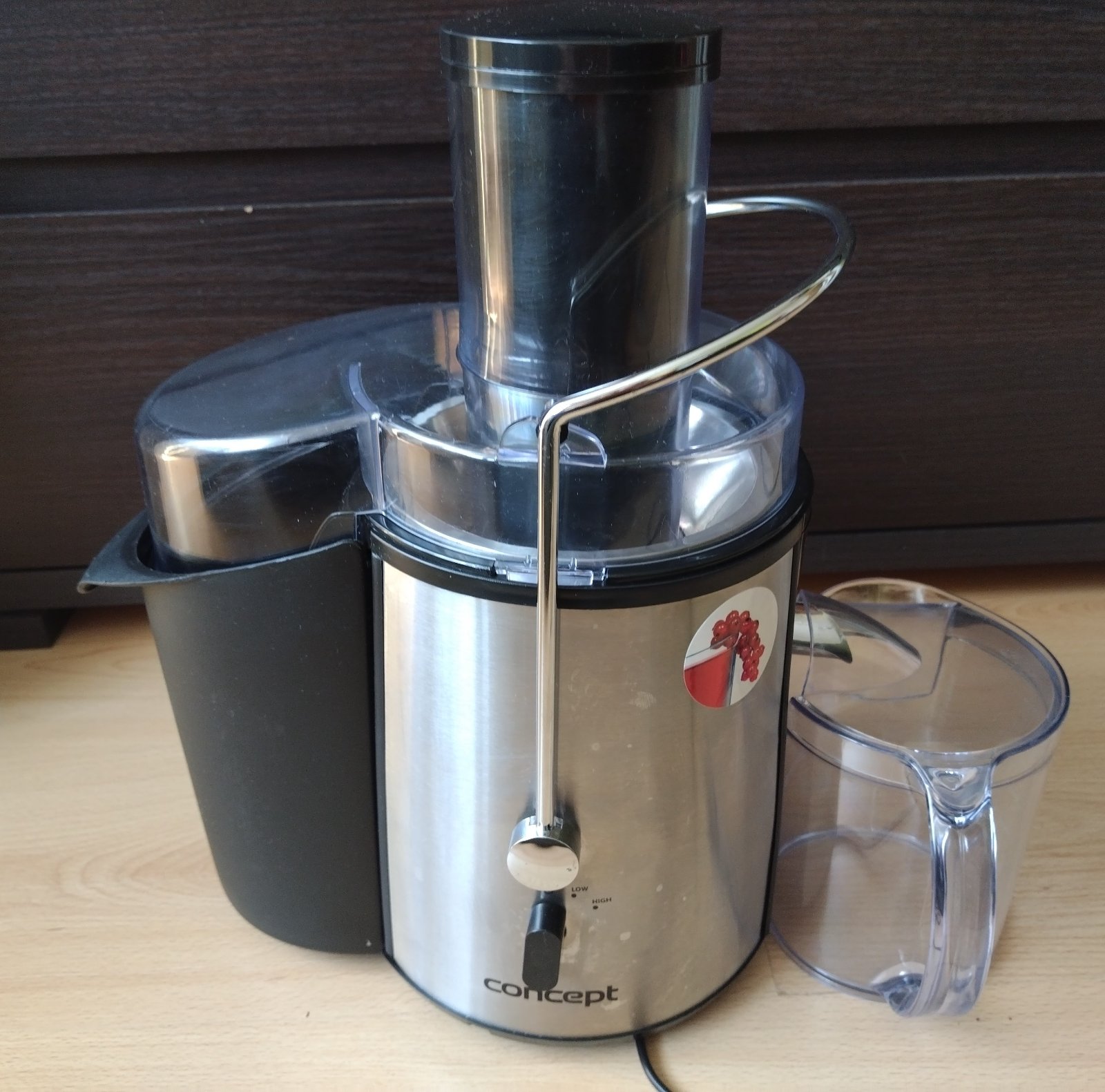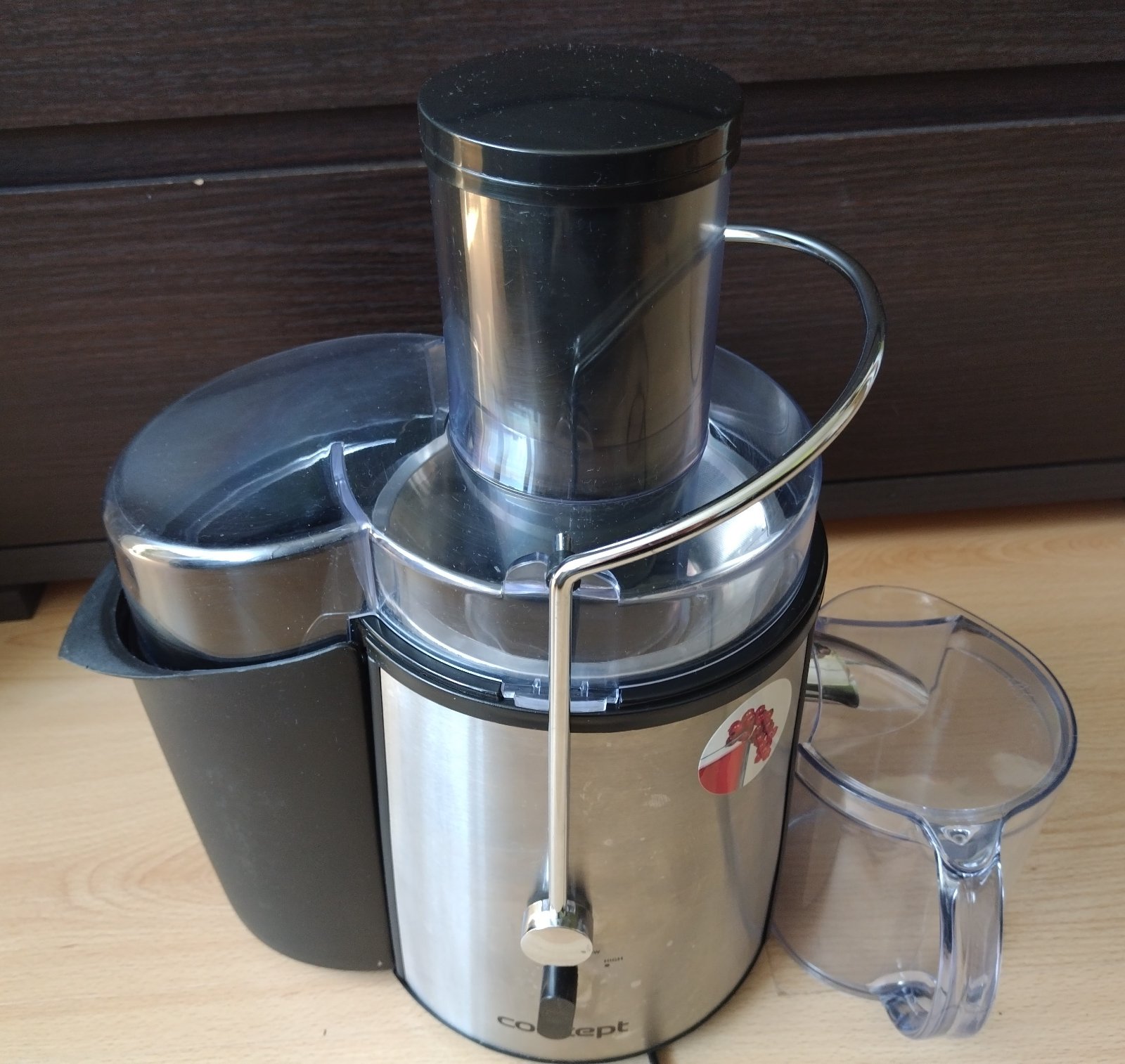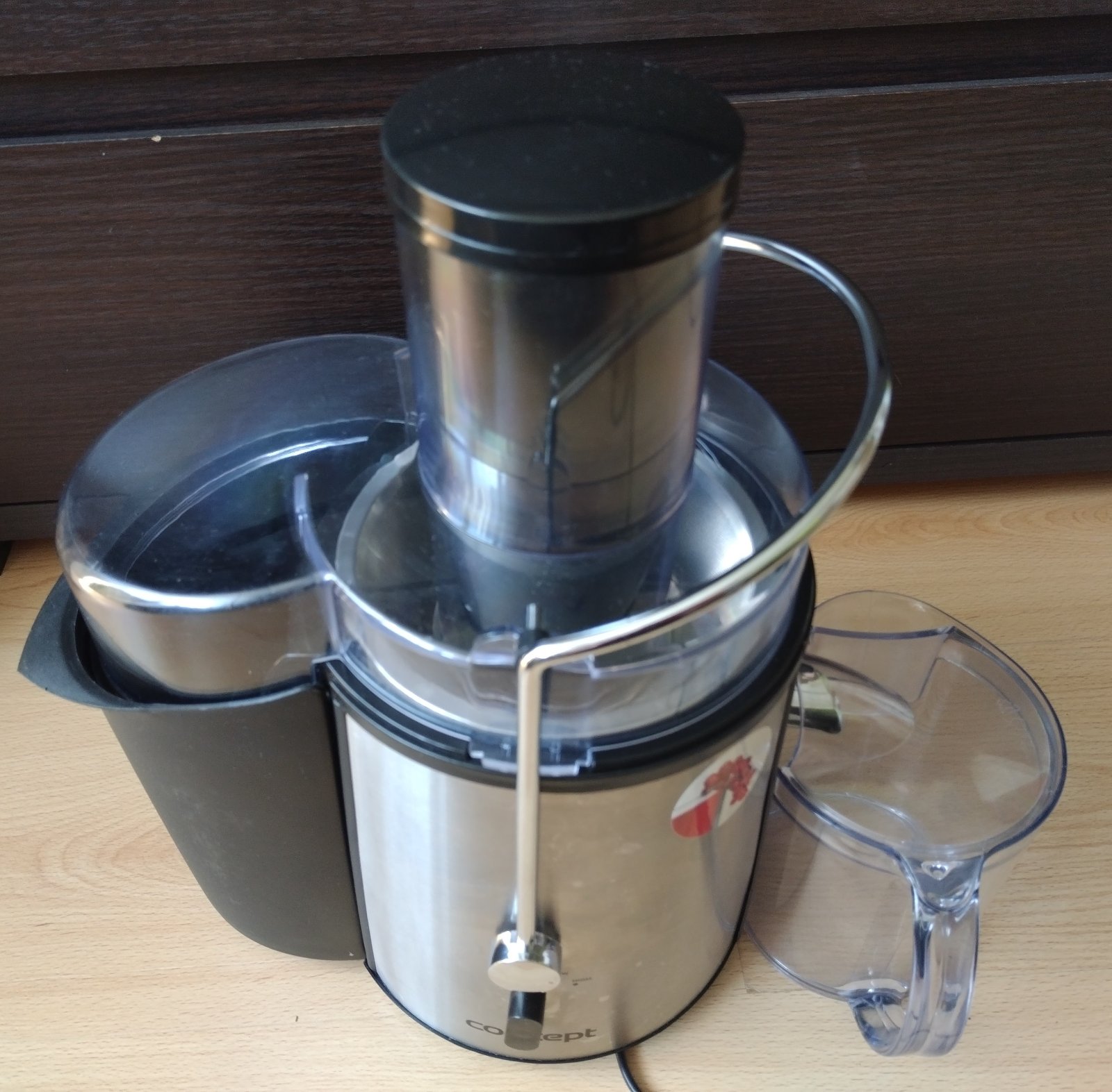Odstredivý odšťavovač Concept Vitalis,tento model je charakteristický svojím dizajnom z nehrdzavejúcej ocele a vysokými otáčkami, ktoré umožňujú rýchlu prípravu čerstvých štiav.