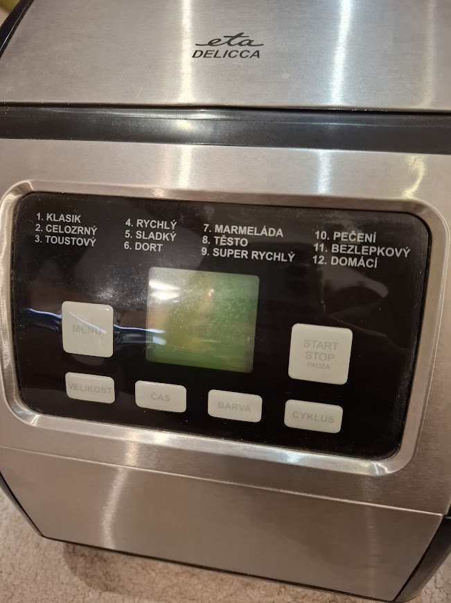 - Prehľad programov: KLASIK, CELOZRNNÝ, hrianky, RÝCHLY, SLADKÝ, DORT, MARMELÁDA, CESTO, SUPER RÝCHLY, PEČENIE, bezlepkový, DOMÁCE