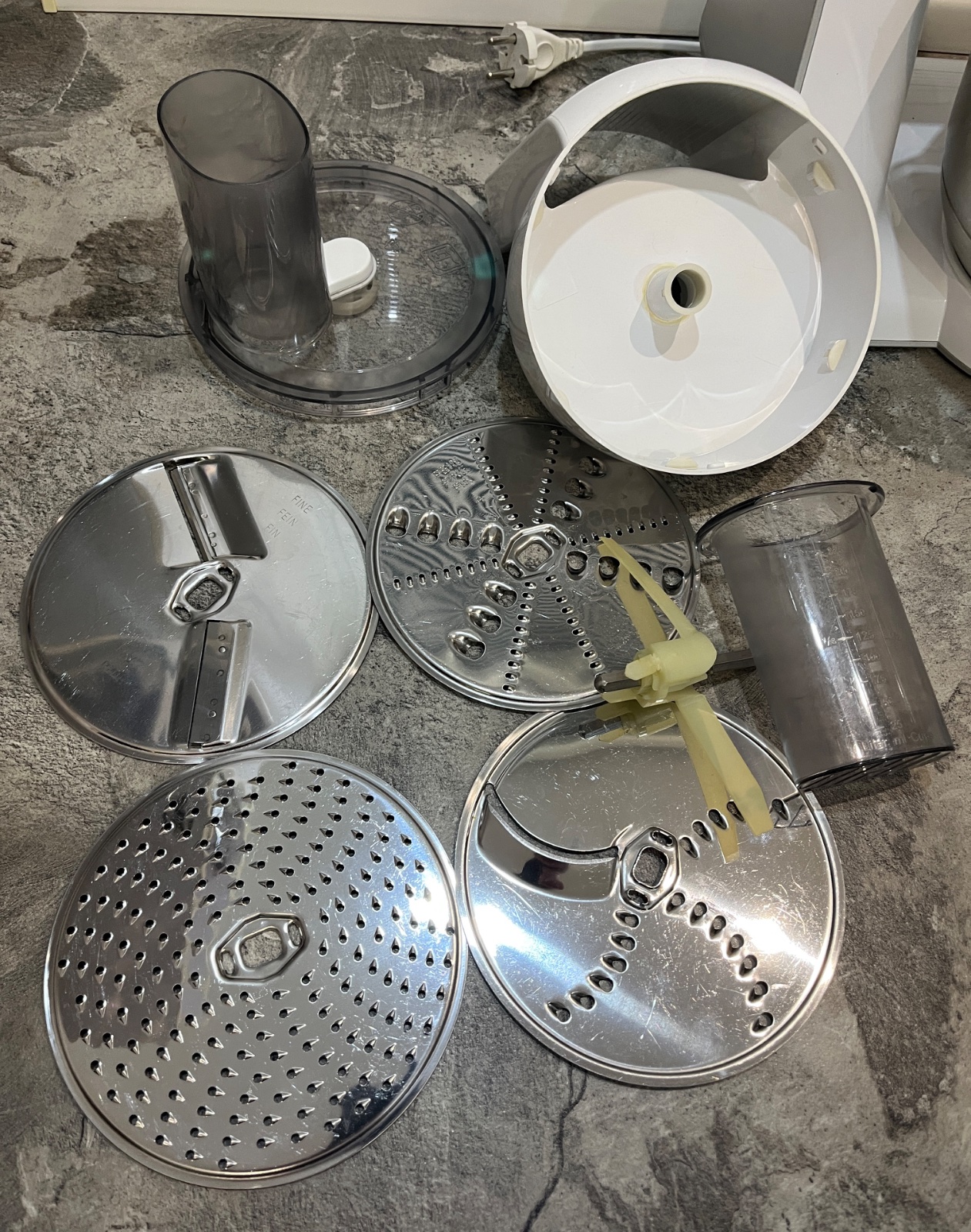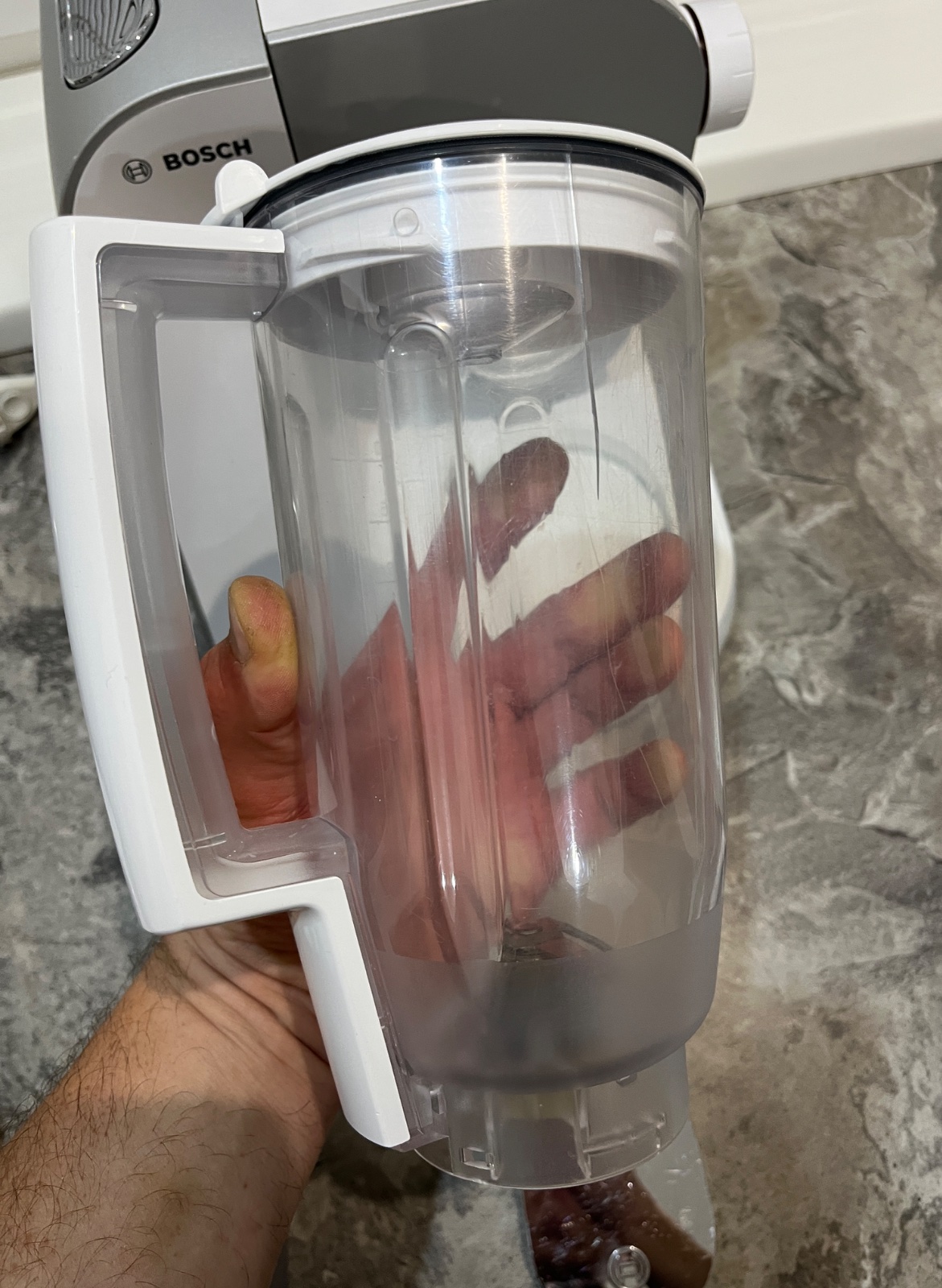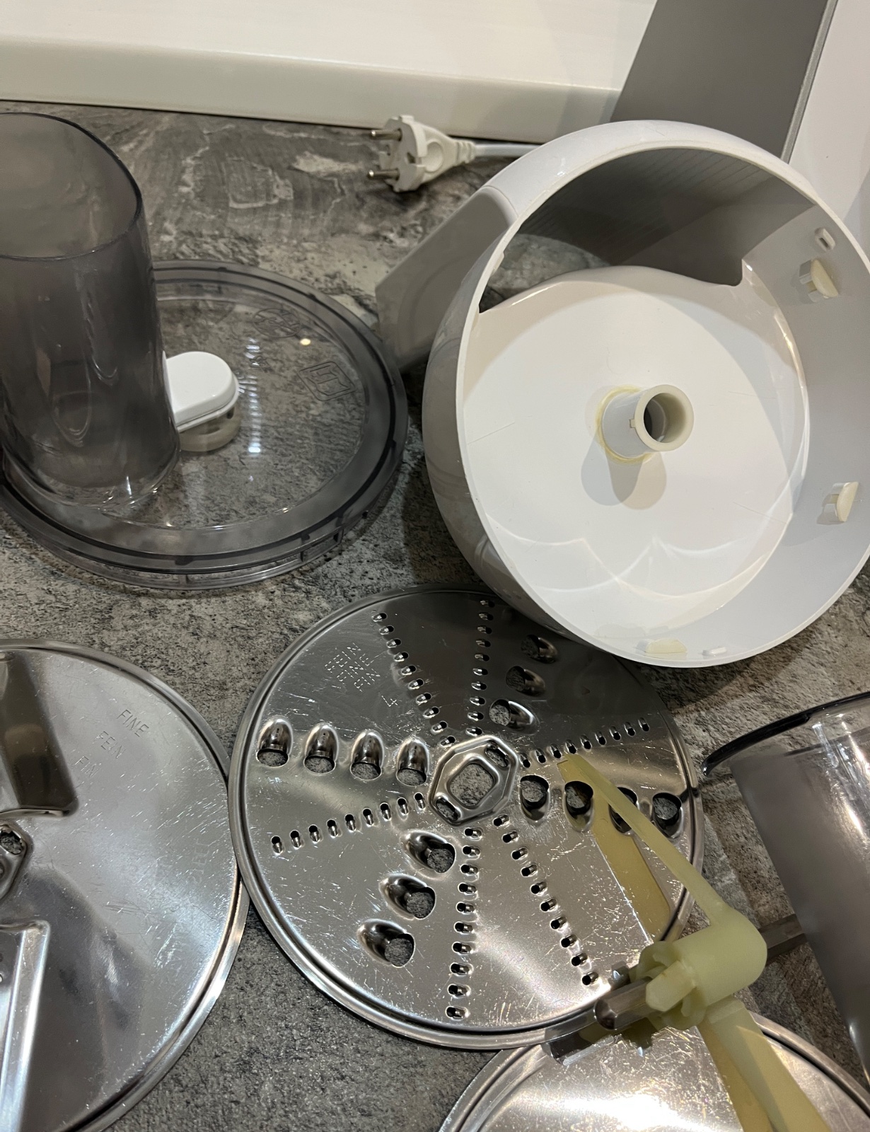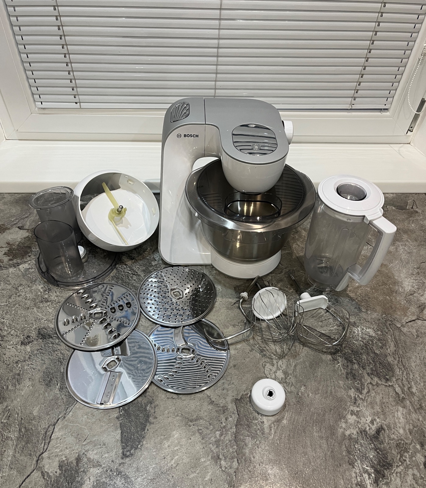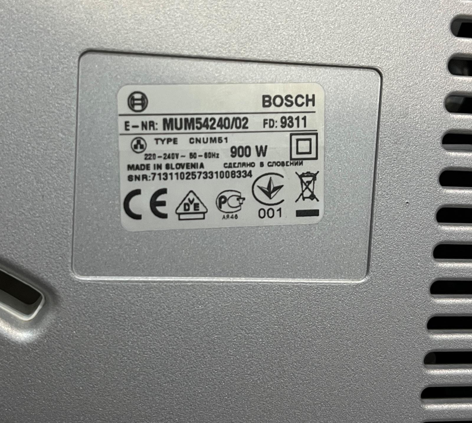 Dobrý deň, predám kuchynský robot Bosch MUM 54240, používaný, plne funkčný, má známky používania, nádoba z vrchu trošku ohnutá ale je to len kozmetická vada, mixovacia nádoba prasknutá ale plne funkčná vidno na fotke, kryt prasknutý ale funkčný, ponúkam za 100€, tel.č. +421918861438 BA Podunajské Biskupice, viem doviezť cestou na Záhorie, Skalica, Trnava, Nitra, Zlaté Moravce, Levice, NZ, DS, alebo pošlem Packeta.