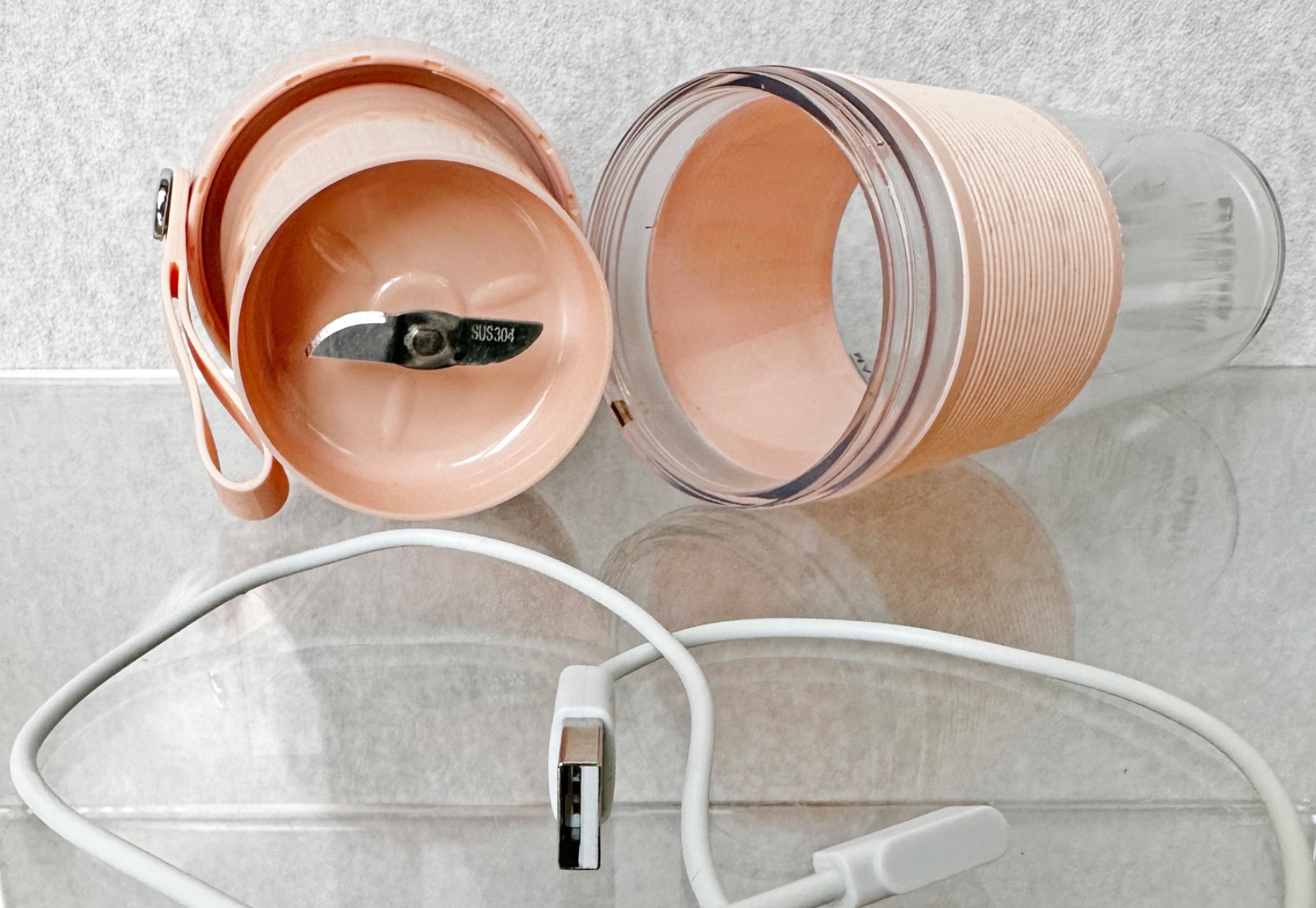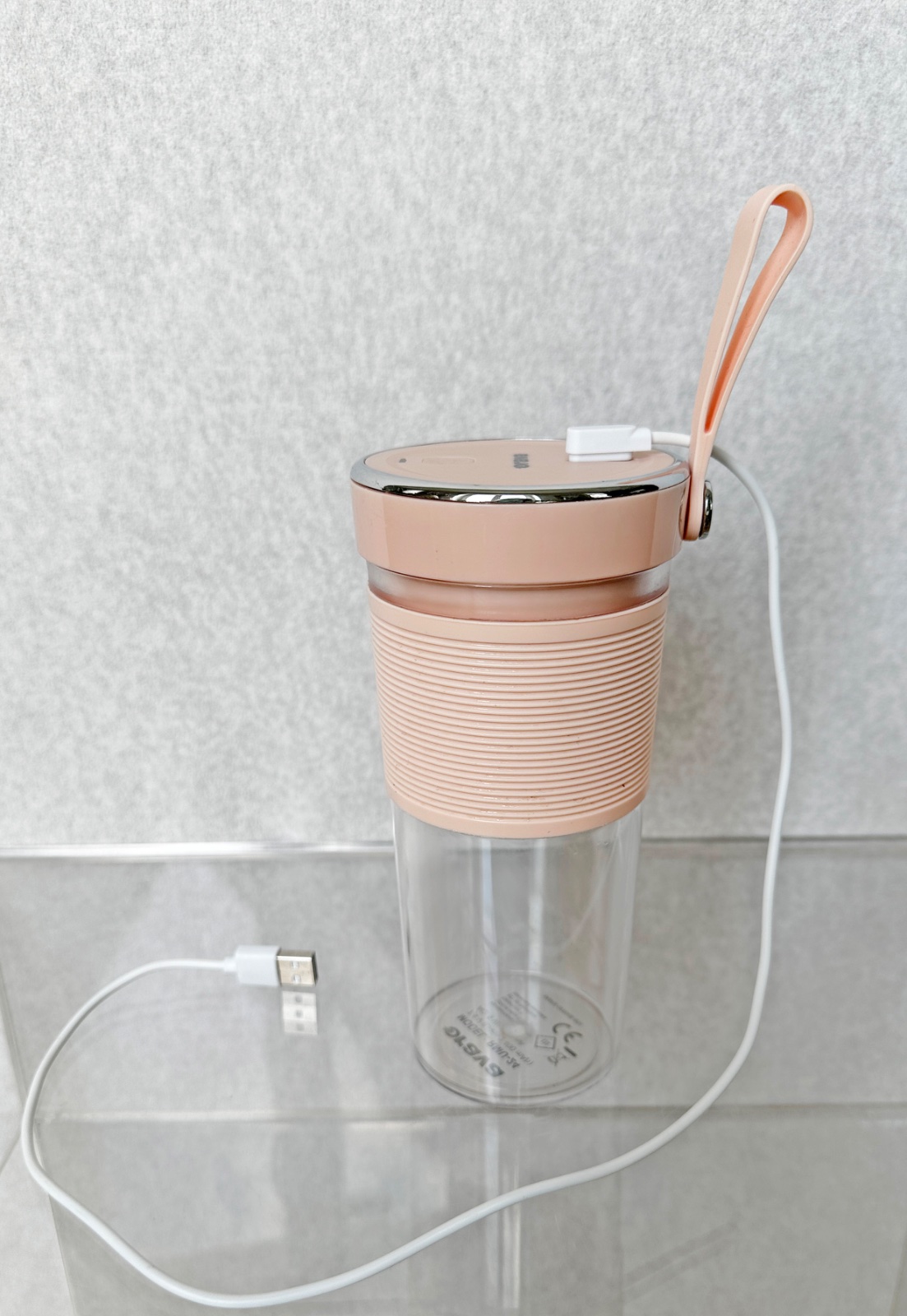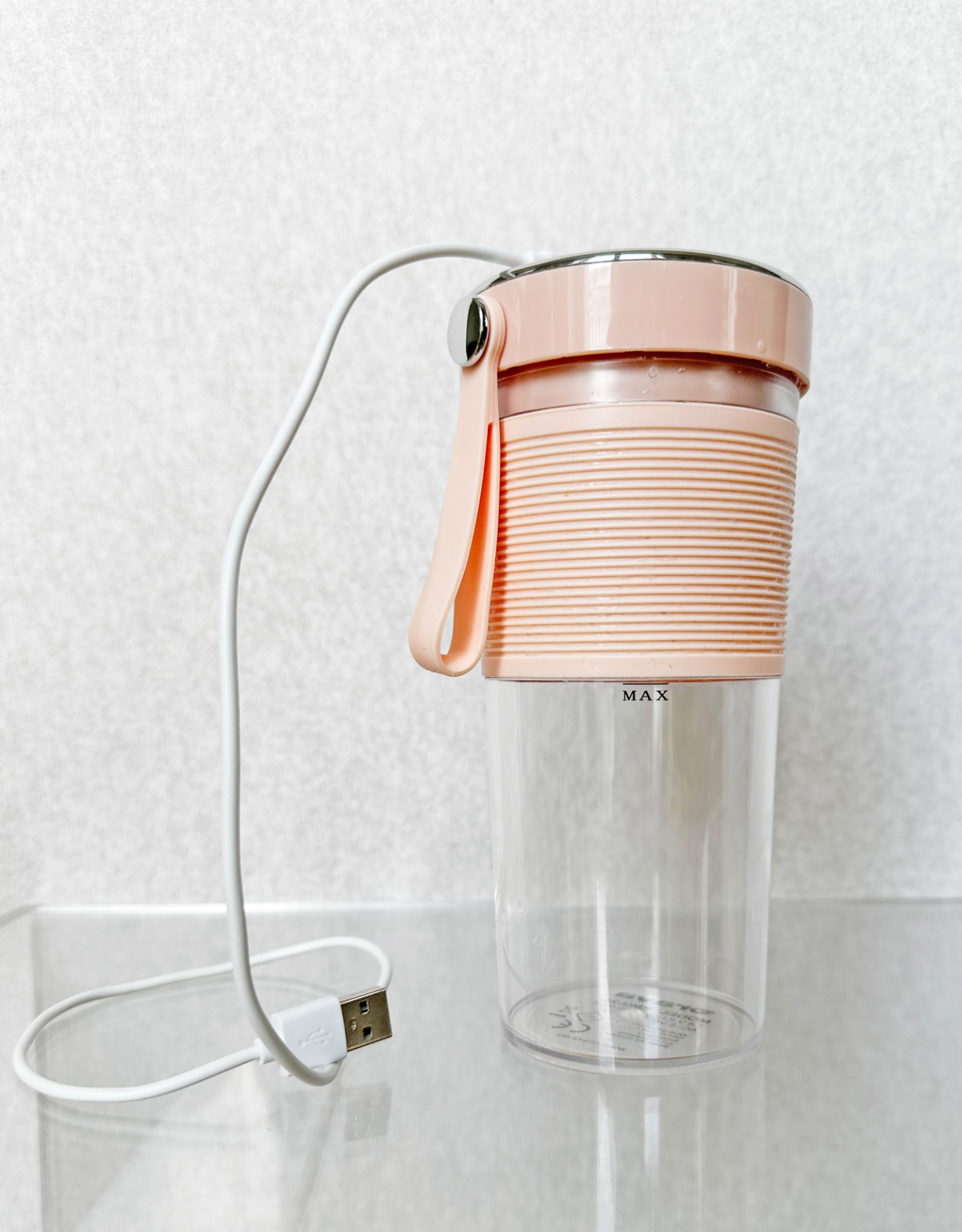 Prenosný USB smoothie mixér - jednoduchá obsluha, ľahko umývateľné, skladné, rýchle raňajky. Antikorový 2-čepeľový nôž, silikónový remienok na nosenie, LED svetelný indikátor 20 000 ot/min.