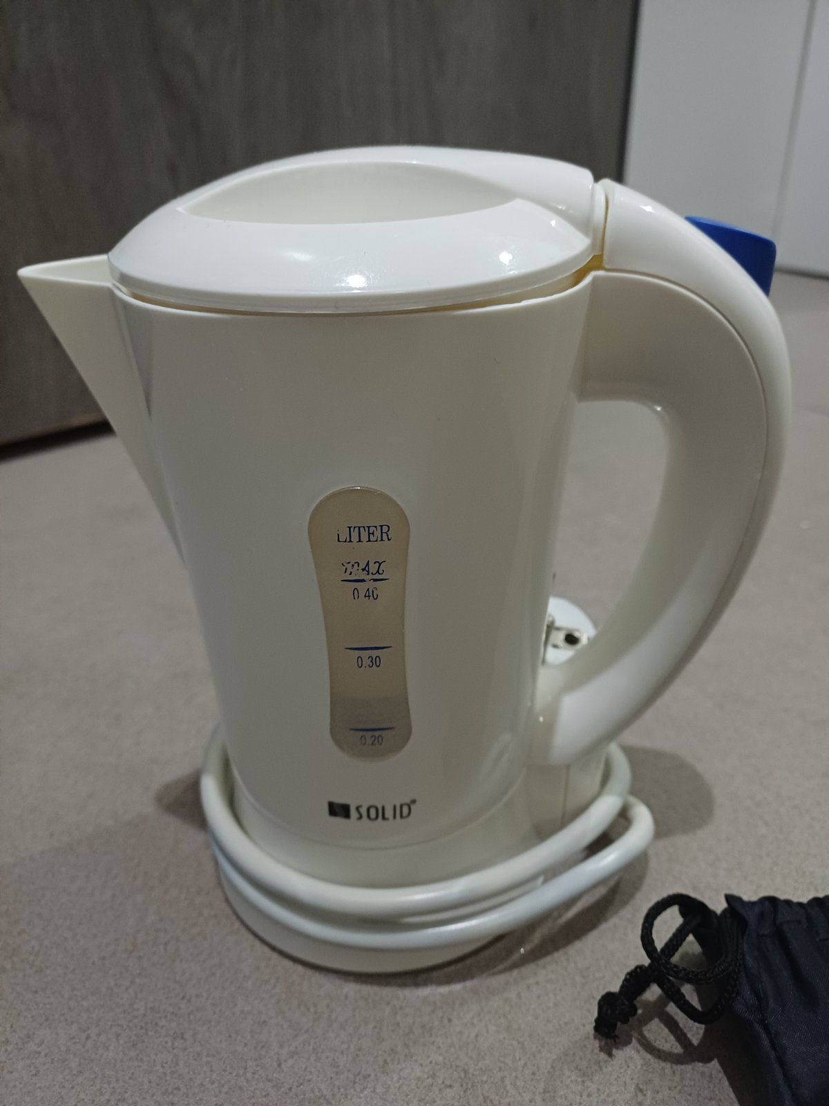Predám cestovnú mini rýchlovarnú kanvicu. Maximálny objem 0,4l. Súčasťou balenia sú dva poháriky a praktický cestovný obal.