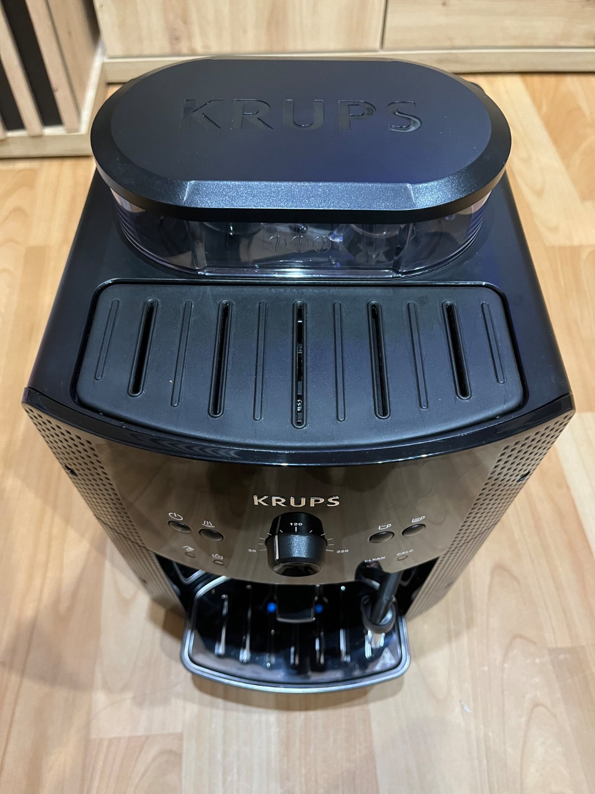Predám zachovalý, málo používaný automatický kávovar KRUPS, plnefunkčný, jednoduché ovládanie, možnosť dve kávy naraz, napeňovač mlieka, vyčistený, pravidelne odvápňovaný, má novú odkvapkávaciu tácku