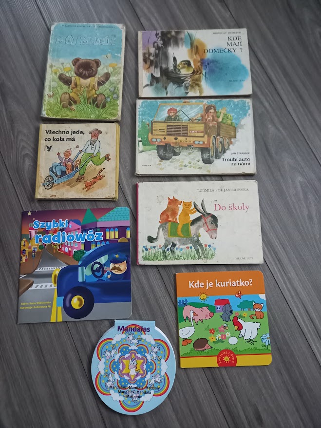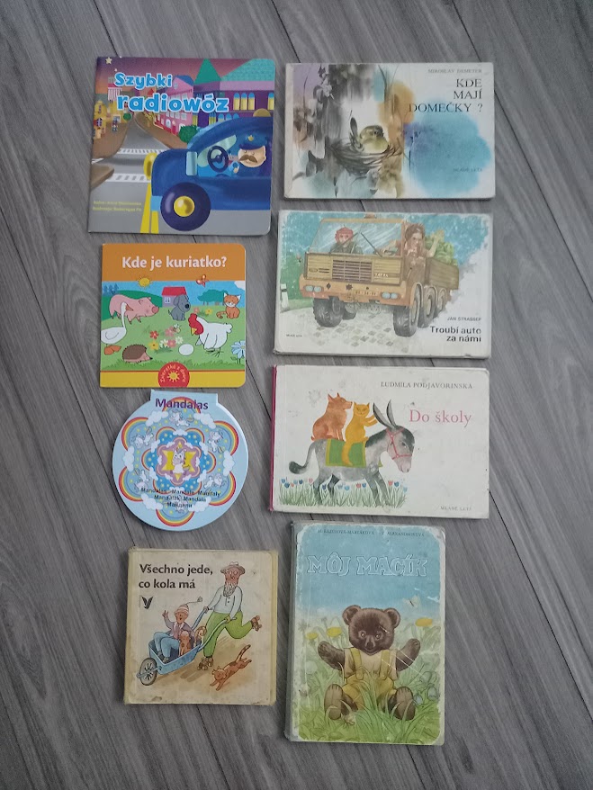 Retro knihy 50-70 rokov -nálezový stav, vidno používanie, sú tam aj fľaky, obaly ošúchané. Môj macík + Všechno jede čo ma kola sú viac zničenejšie, aj sem tam niekde popísané - tie by som doložila zadarmo. Doložím zadarmo aj poľskú knižočku Szybki radiowoz + omaľovanku s 21 obrázkami. Pri odbere všetkých cena 3 € + poštovné.