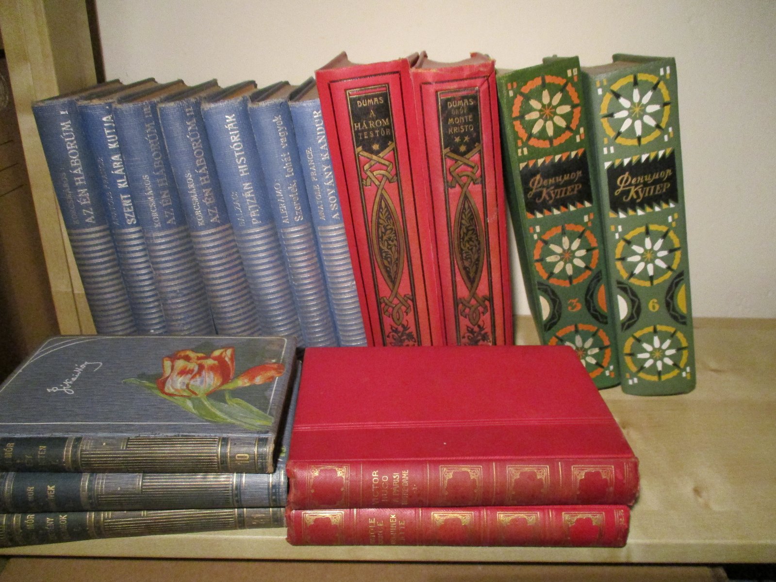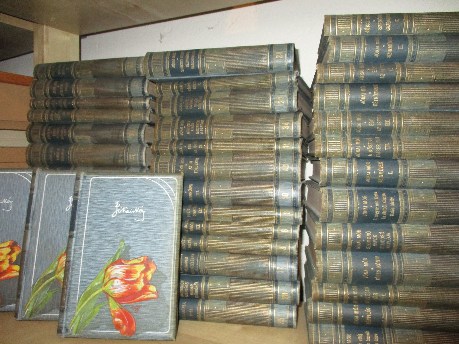 1. kniha v šedo modrom obale so zlatou a plastickým vyobrazením tulipánu navrchu, vydané v rokoch 1904-1906, autorom románov je Mór Jókai a sú v maďarskom jazyku; je ich 42 kusov - cena za kus je 5,-€+poštovné;