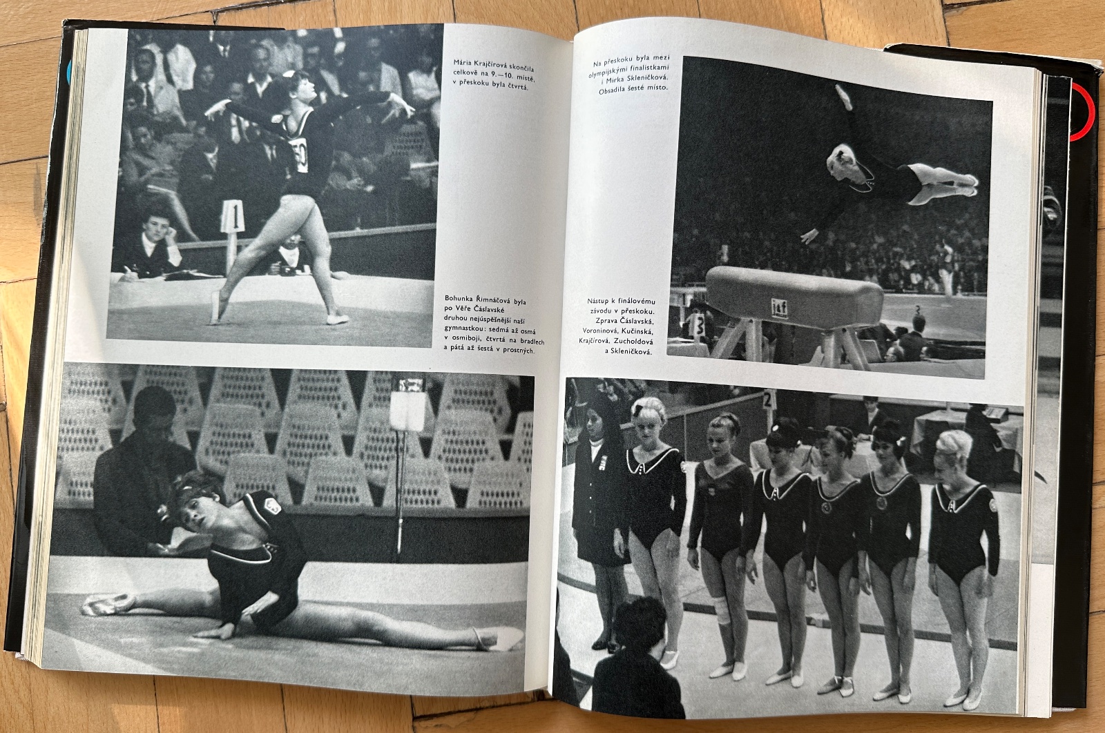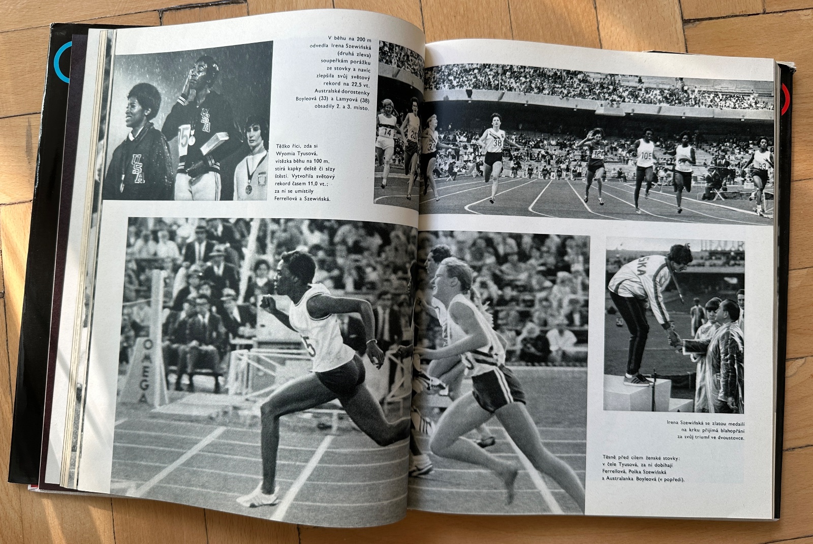Reprezentatívna publikácia vydavateľstva Olympia (Praha), približne rok 1969. Tvrdá väzba s farebným prebalom, veľký formát, bohatý obrazový materiál.Kniha zachytáva atmosféru olympiády v Mexiku s desiatkami fotografií a profilmi legiend: