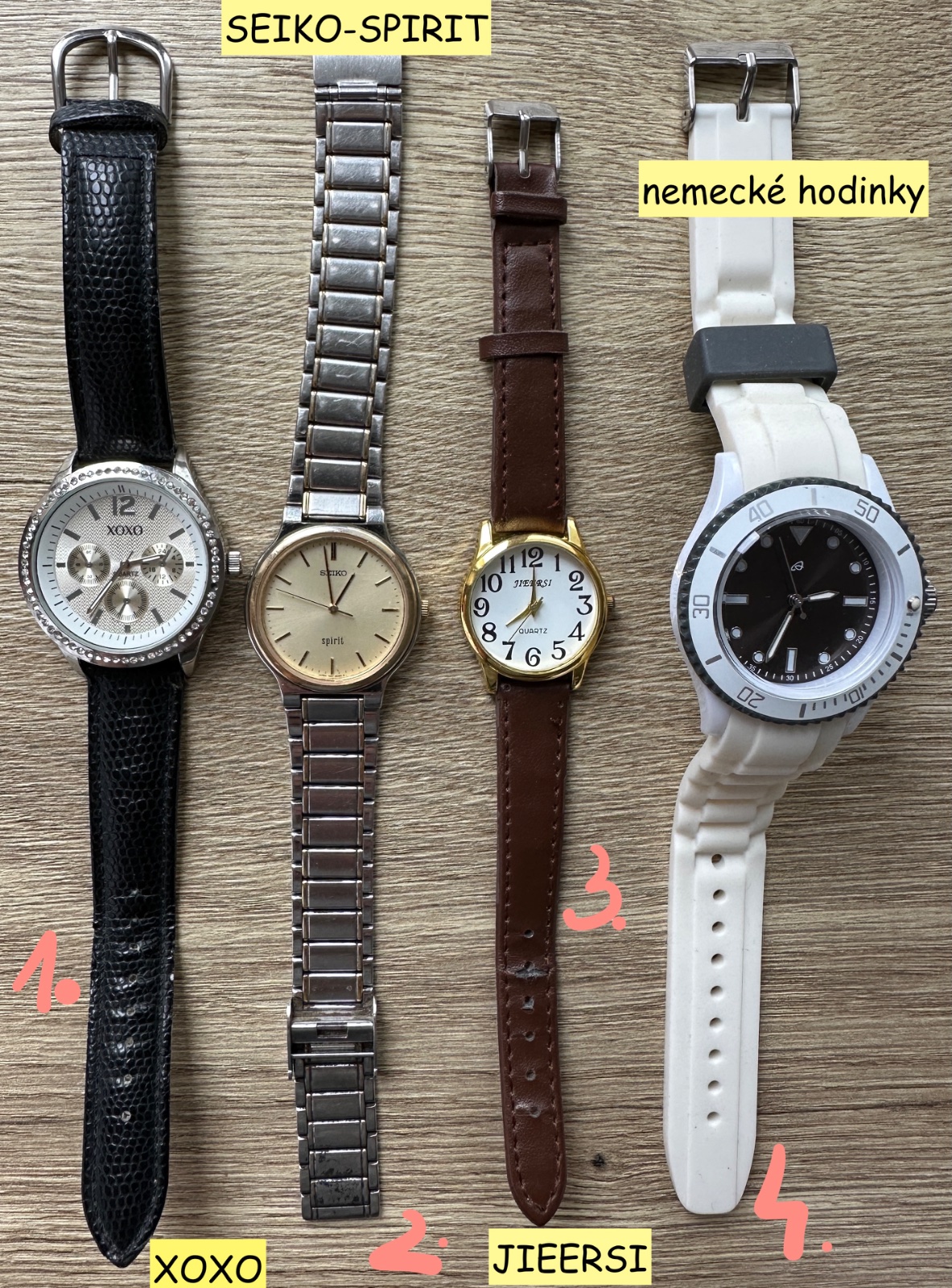 Predám 4 kusy hodiniek XoXo, Seiko, Jieersi a nemecké hodiny.