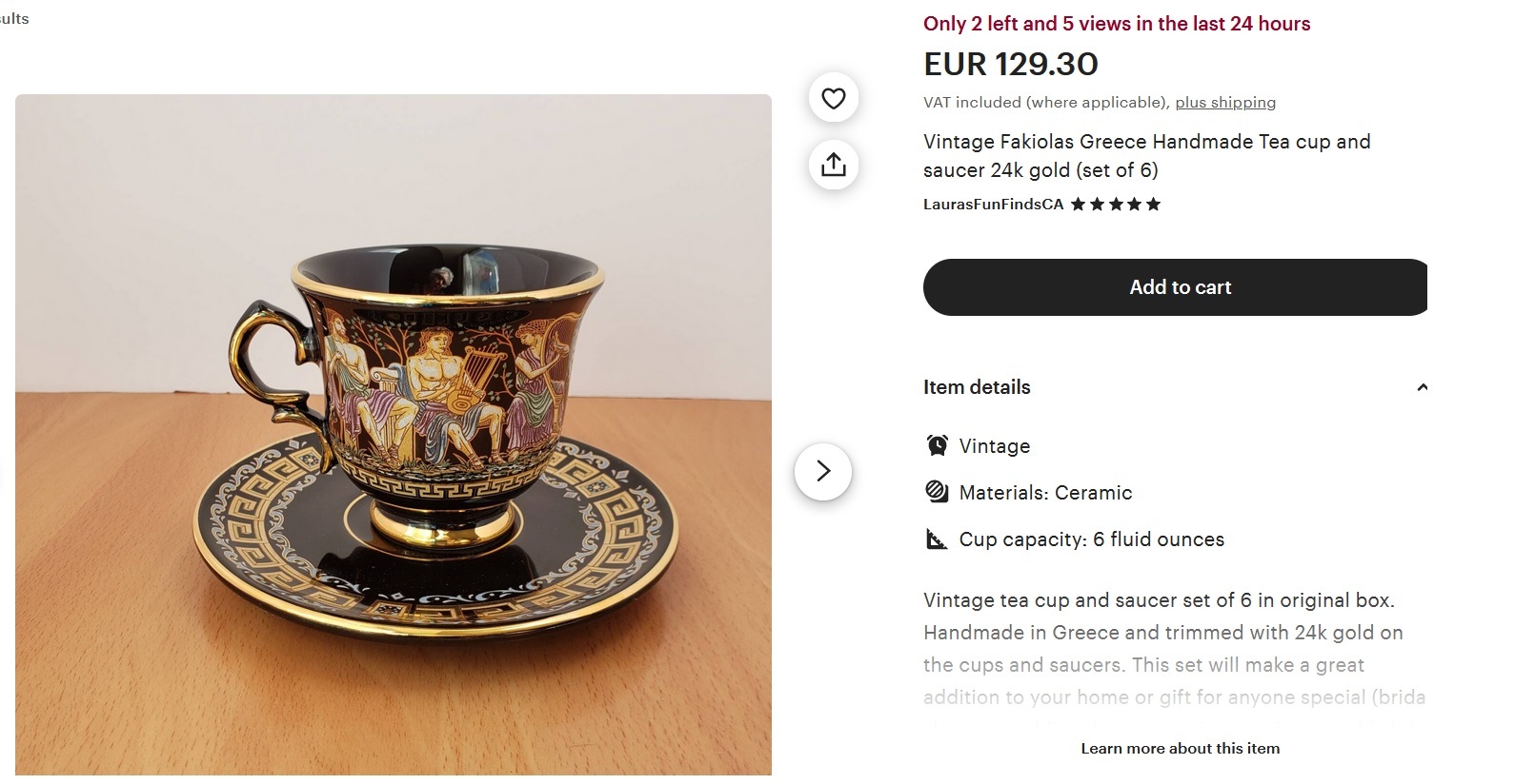 Made in Greece 24K gold šálky.