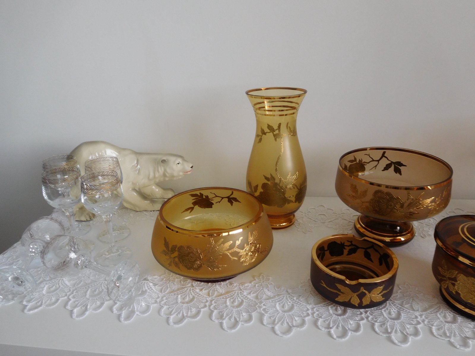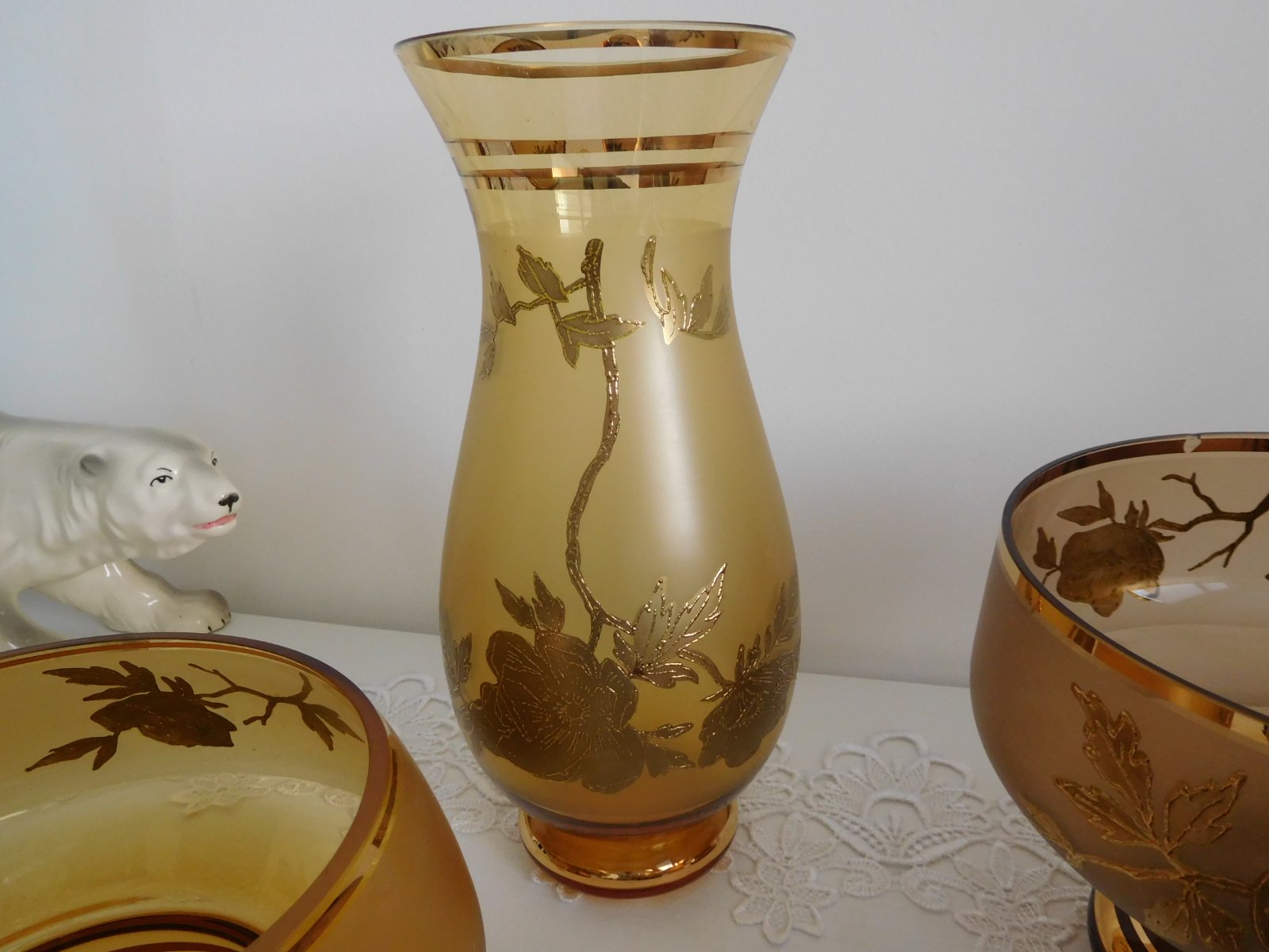 3-Vása zlatá priemer-12 cm,výška-29 cm, ob. brucha-41 cm-TOP TOP stav---75 eur,
