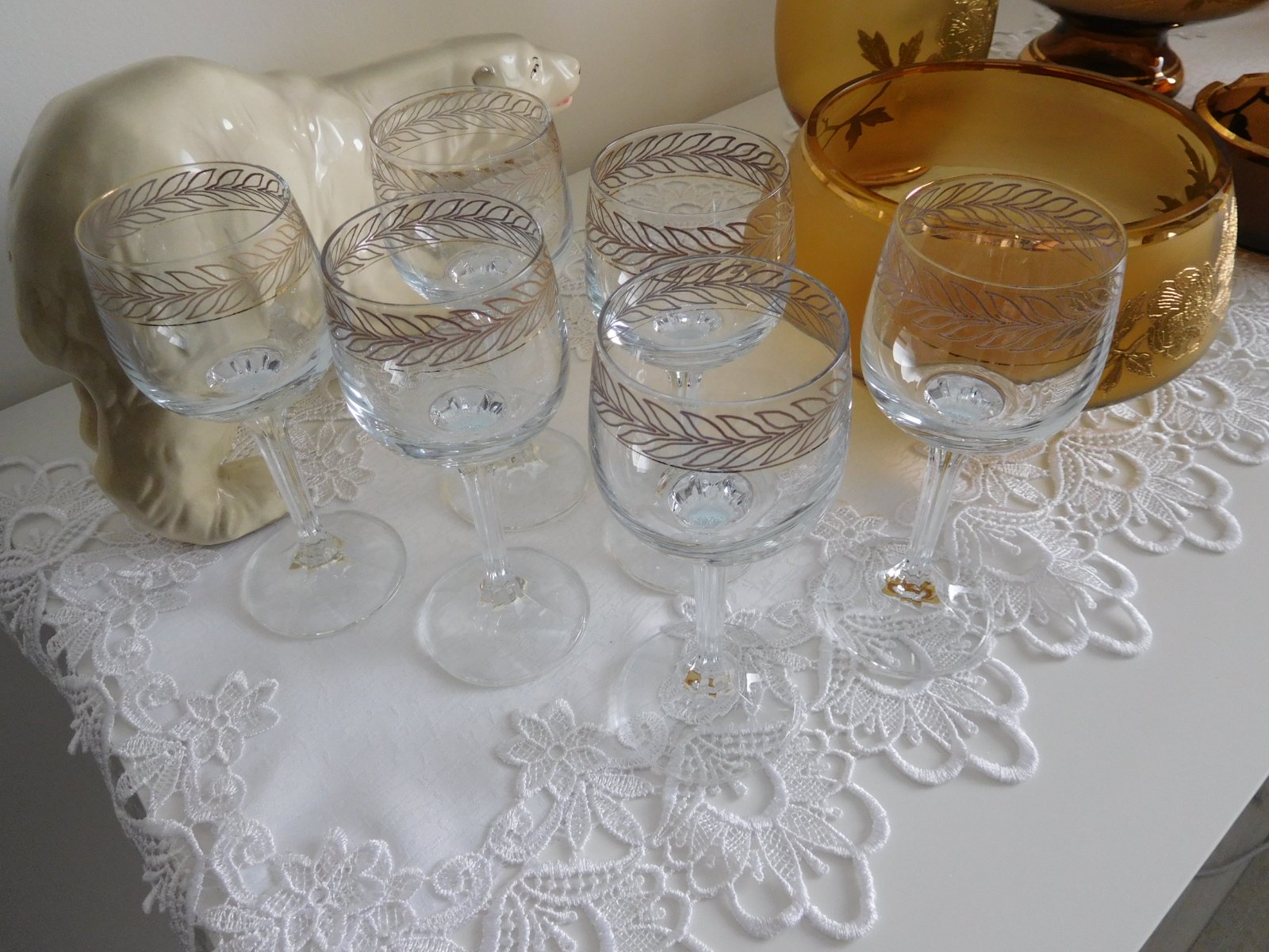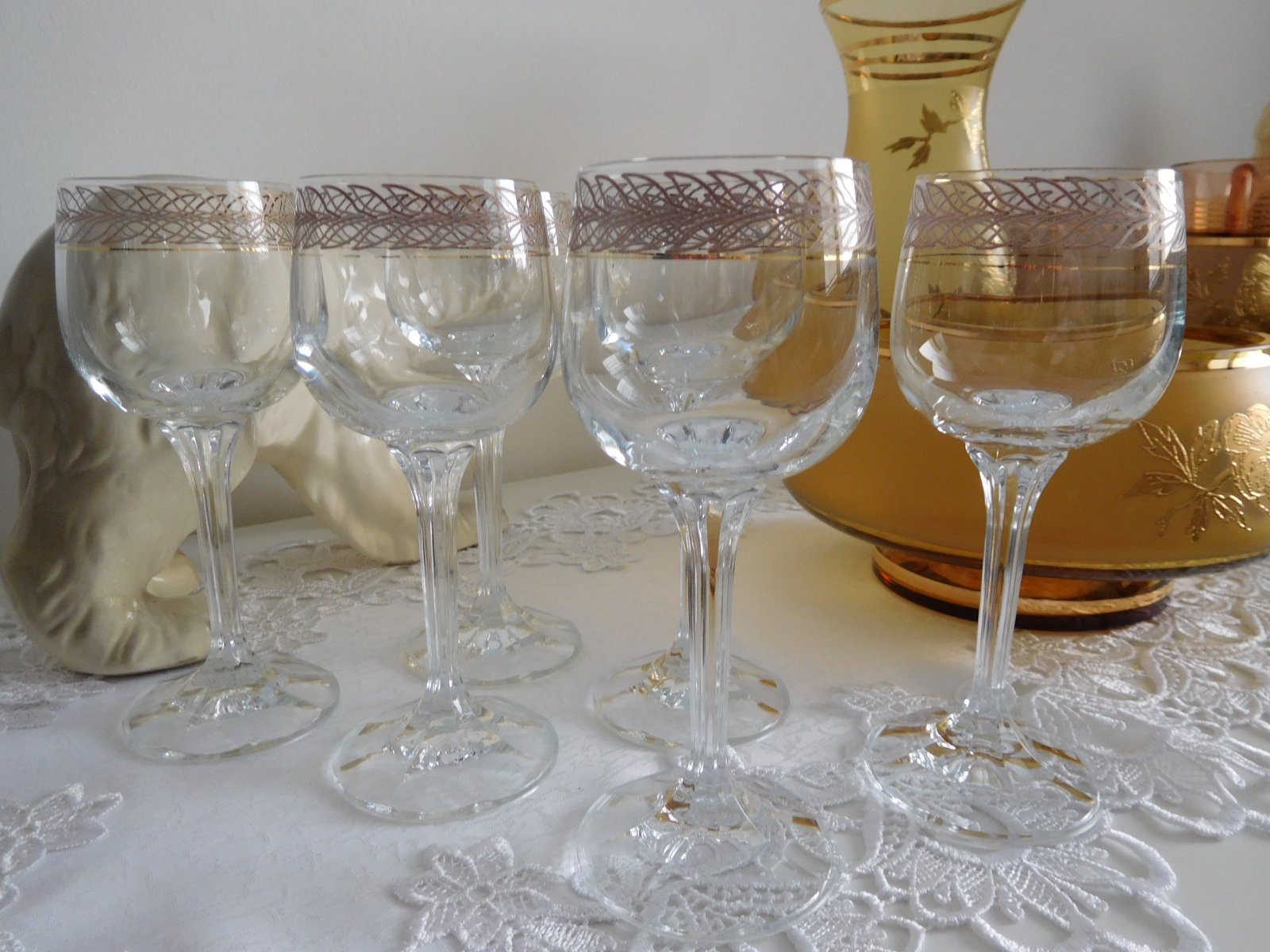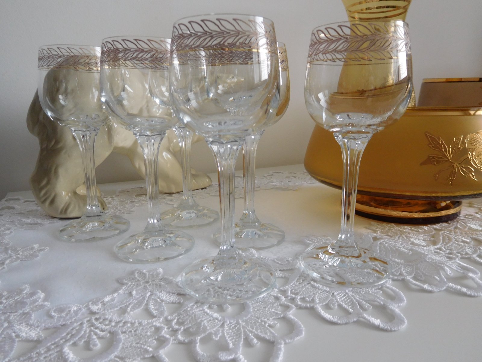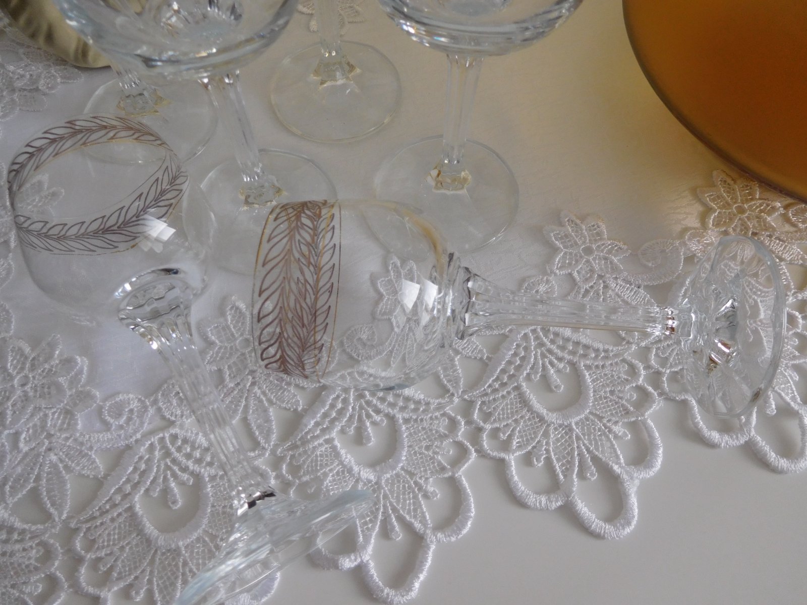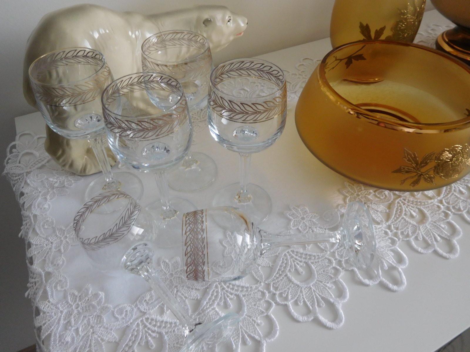 5-Poháre na nožičke sklo-priemer-6 cm, výška-17 cm,-TOP stav---45 eur,