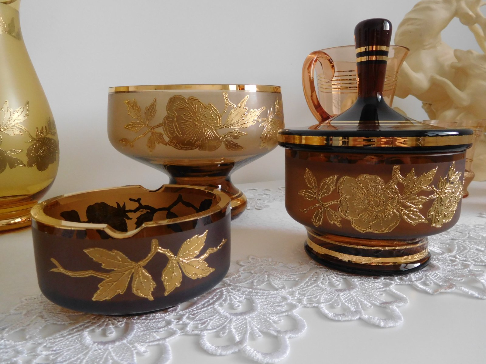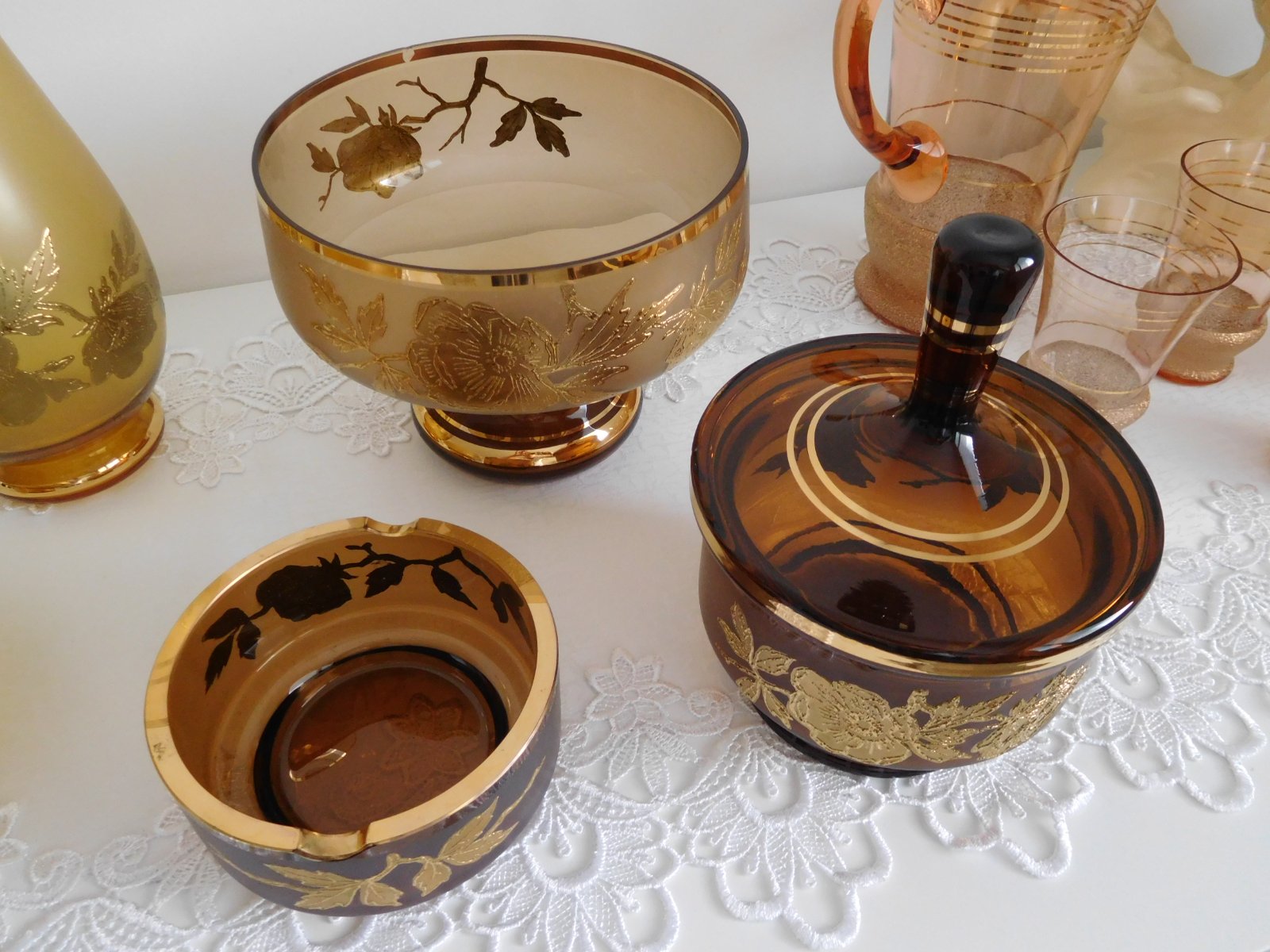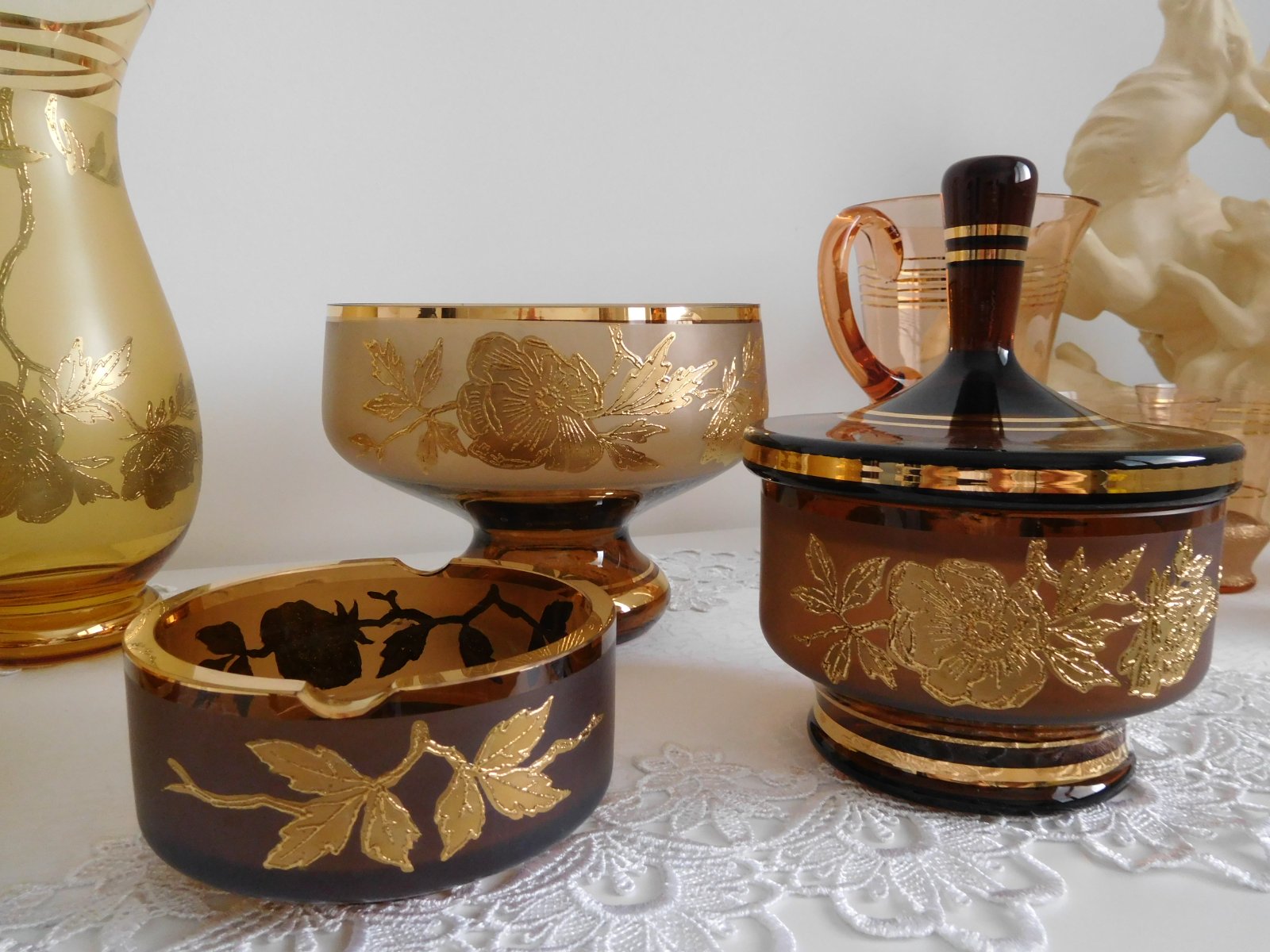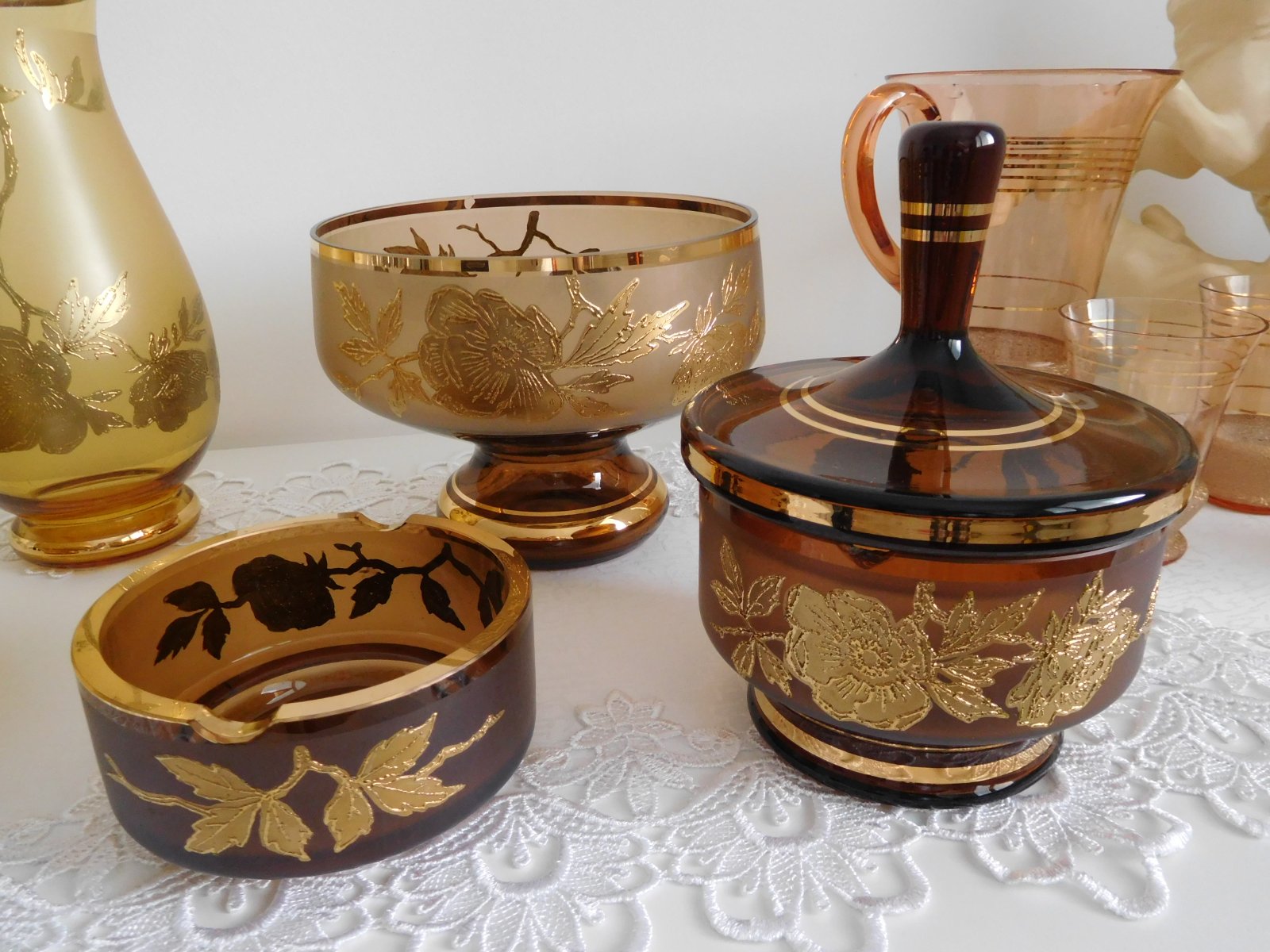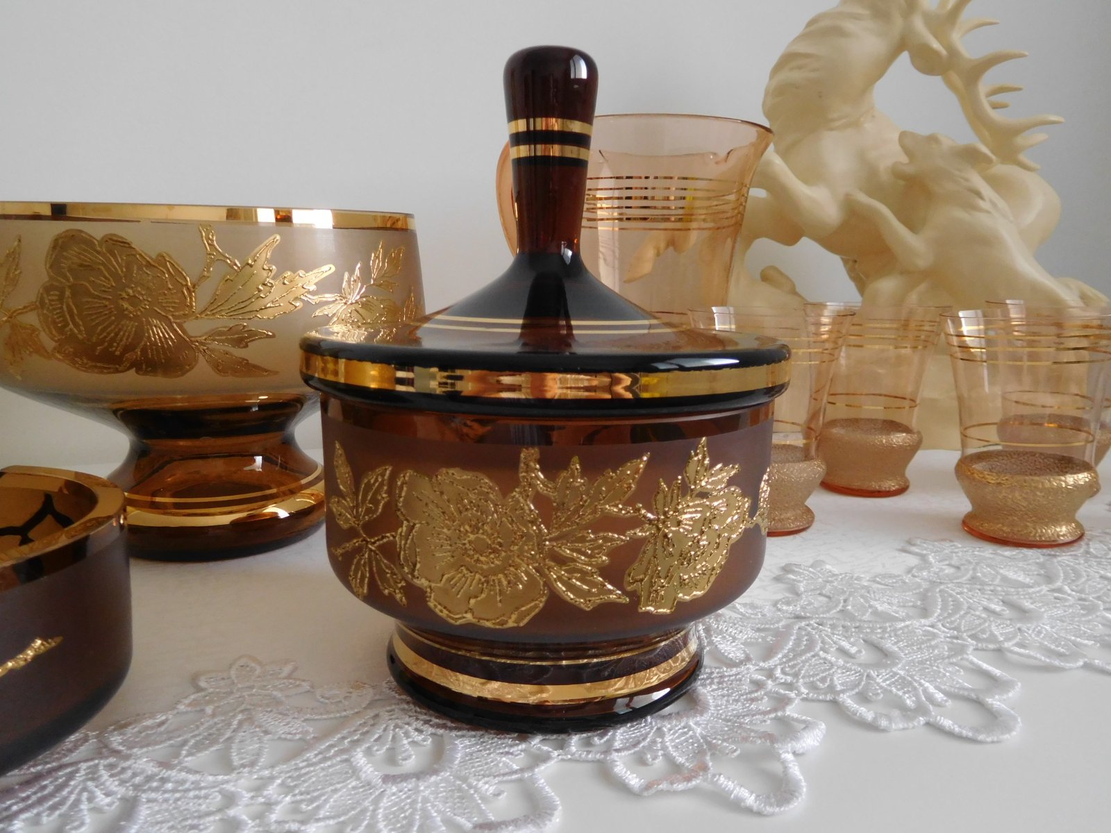 Sklo hnedasté, poháre na nožičke,poháre na limonád