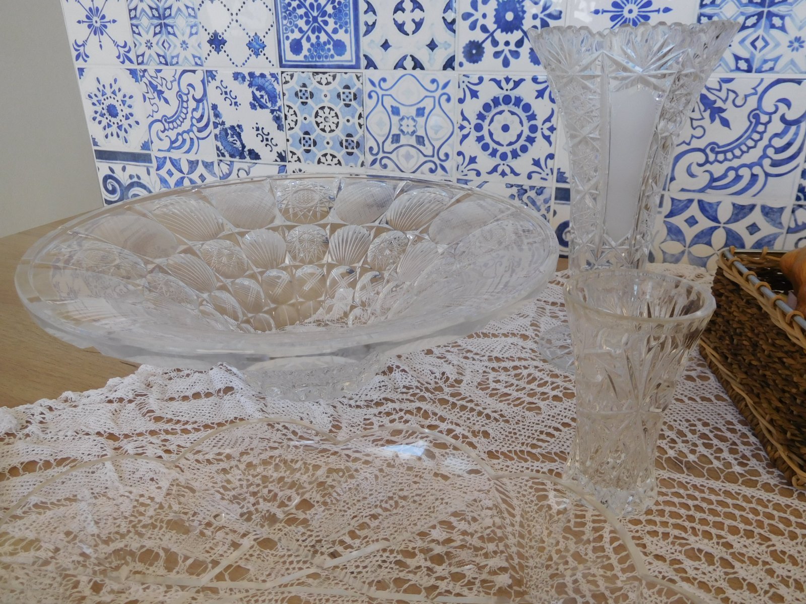 Brúsené sklo, misa váza vázička