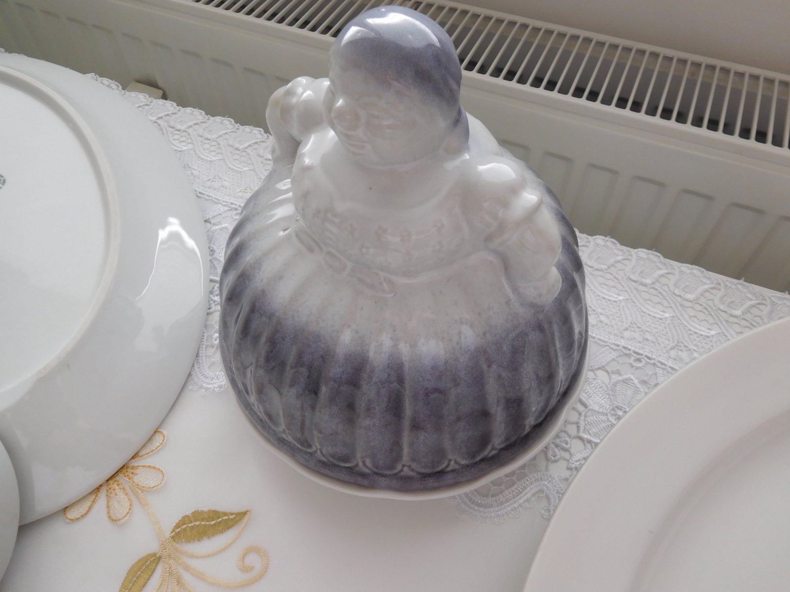 3-GAZDINKÁ PORCELÁNOVÁ- ako pokrievka buď na koláčik alebo máslo, alebo ovocie-S podložným tanierikom-Vv TOP TOP stave,