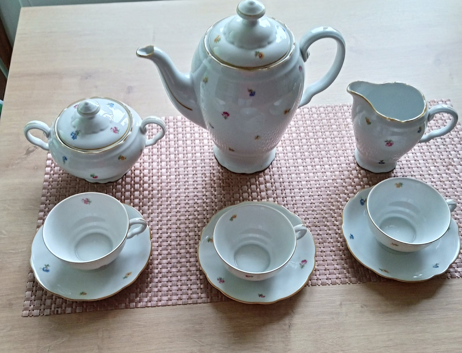 Predám starožitnú čajovú súpravu. Je neúplná, tri šálky nie sú. Má cca 80 rokov . Dekor na okrajoch je žltookrová farba.