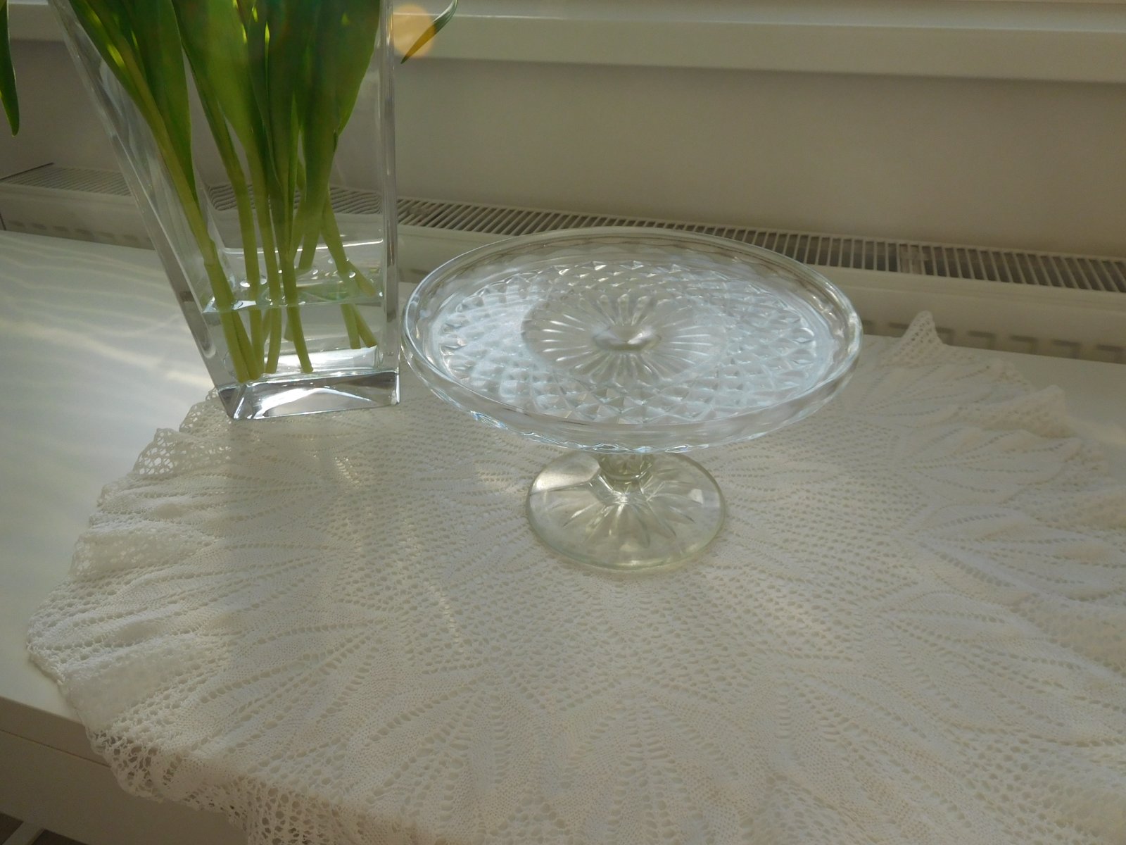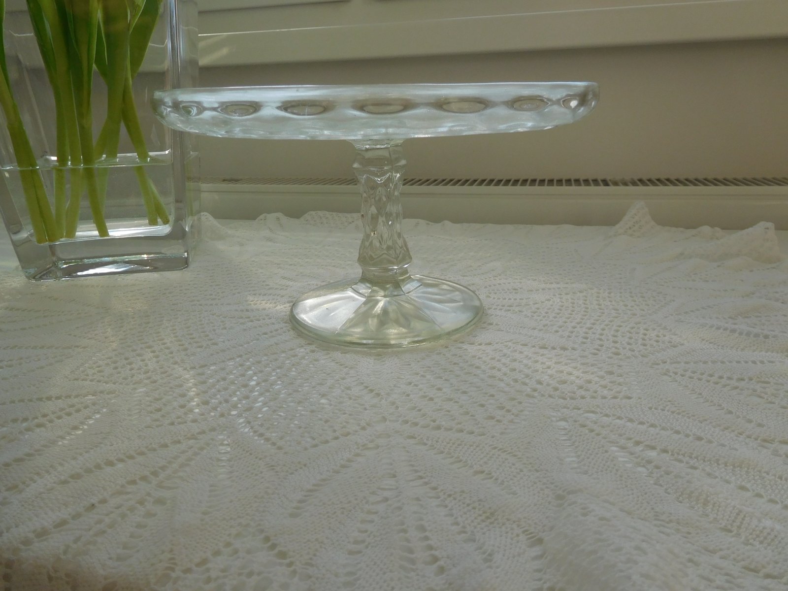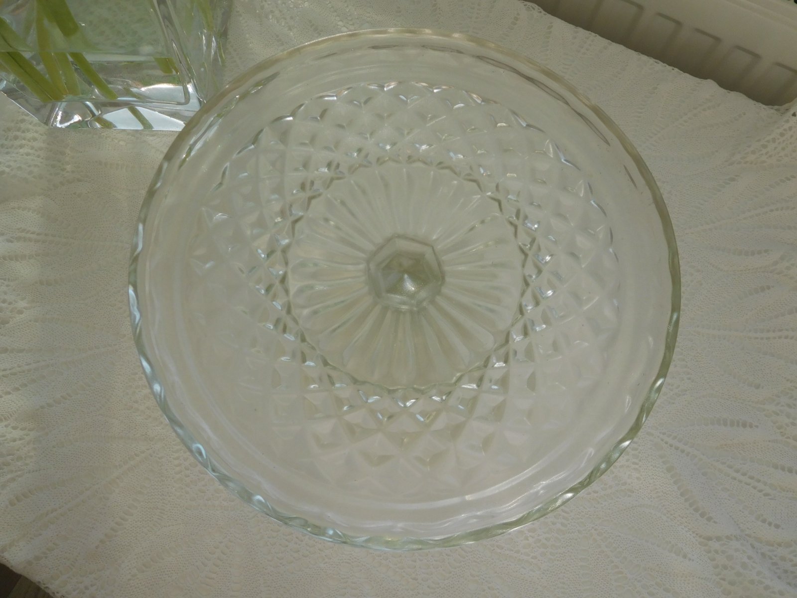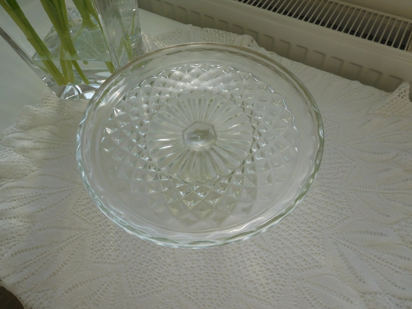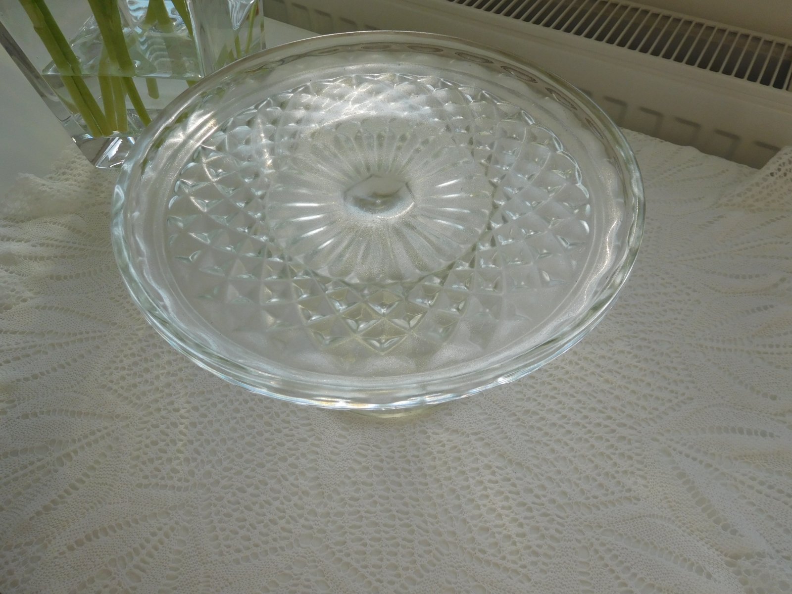 Ponúkam na predaj RETRO lisované sklo a to ako podnos tortový na nožičke,v TOP TOP stave, lisované sklo sa veľmi dobre používa, veľmi dobre ošetruje,