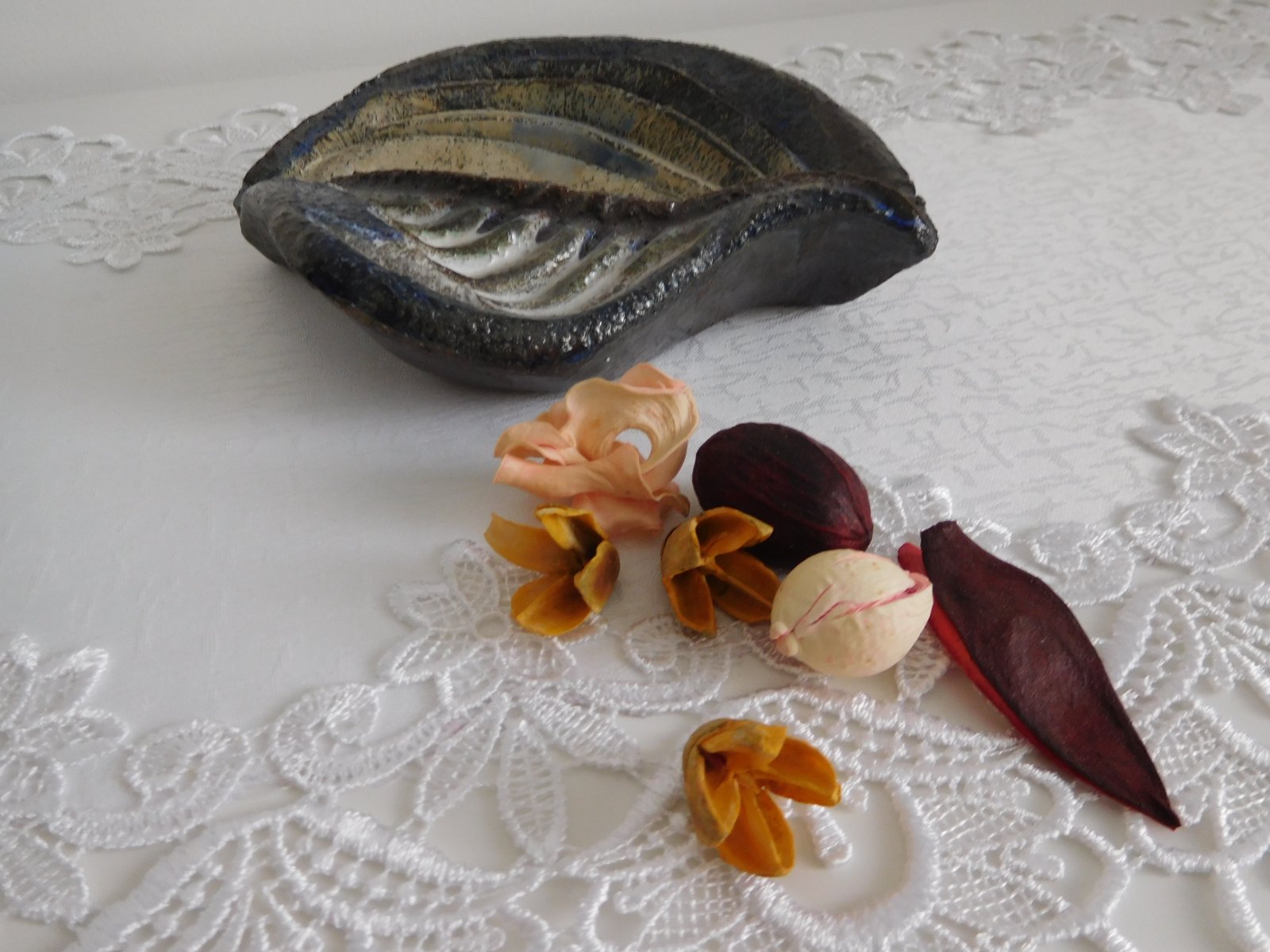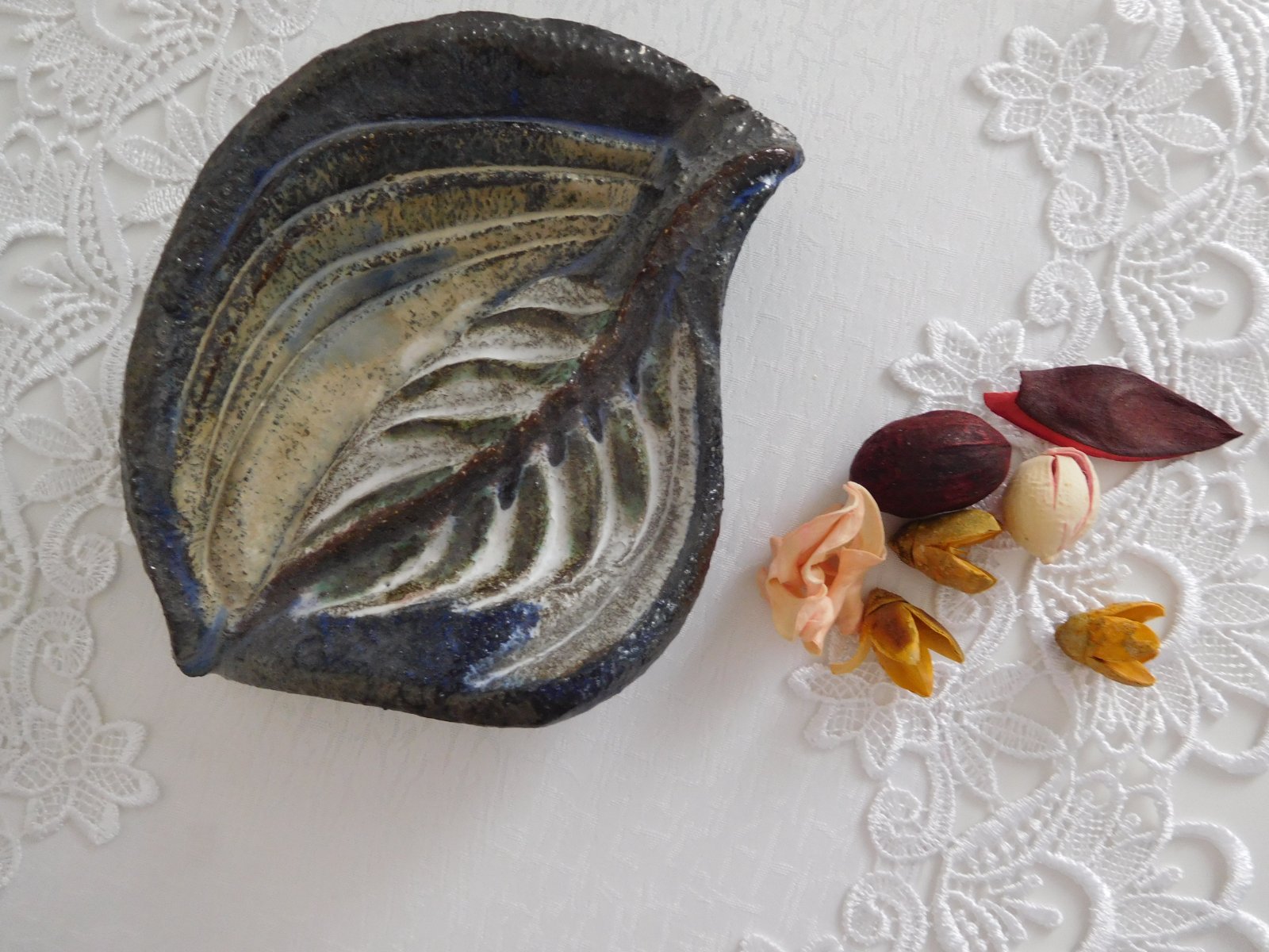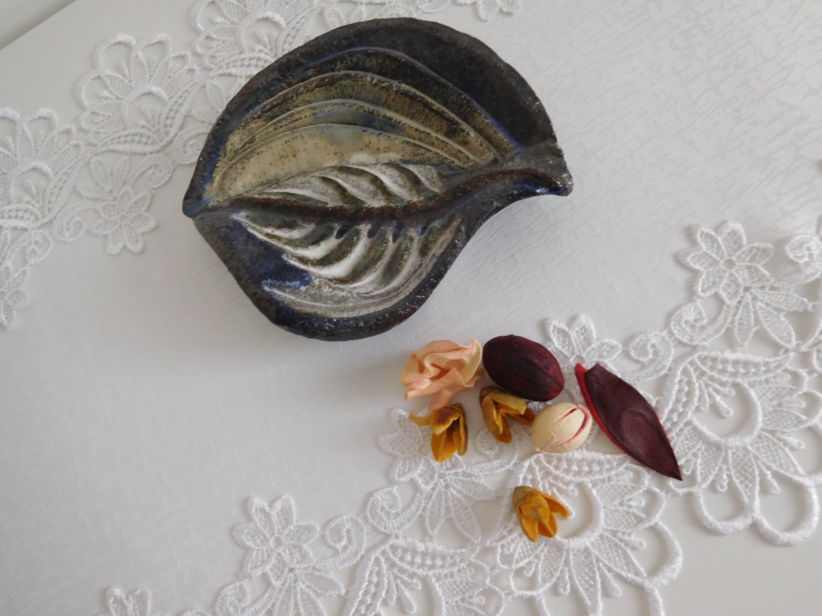 Ponúkam na predaj keramiku v tvare STROMOVÝ LIST , v prírodných tmavých farbách,