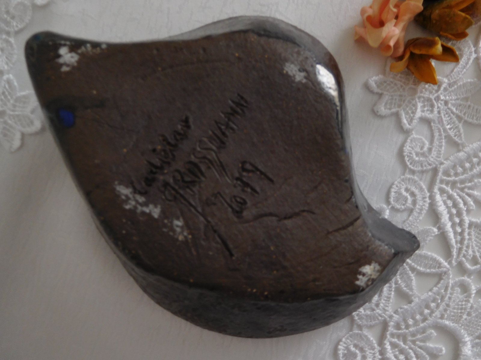 STROMOVÝ LIST- je z čiernej šamotové hlíny, glazúrované pálený plynom, rozmer je 20 x15 cm, signováno