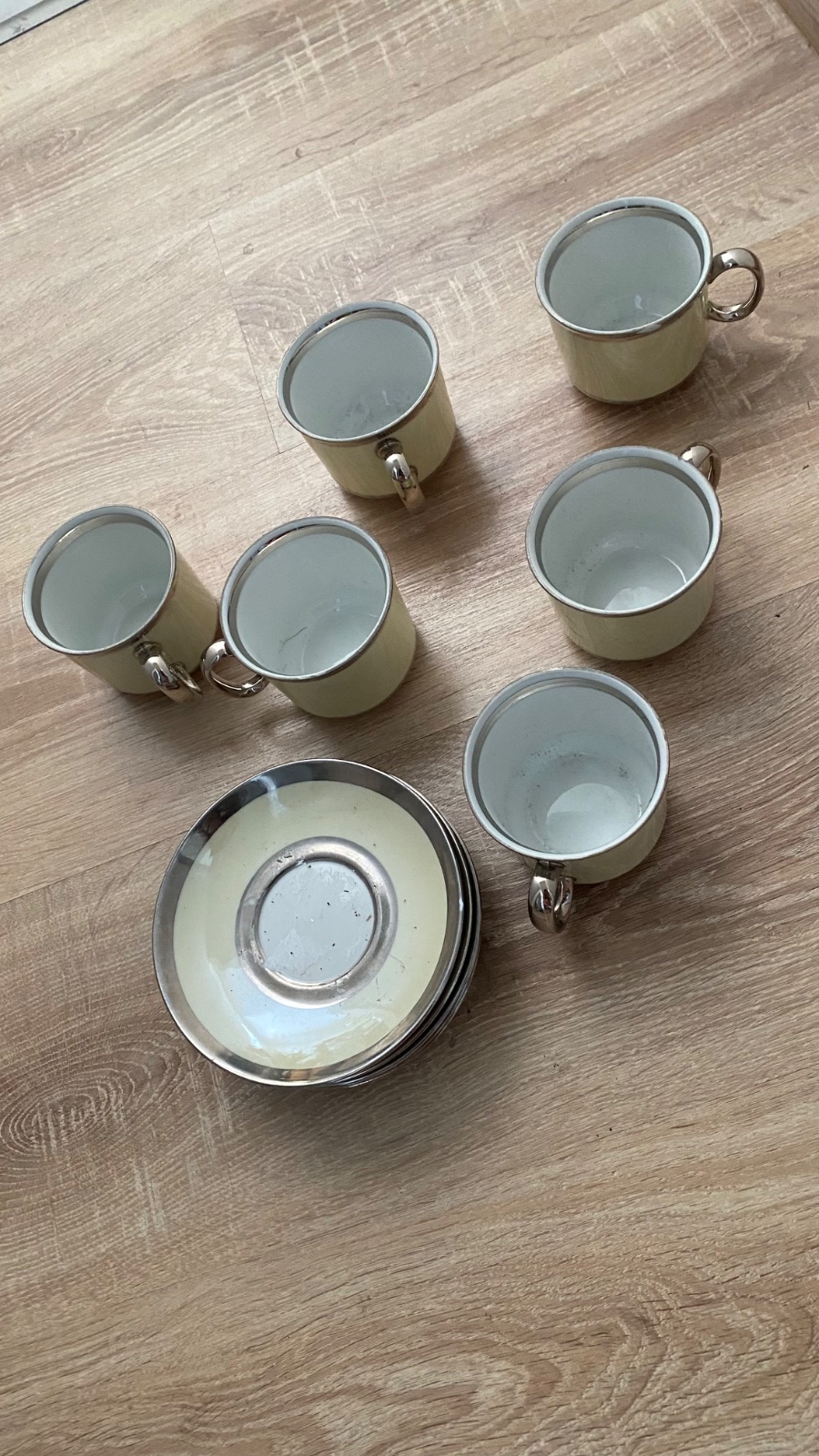 Predam porcelan v nalezovom stave, 6 salok, 5 podsalok, na par miestach obity, vyblednuta farba.