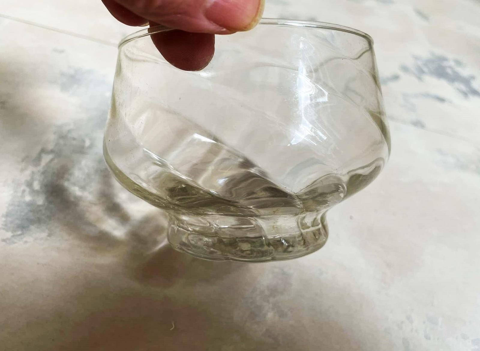 krásna sklenená bonboniéra/cukornička,pekne vejárovito zdobená,výška = 7 cm,priemer = 9 cm