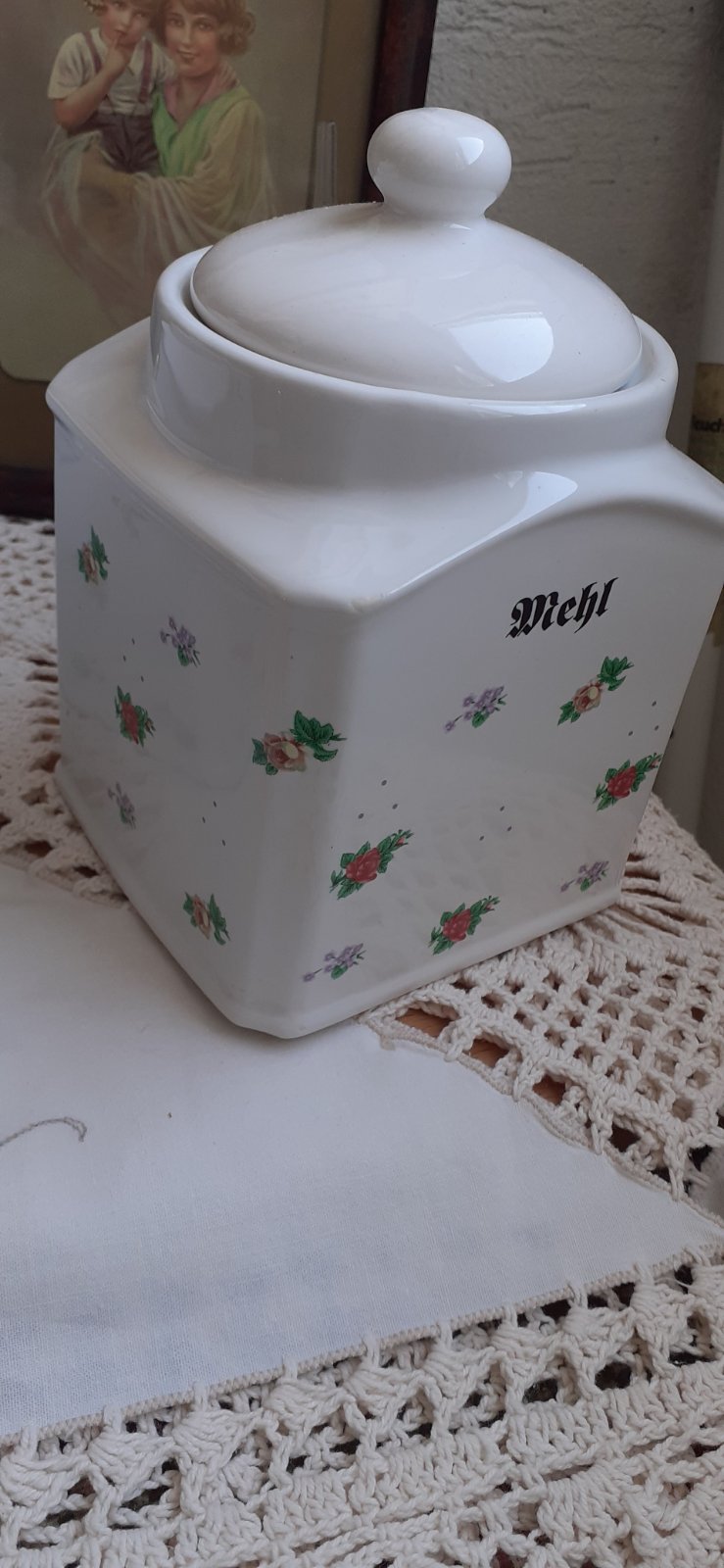 Výška aj s poklopom 15 cm, šírka 10,5 cm.