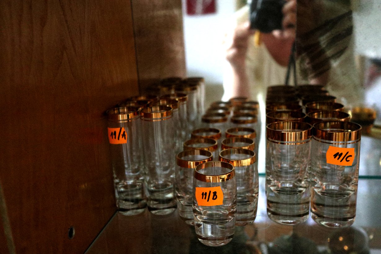 Obr.3: 3xsady 6ks pohárikov na biely alkohol z ťažkého skla bohato zdobené zlatou linkou, 3€/ks, len spolu po sadách