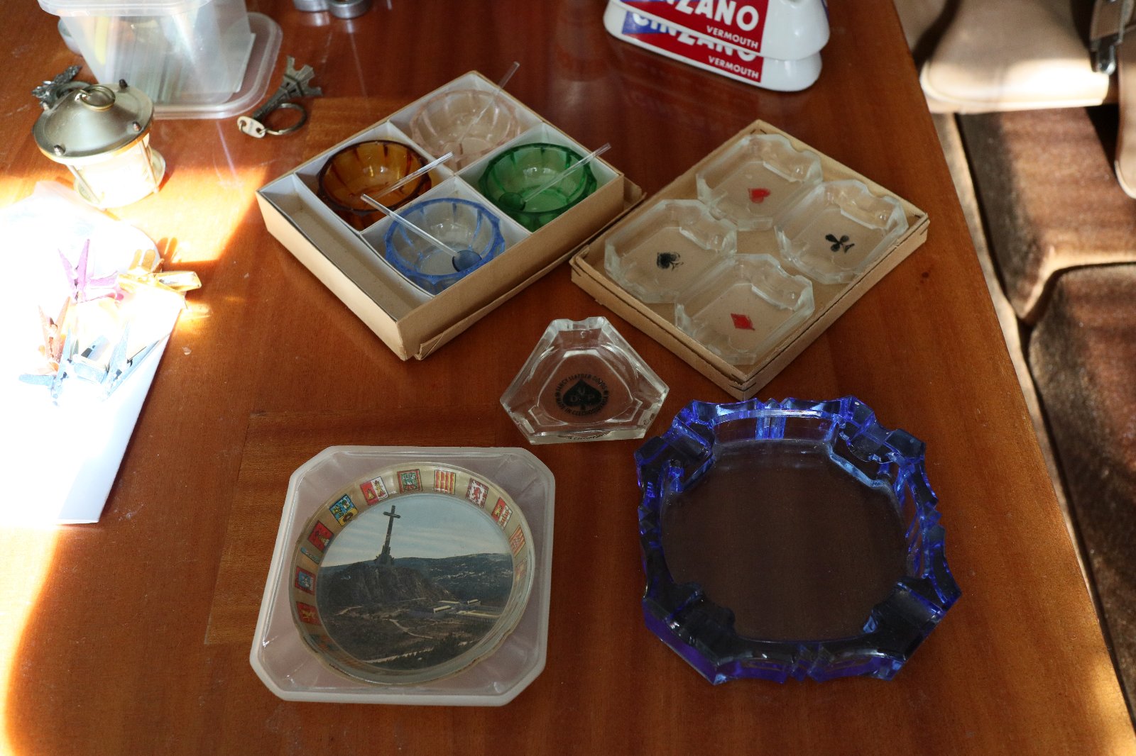 E) Sklený popolník so zaliatou pohľadnicou, 4€