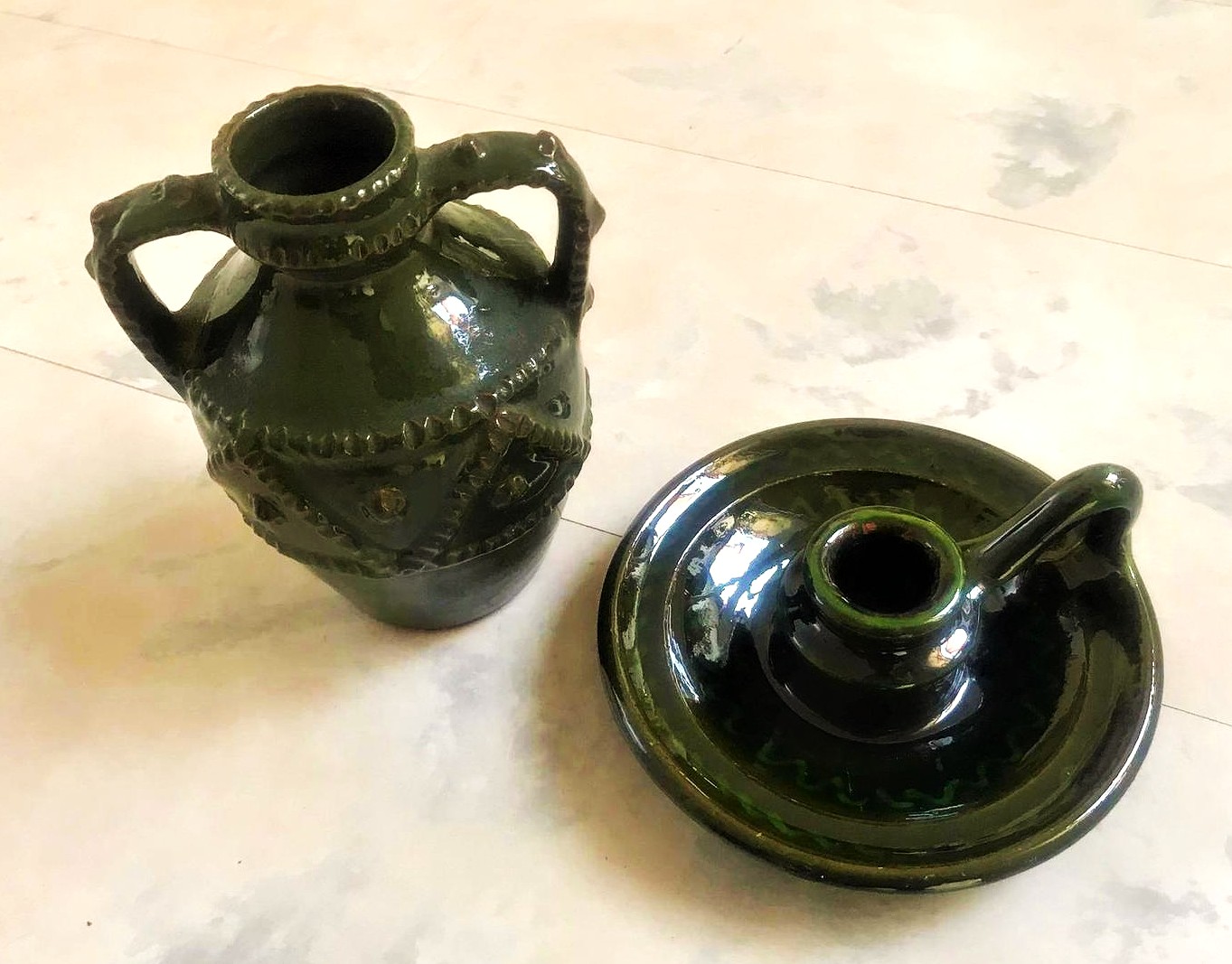 min. používané, svietnik priemer = 15 cm, váza výška = 15 cm,šírka v najširšej časti 12 cm