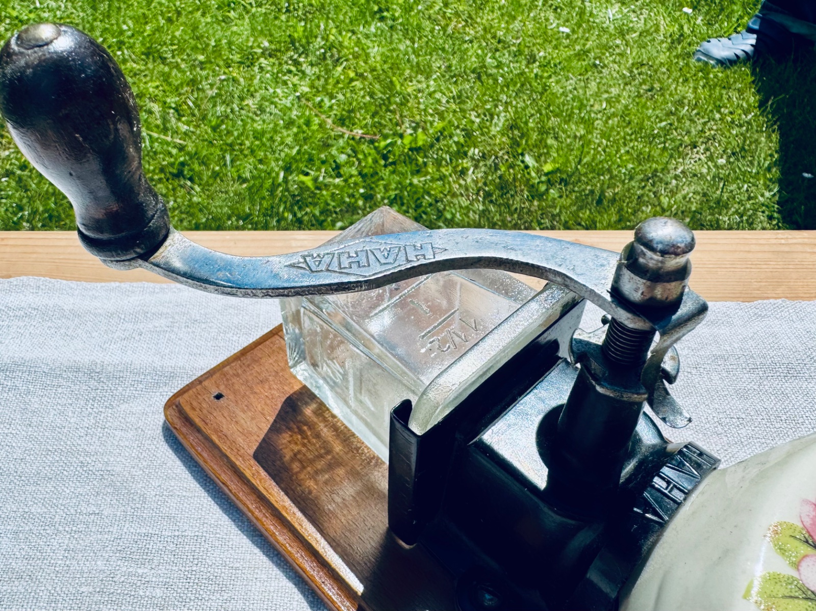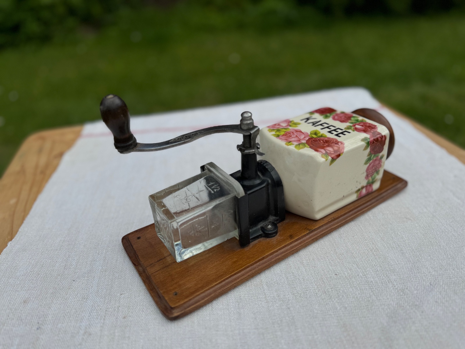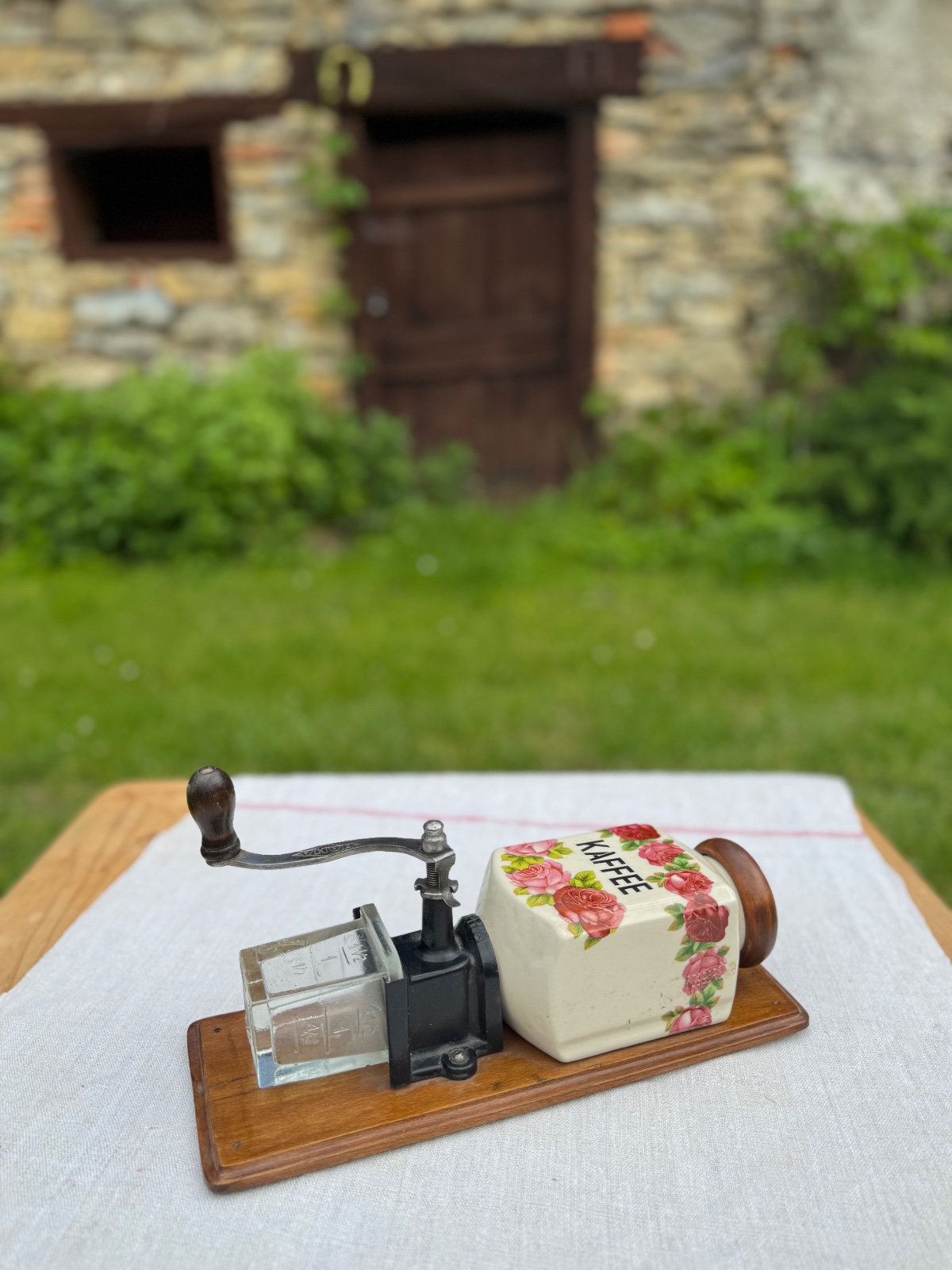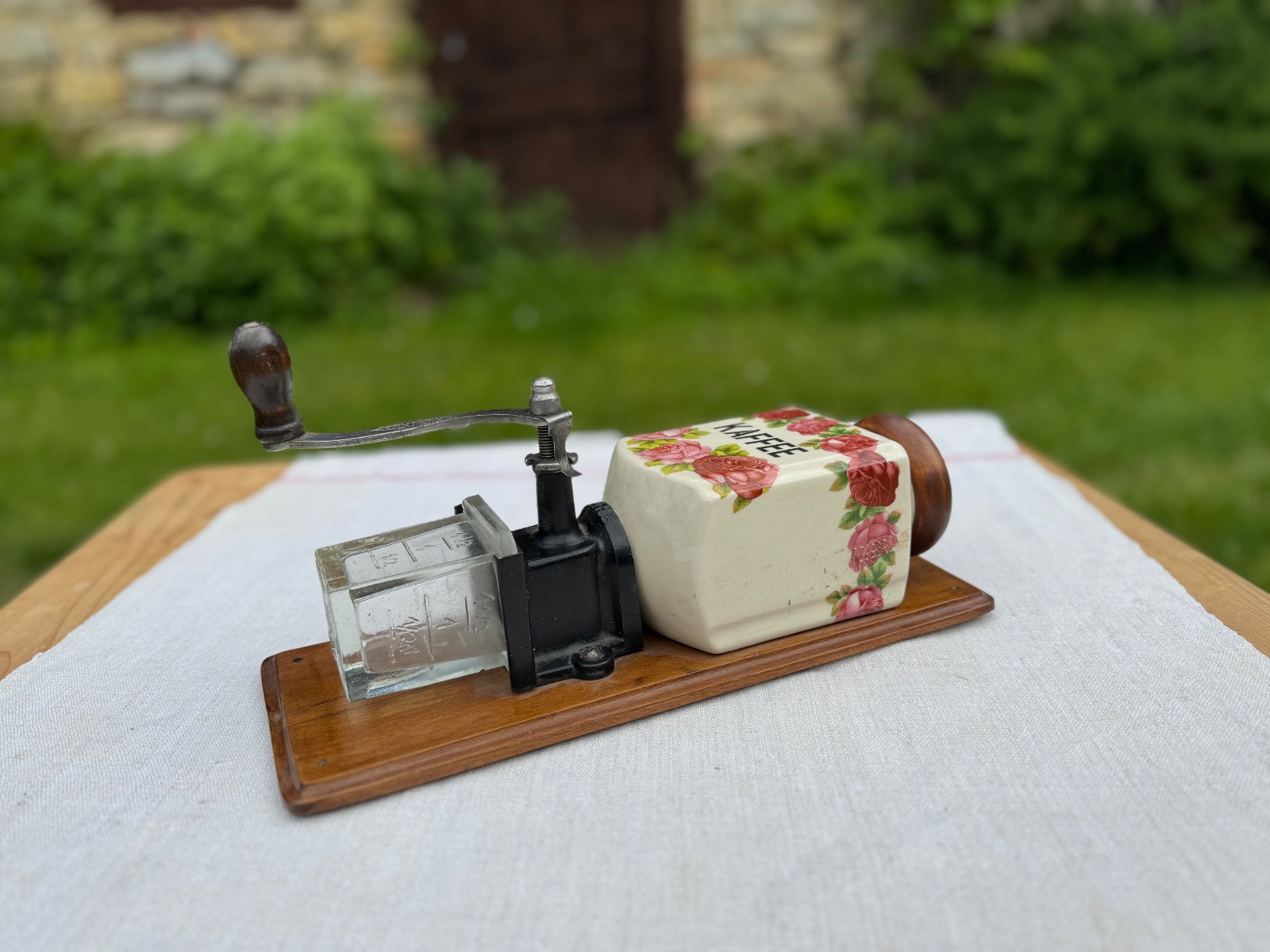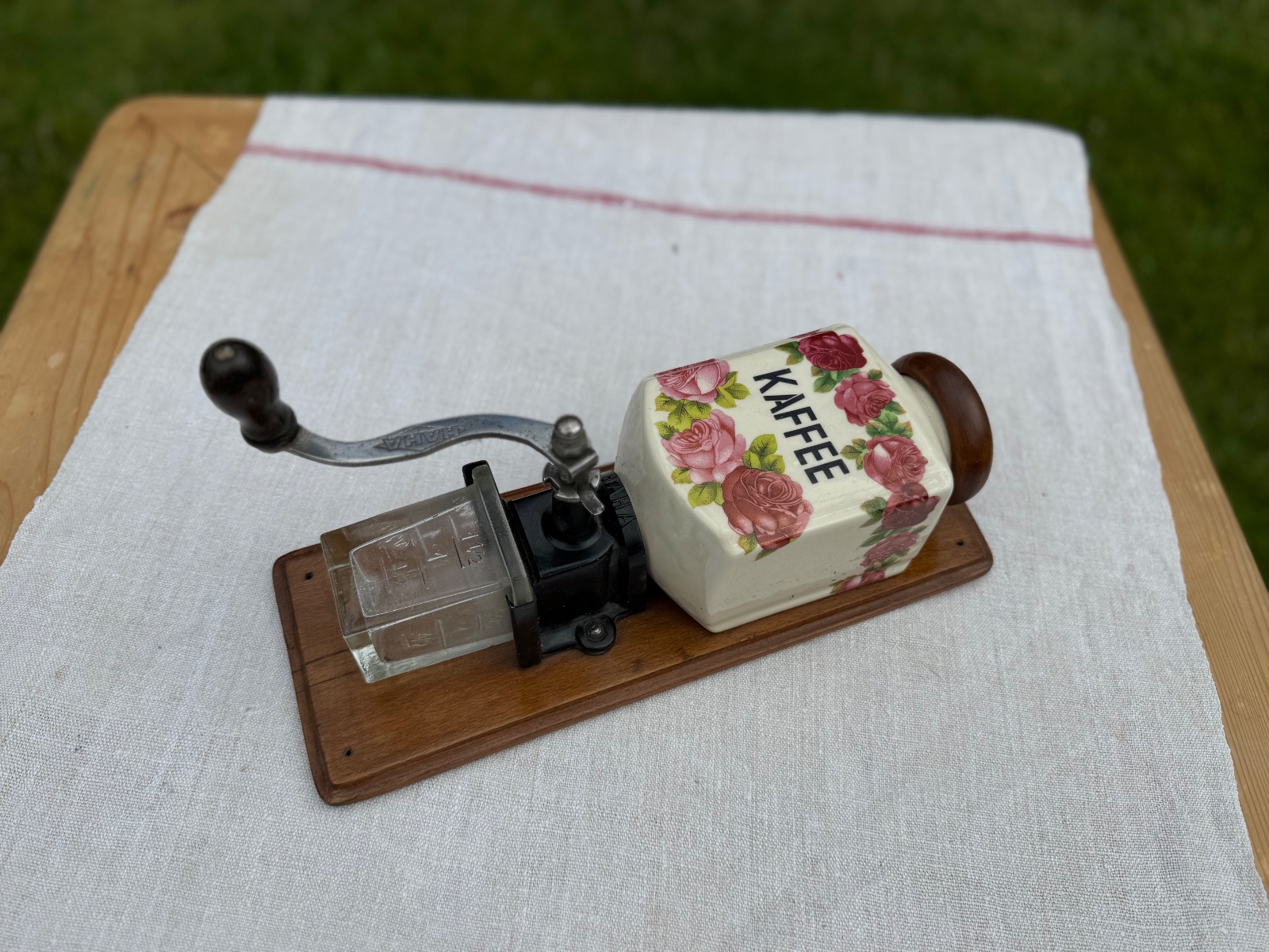 Predám zo svojej zbierky krásny starý porcelánový mlynček na kávu. Mlynček je od výrobcu HAHA (HARHAUS). Nádobka na kávu je zo skla, a mlecí strojček je z ocele.