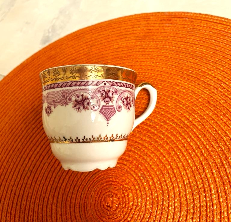 luxusná kávová súprava z jemného tenkého porcelánu z roku 1918,značka MZ porcelán - Moritz Zdekauer,bývalý Karlovarský porcelán ,krásne zdobená,krehká,mám iba 5 ks a 1 tanierik zo 6 kusa,šáločka sa rozbila,priemer tanierika = 14 cm, výška šálky = 6,5 cm, priemer šálky = 7 cm,je bez chýb - bola iba vystavená vo vitríne
