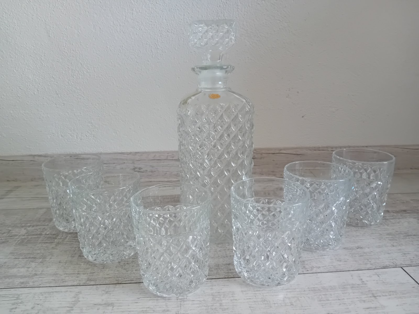 Fľaša so 6 pohármi.