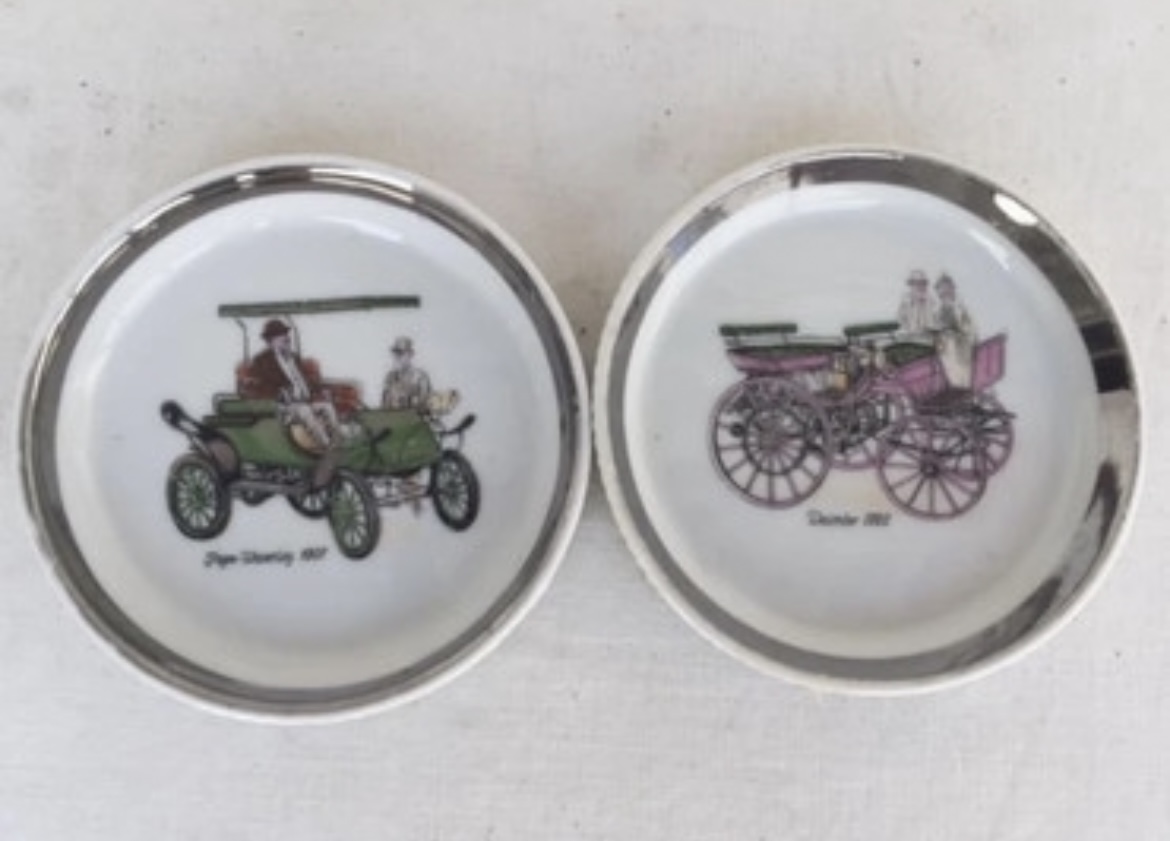 2 porcelanove podlozky pod pohare motiv stare auta