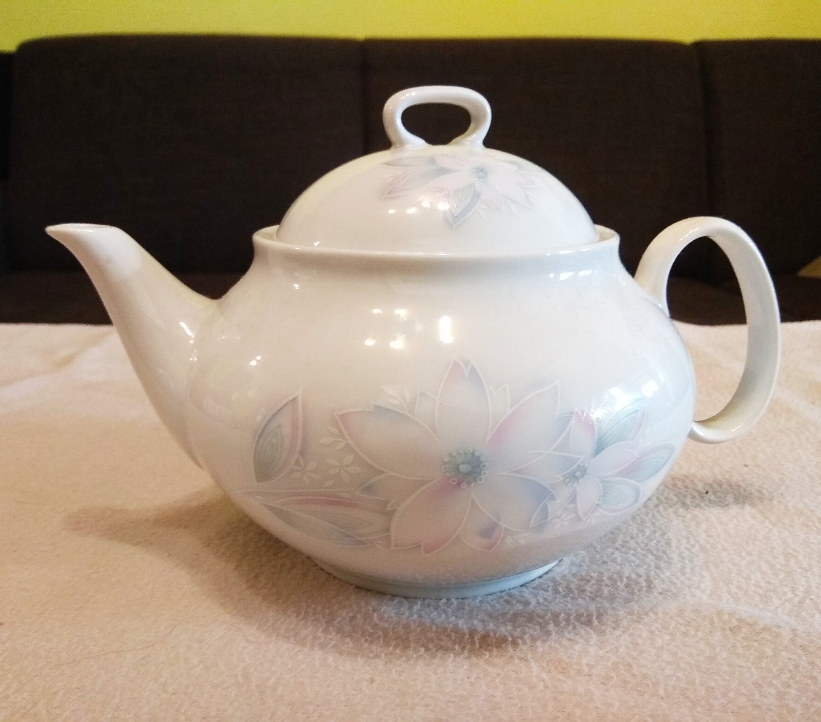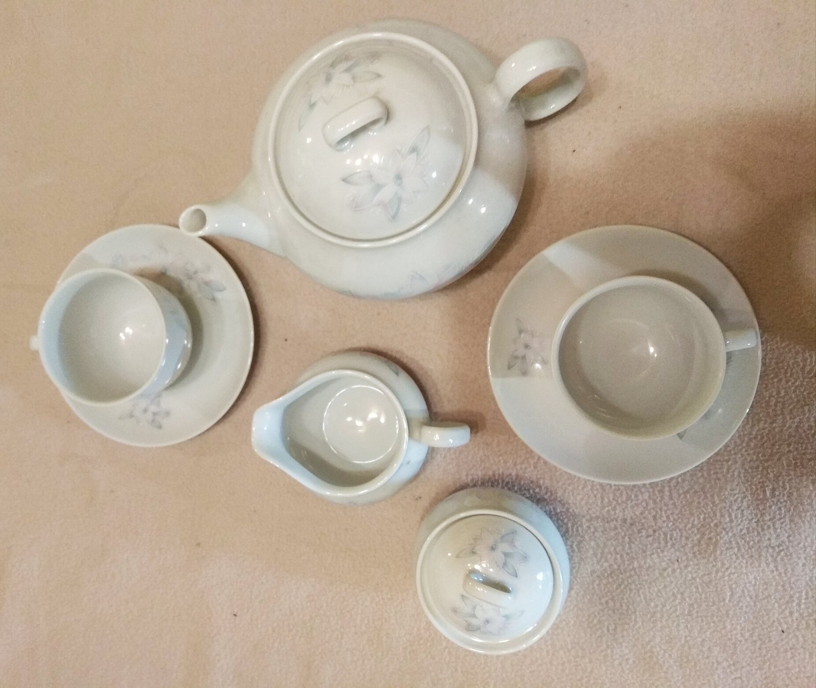 Cajova suprava sa sklada z kanvice s vrchnakom, nadobky na mlieko, cukornicky s vrchnakom a 2x salka s podsalkou. V druhom inzerate mam este 2x podsalku, ktoré ostali po poskodenych salkach. Vyrobene v Československu, top stav. Na poziadanie premeriam