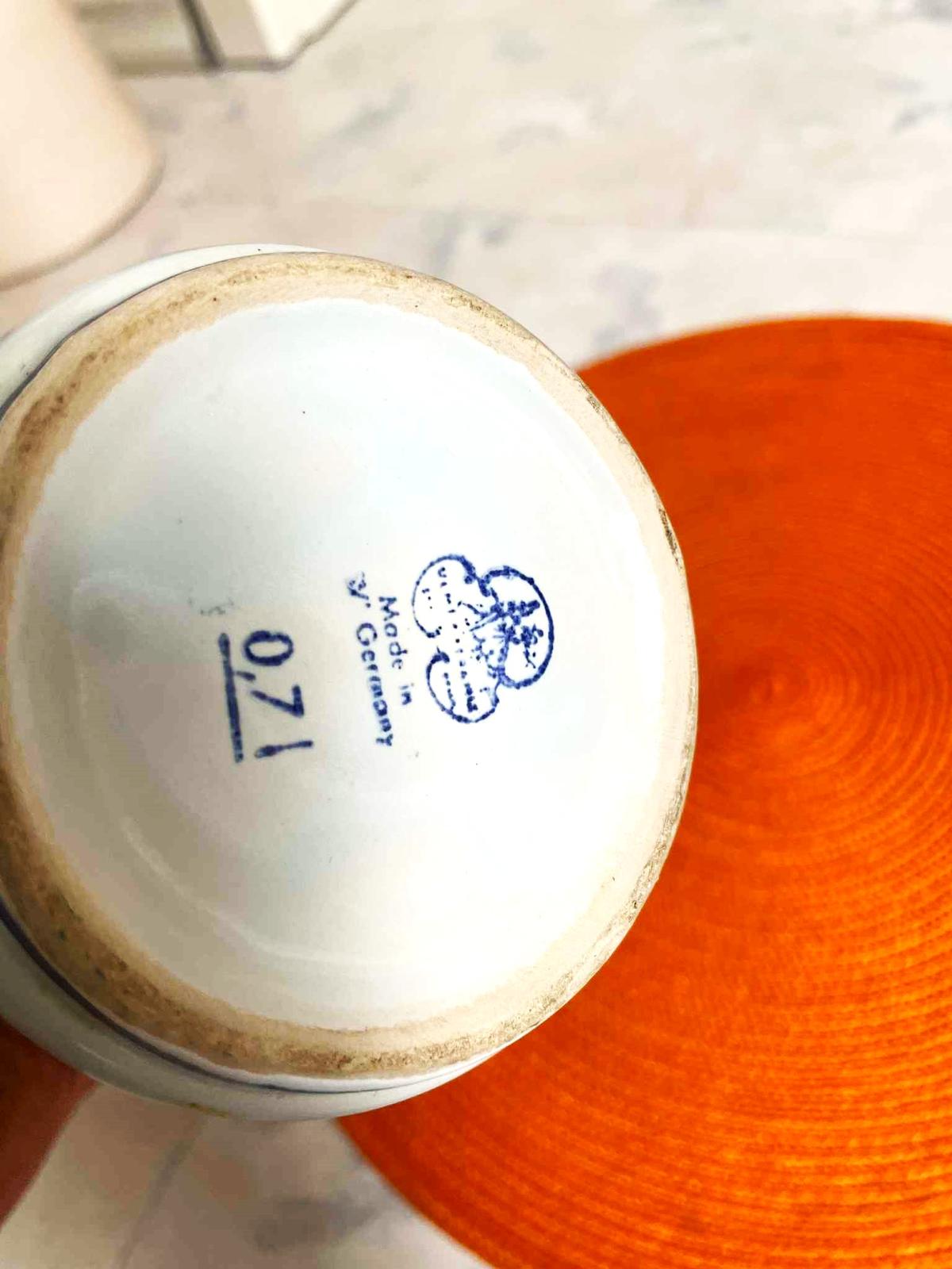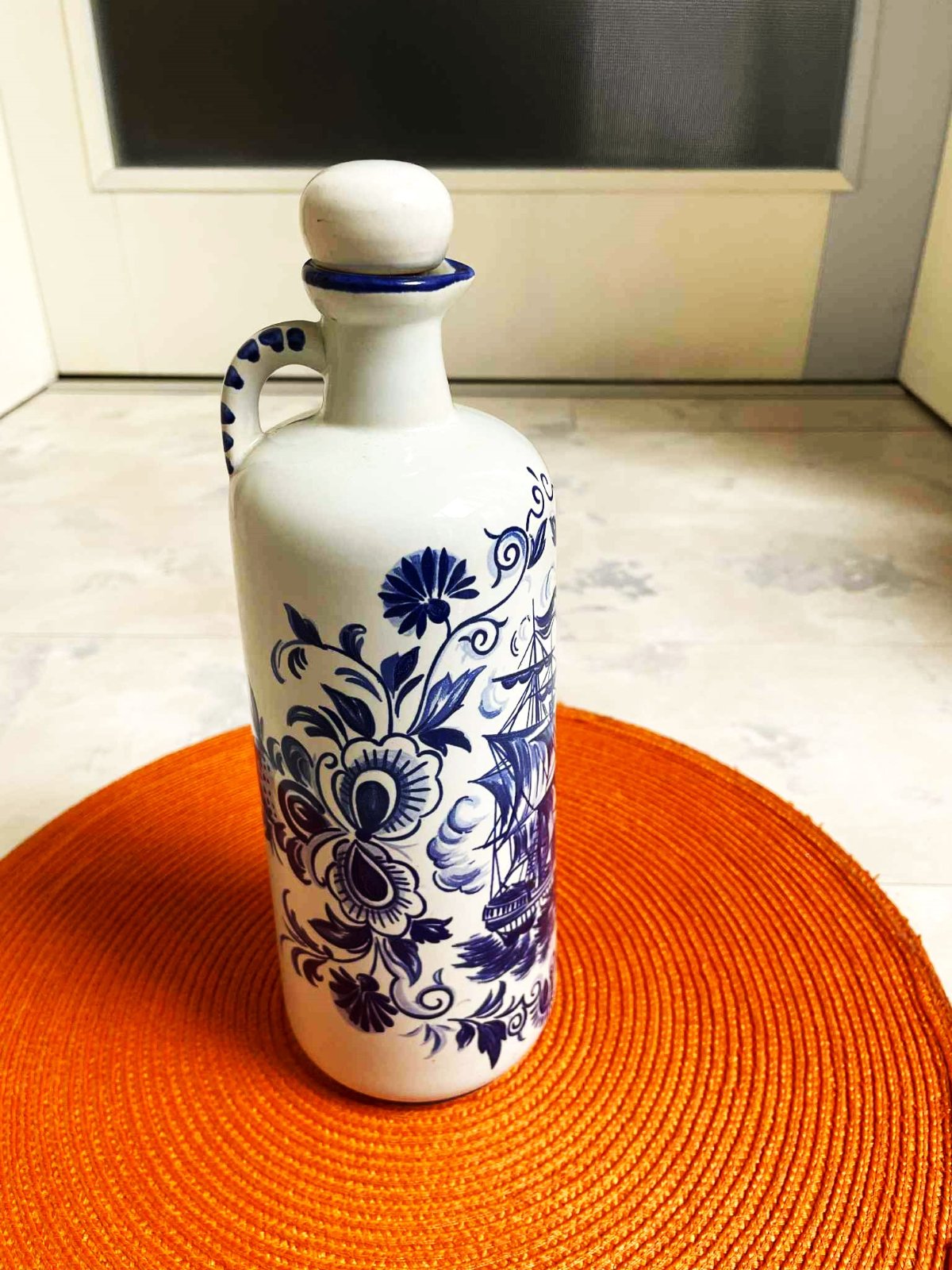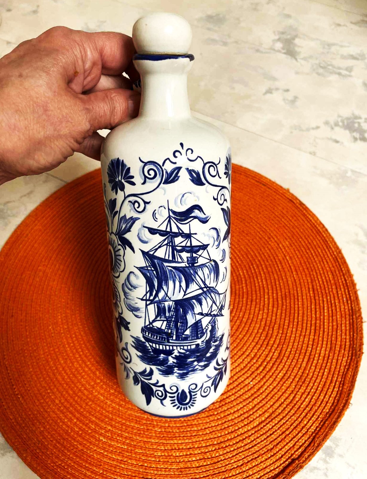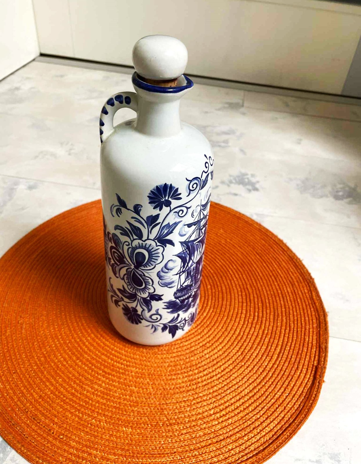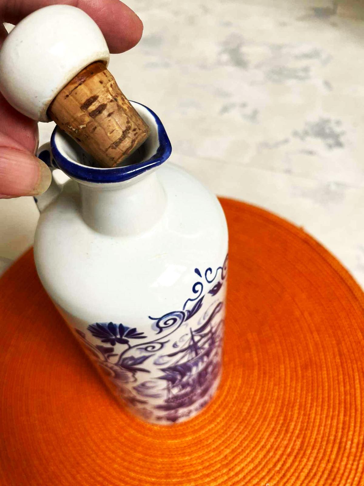 krásna starožitná fľaša na ocot alebo olej,750 ml, s korkovou zátkou, z 50. rokov 20. storočia, vyrobený firmou Ulmer Keramik Pottery Germany