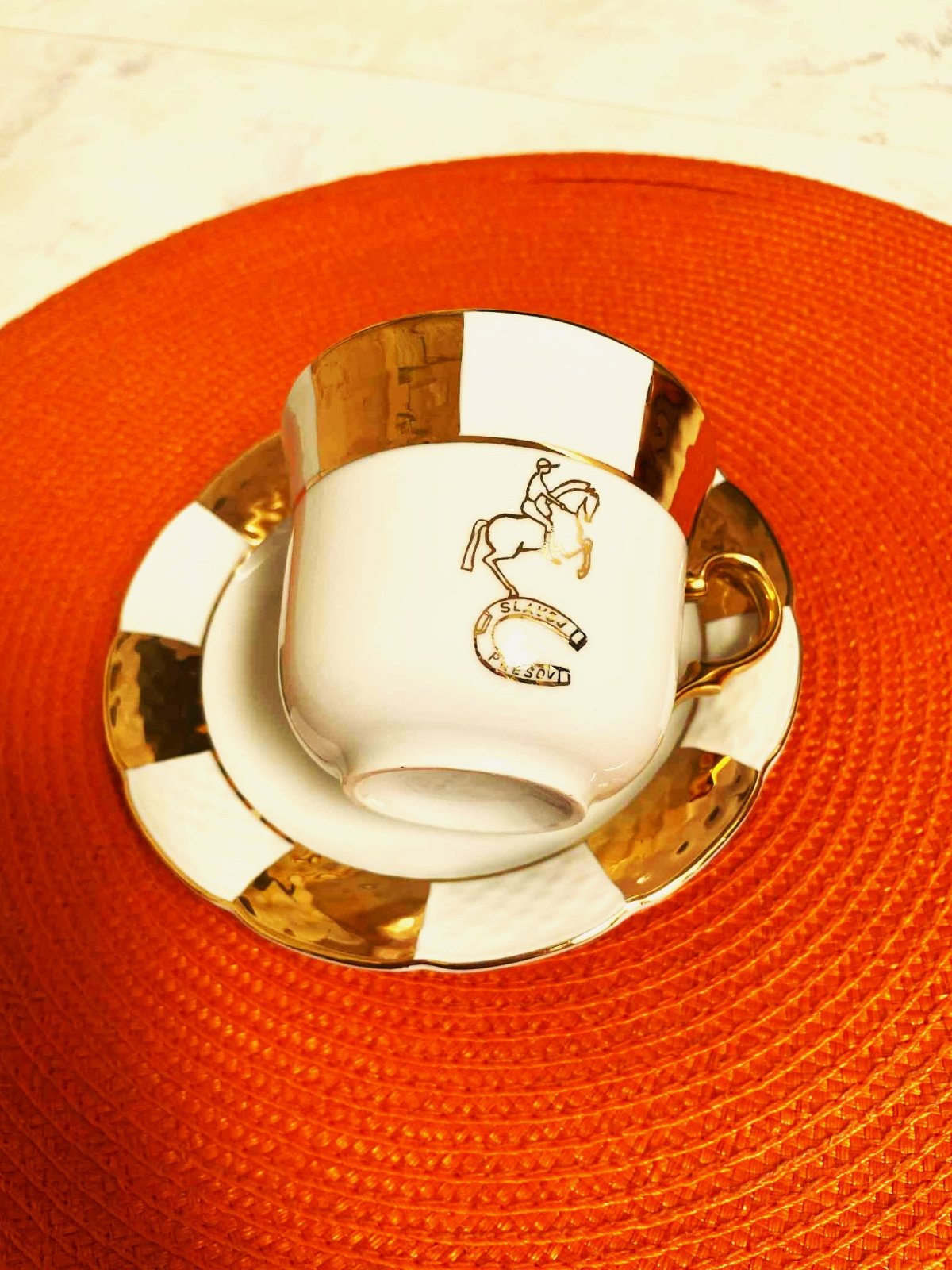 krásna luxusná kávová súprava z porcelánu,priemer tanierika = 14 cm, výška šálky = 7 cm, priemer šálky = 7 cm,bola iba vo vitríne vystavená,pozri aj :