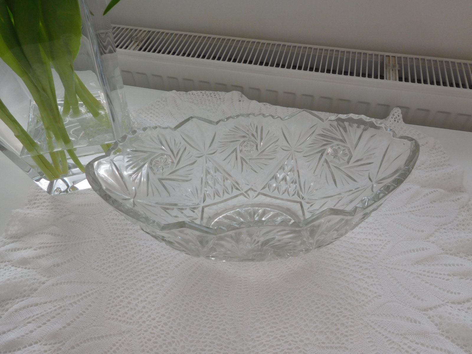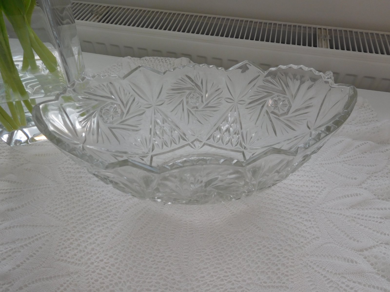 Podlhovastá misa, vzor hviezdy-RETRO, -lisované sklo je veľmi dobre použiteľné veľmi dobre ošetrovateľné, misa je v TOP TOP stave, vhodná aj ako dar-niekomu komu bude pripomínať návštevu u babky s ovocím na stole v tejto krásnej miske,