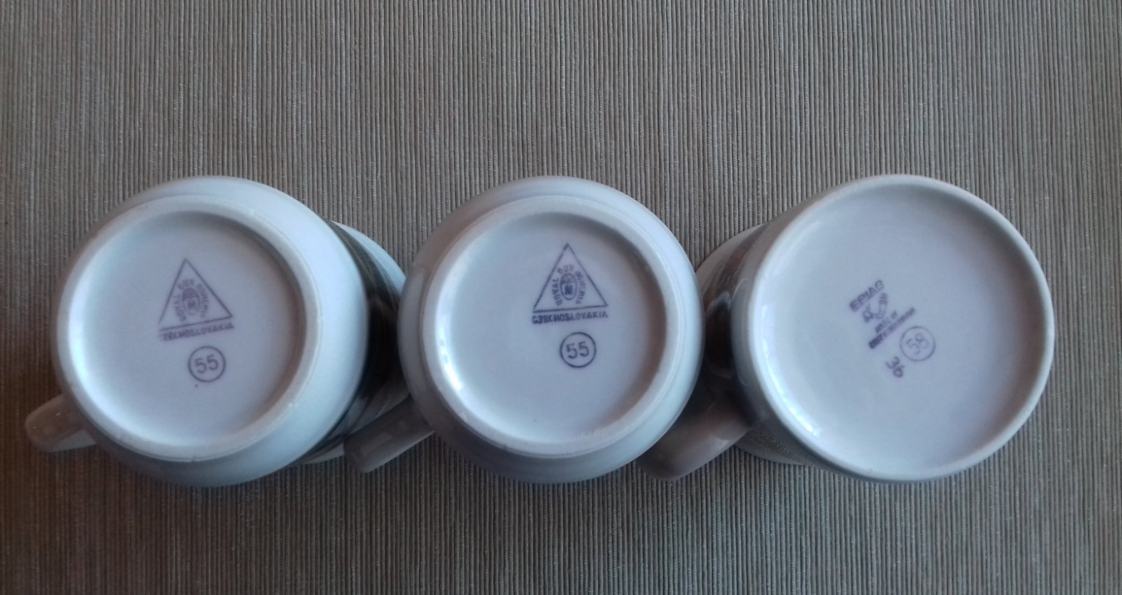 hrnček s motýľom má oťuk, kvietkované sú bez poškodenia