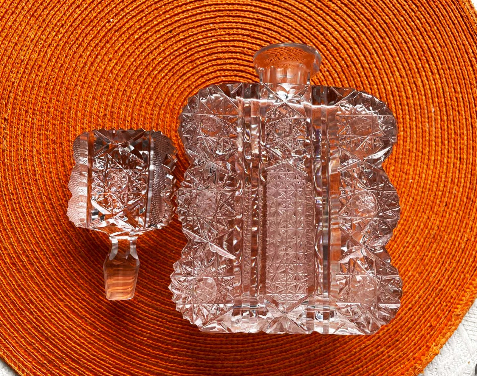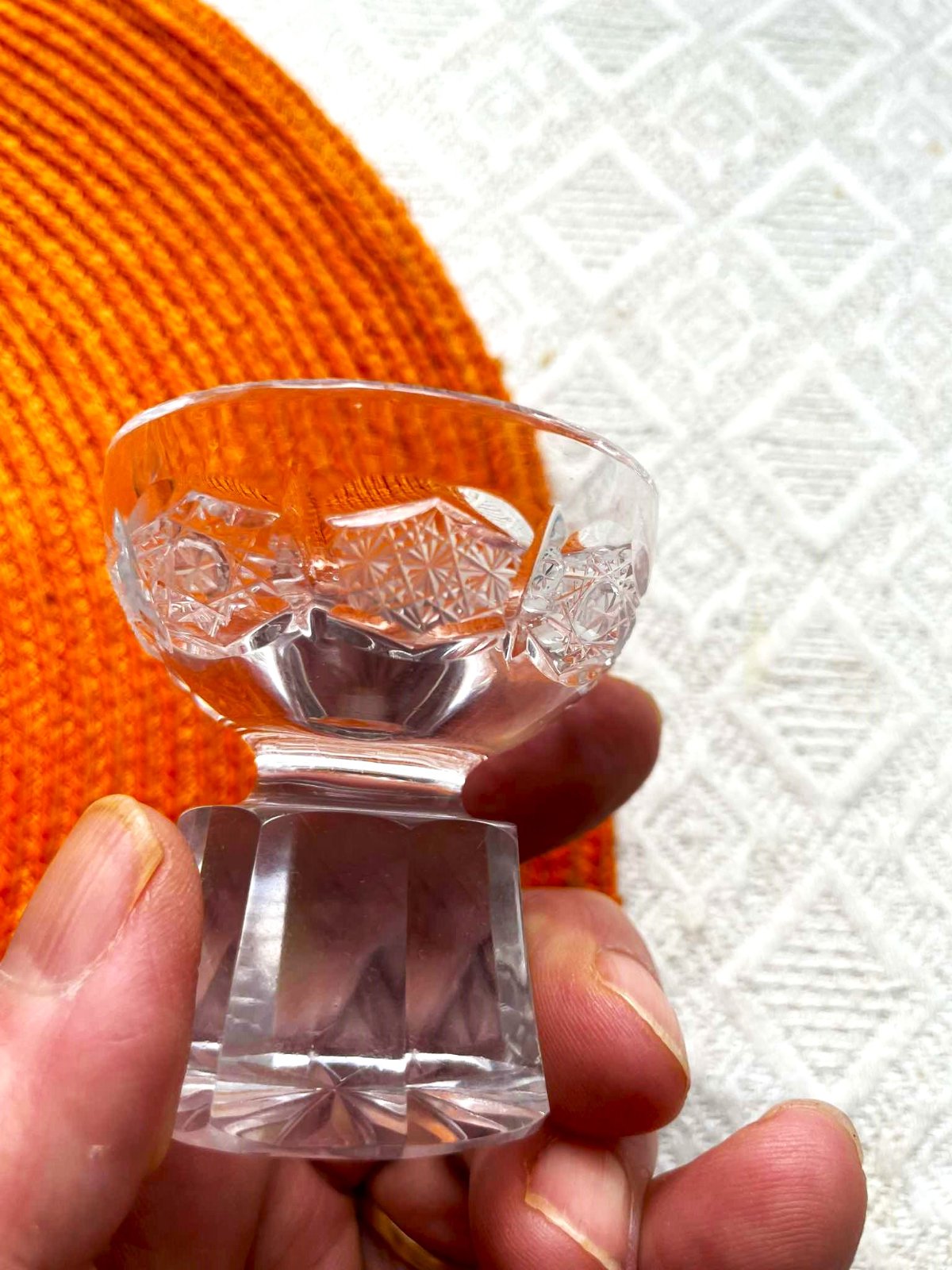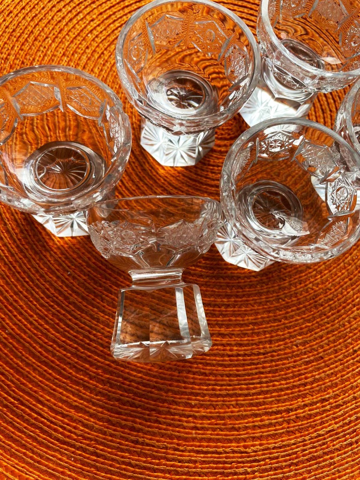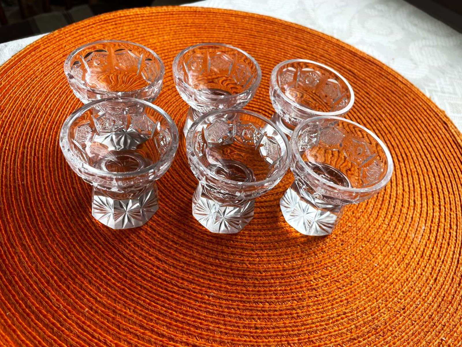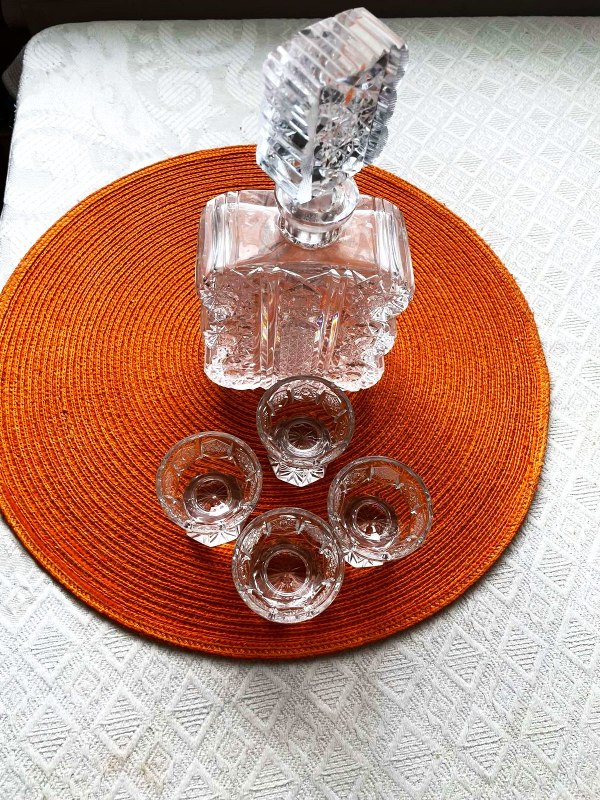 Kryštálová brúsená karafa a 6 štamperl. Bohemia