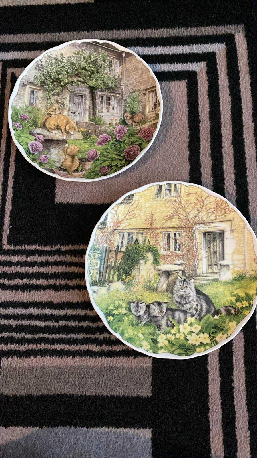 Dva zberateľské taniere s mačičkami