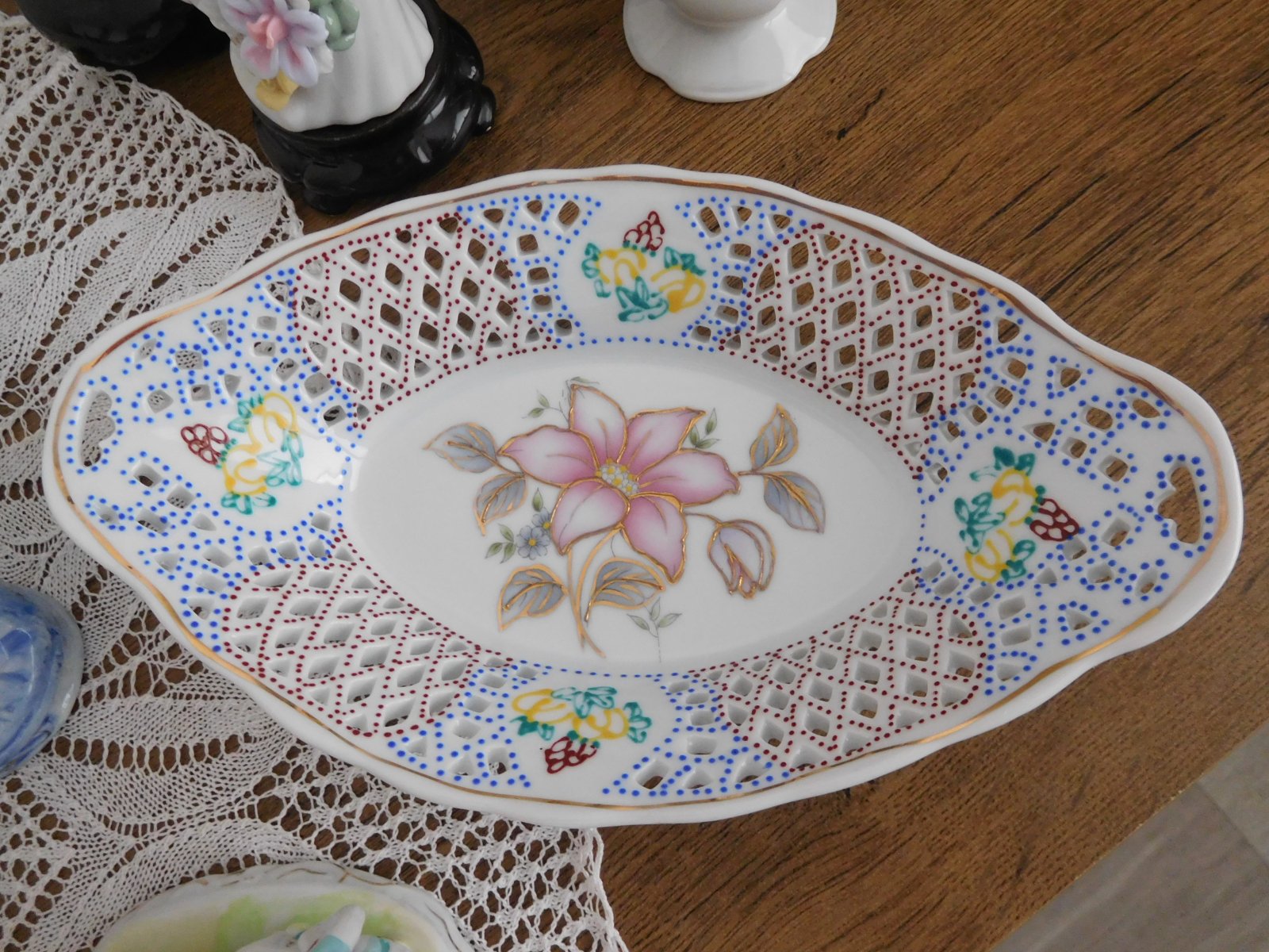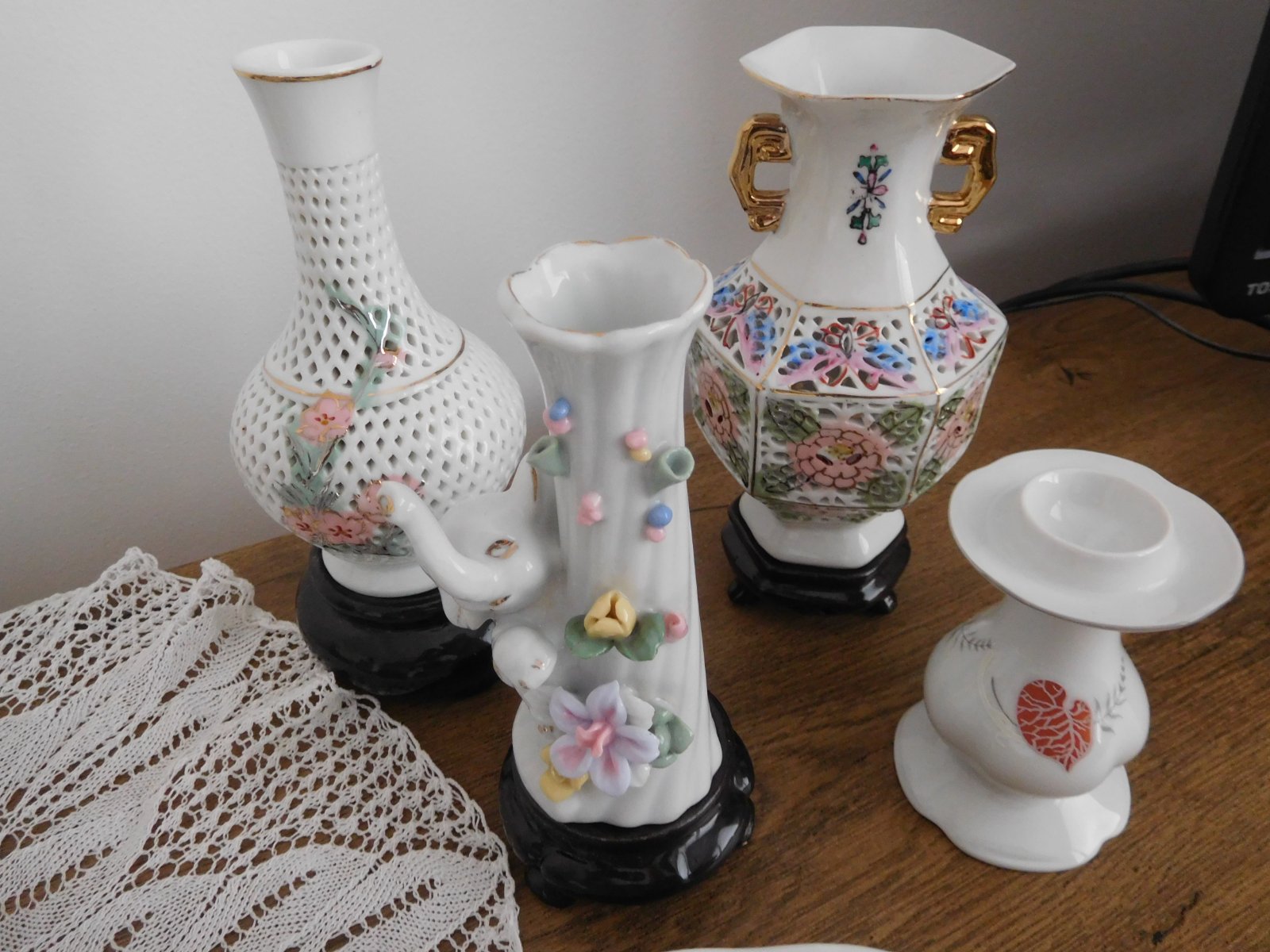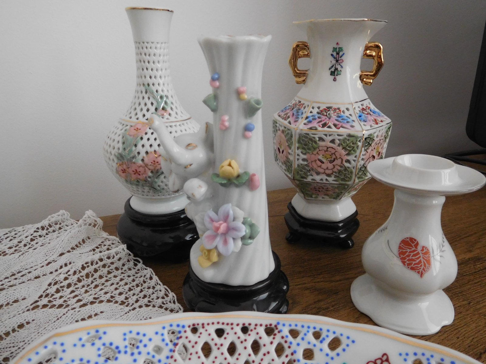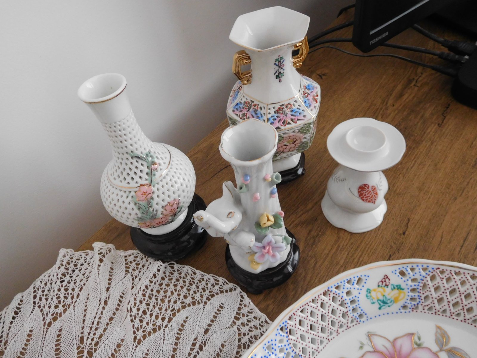 Čínsky porcelán značený, -váza-2x, podlhovastý tanierik,