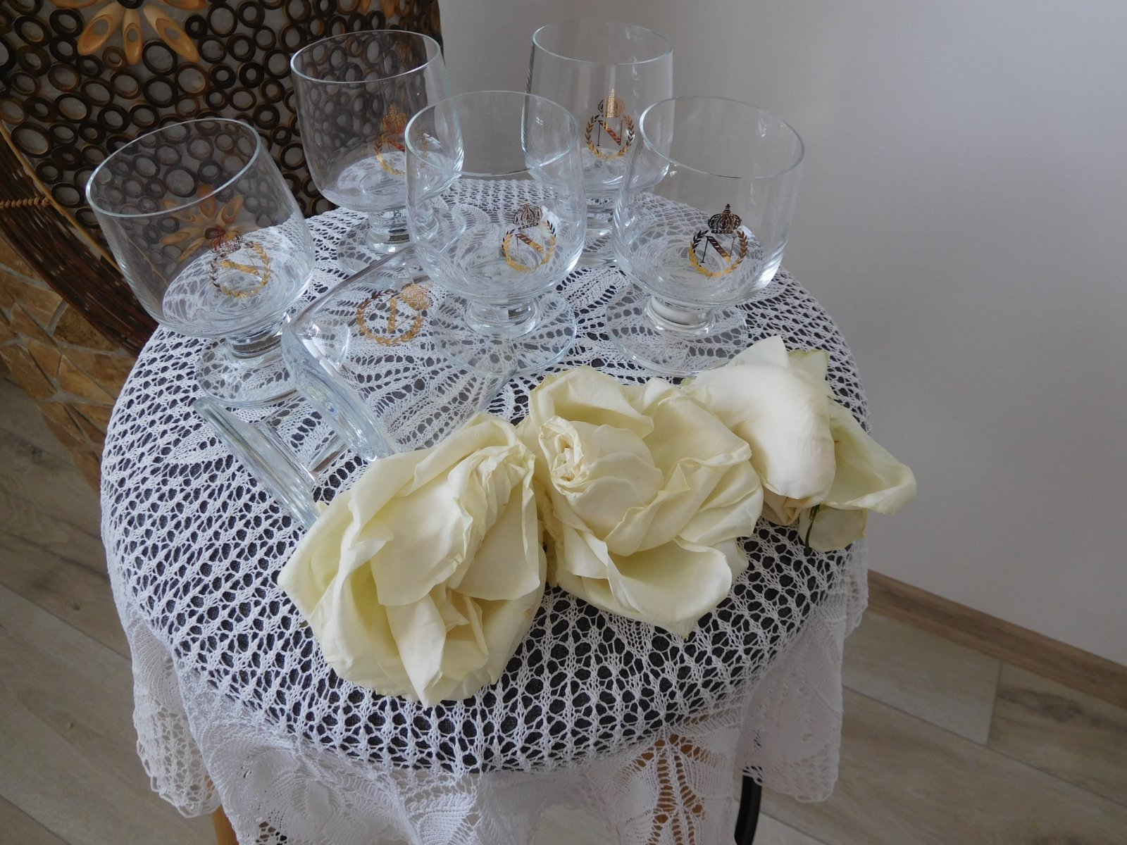 Ponúkam na predaj poháre sklenené viď foto 1-Vysoké-19cm, priemer-8,5 cm,---95 eur 2-Nízke -8cm, priemer-11 cm,---95 eur 3-Biela soška---20eur-PREDANÁ, 4-Hodiny krbové drevené---65 eur. Ponúkam n...