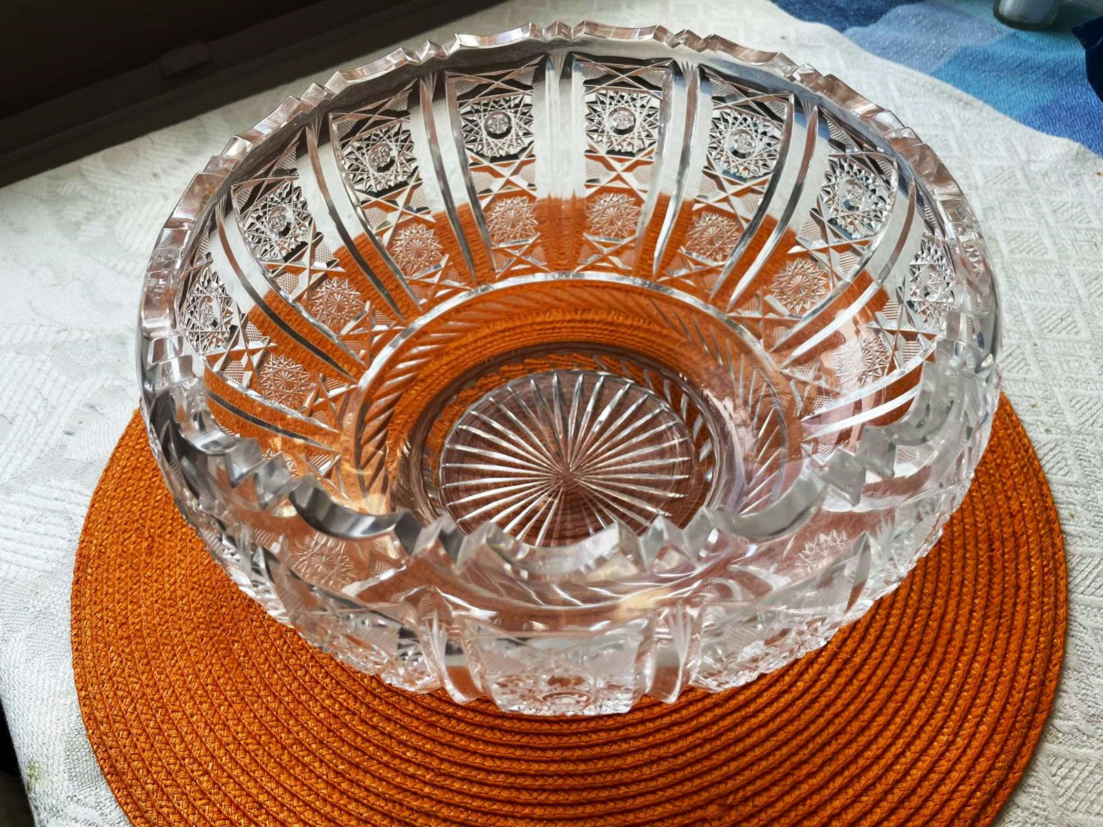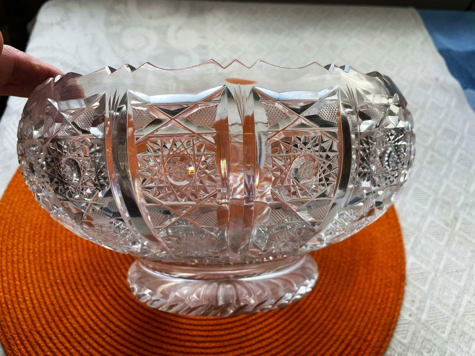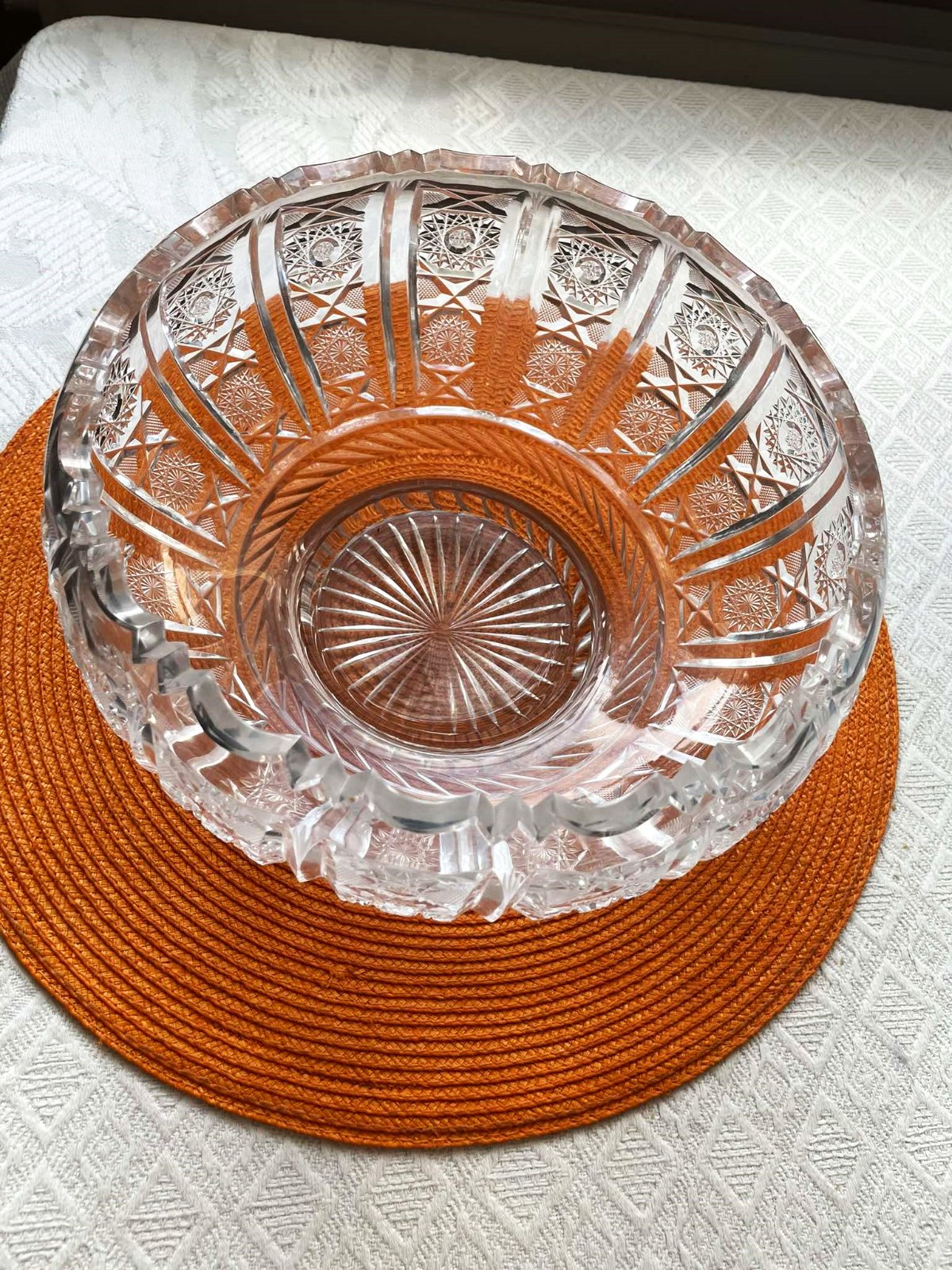 ručne brúsená kryštálová masívna misa - Bohemia crystal,s tradičným českým dekórom,vyrobená z bezolovnatého krištáľu,24 % PbO,bohatý výbrus,originál Bohemia,top stav - ako nová,bola iba vystavená vo vitrínke,výška = 14 cm,priemer = 23 cm