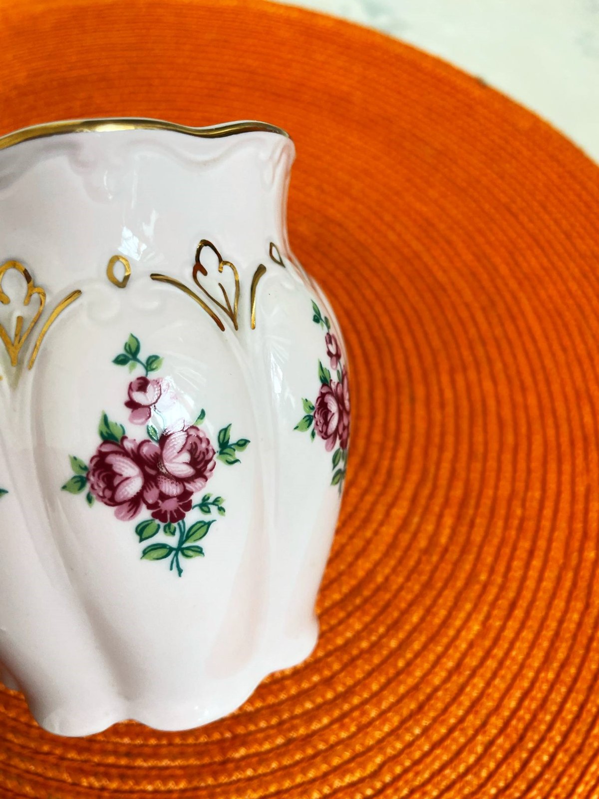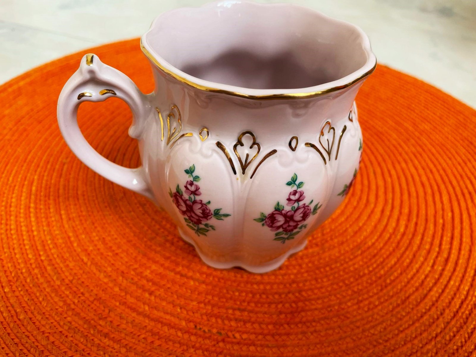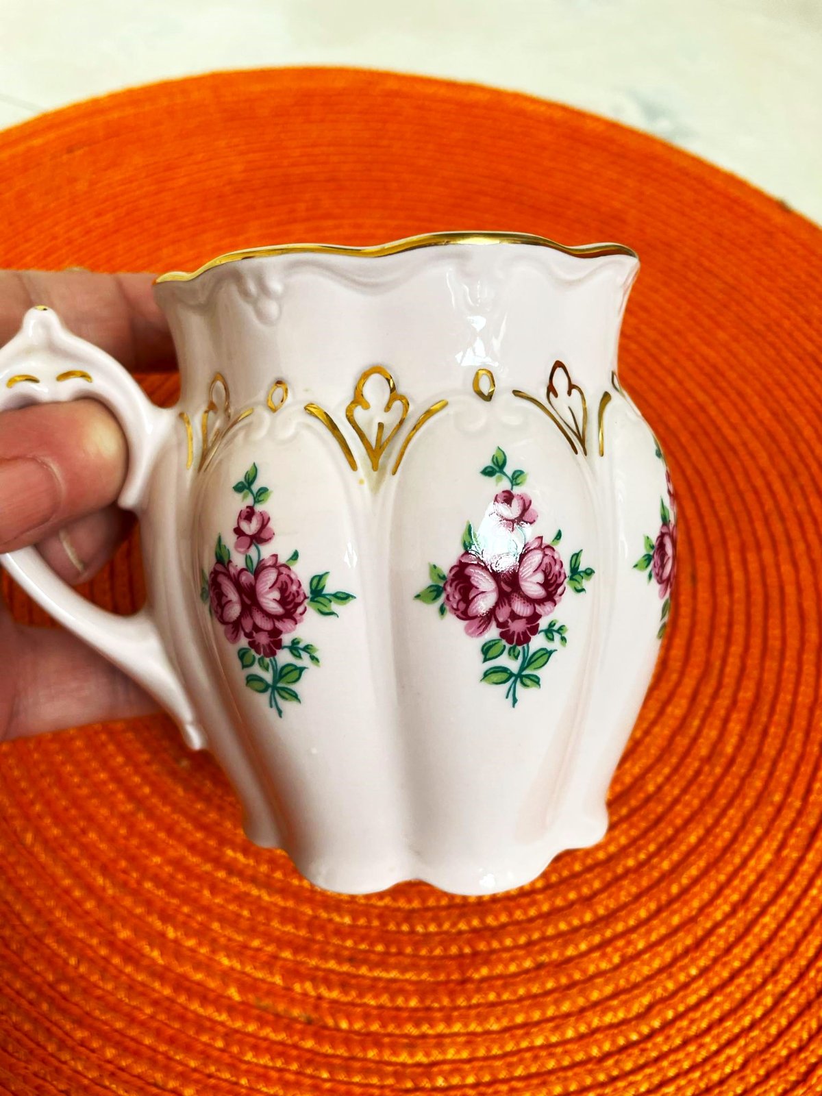 šálky z ružového kvalitného porcelánu - Made in Czechoslovakia,ručne maľované,nemajú žiadne poškodenia,sú ako nové,boli iba vystavené vo vitríne,výška 10 cm, vrchný priemer = 8 cm