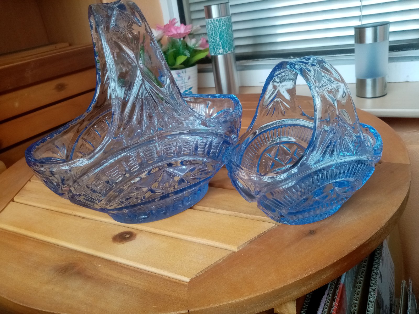 Predám retro košíky sklo ružové 25€, modré košíky 25€, osobný odber v DK.