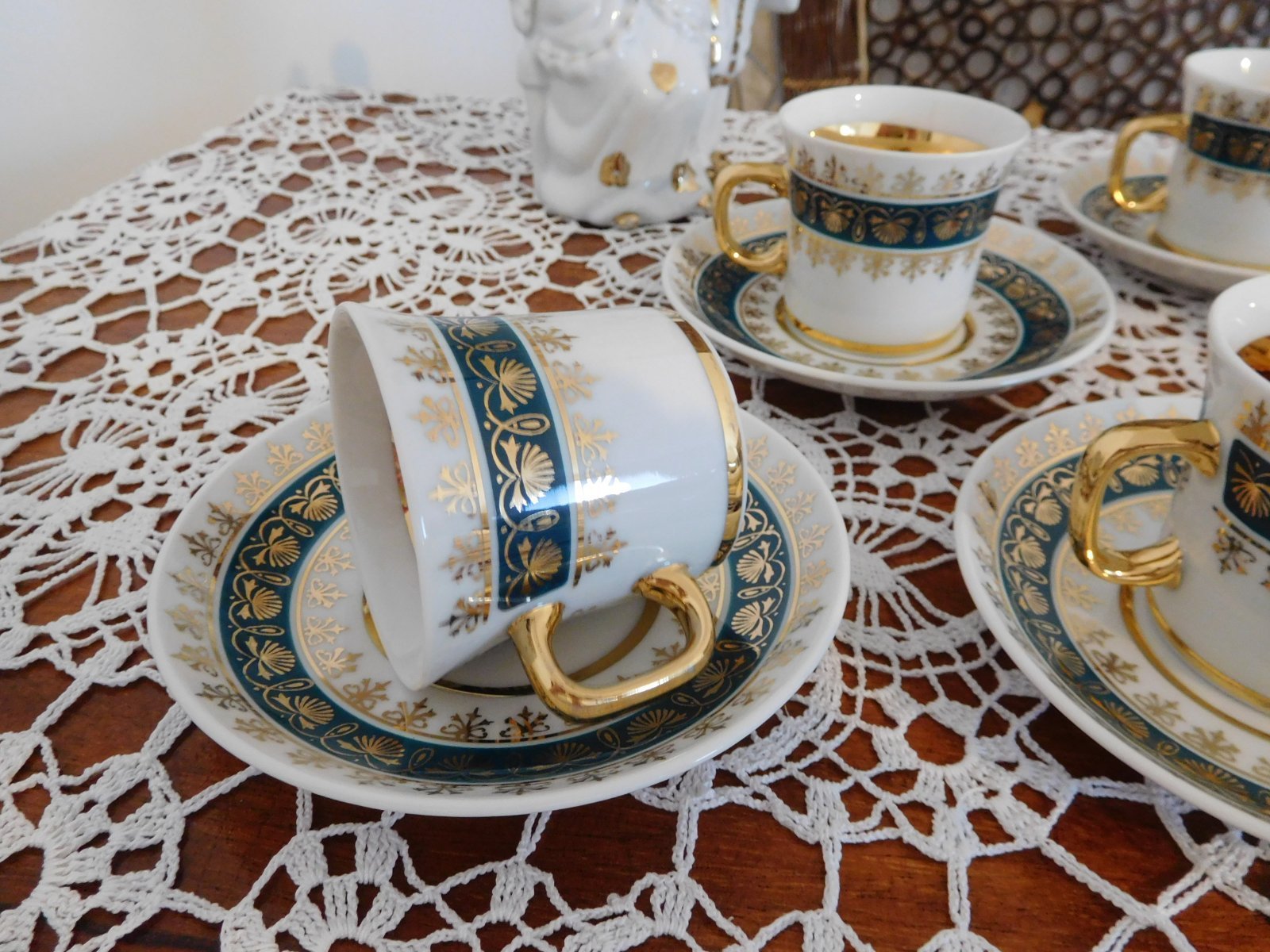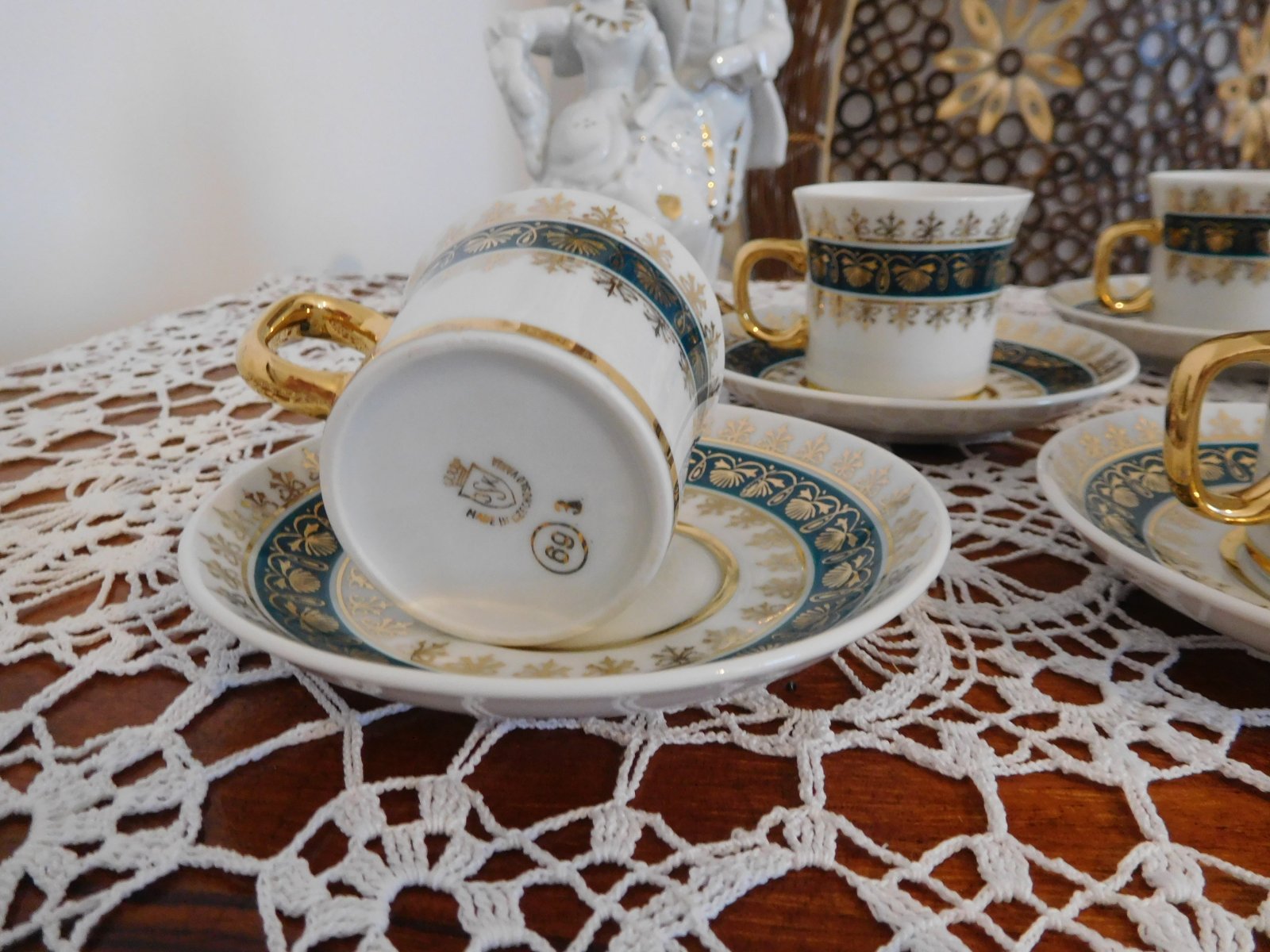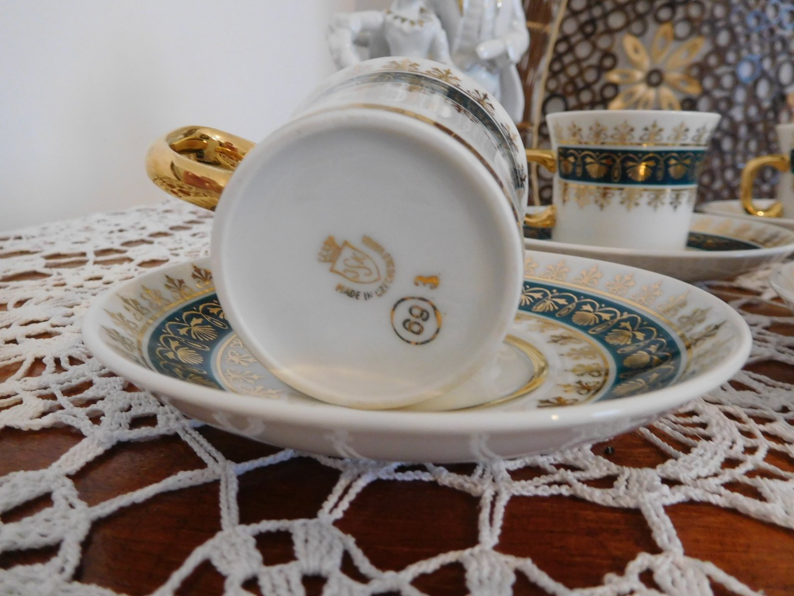 Zelené šálky so zlatou Čechoslovákia