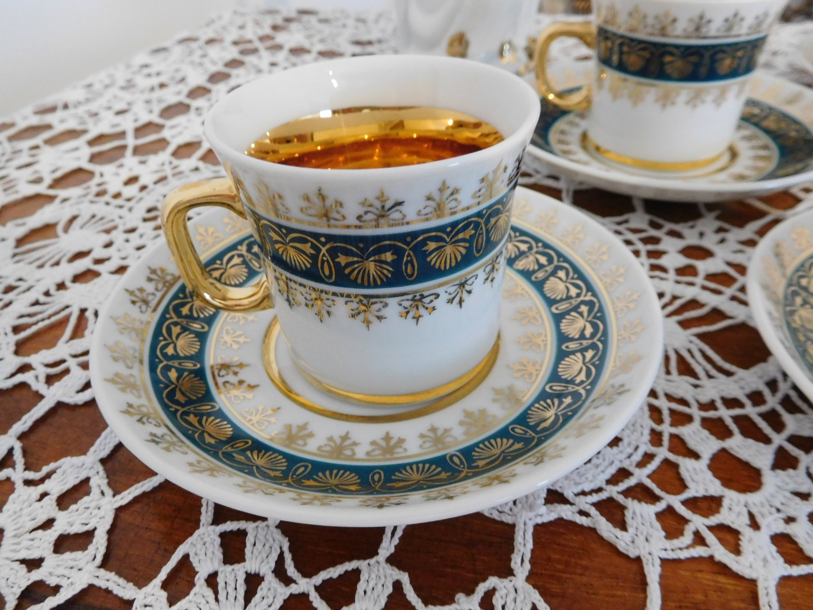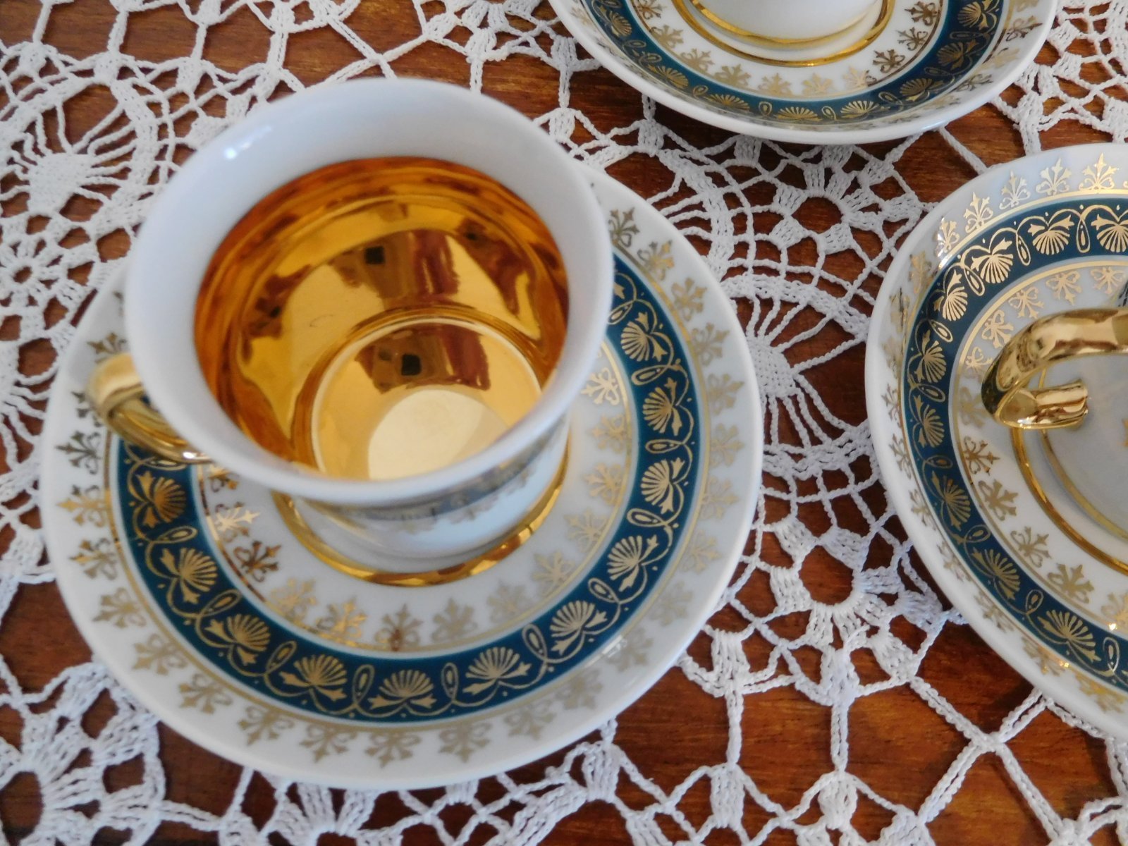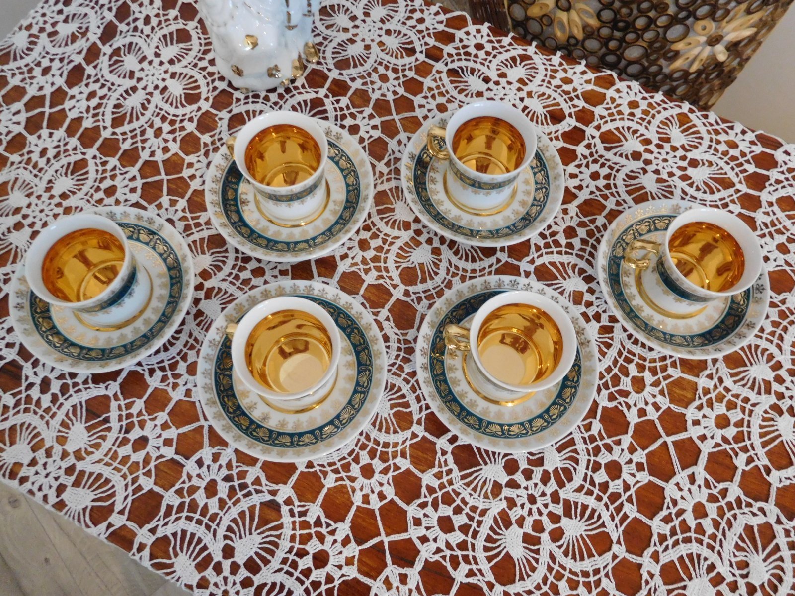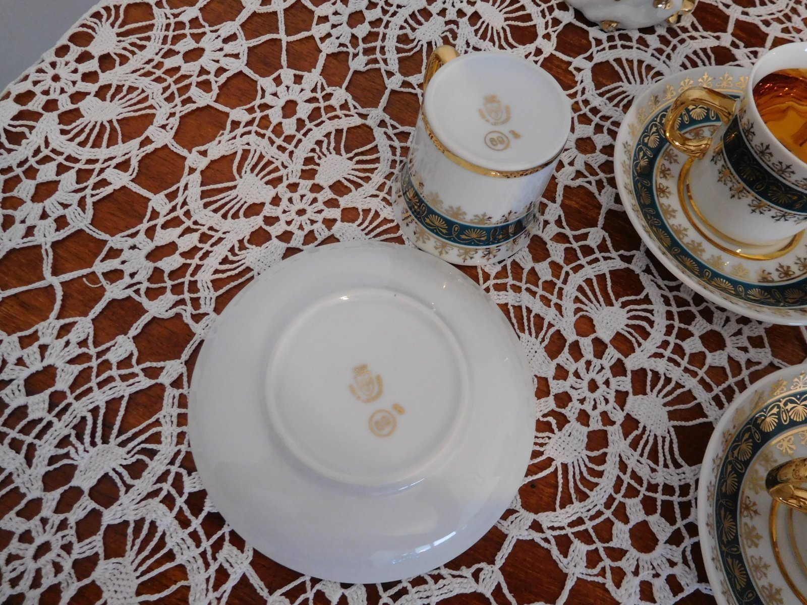 Zelené šálky so zlatou Čechoslovákia