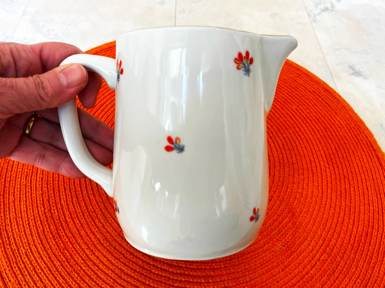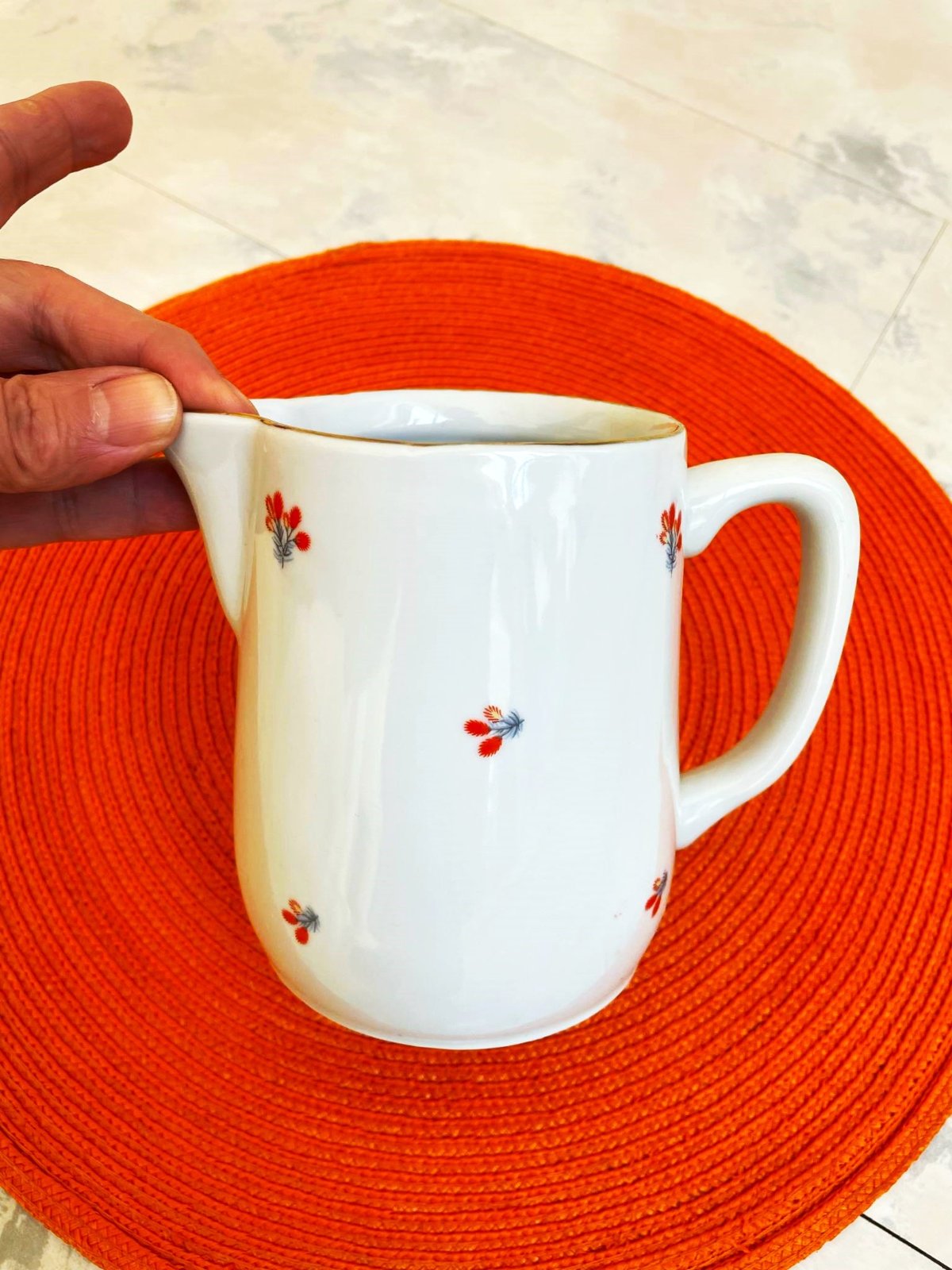 nepoškodený starý džbán,priemer = 9 cm,výška = 13 cm,zlatý lem
