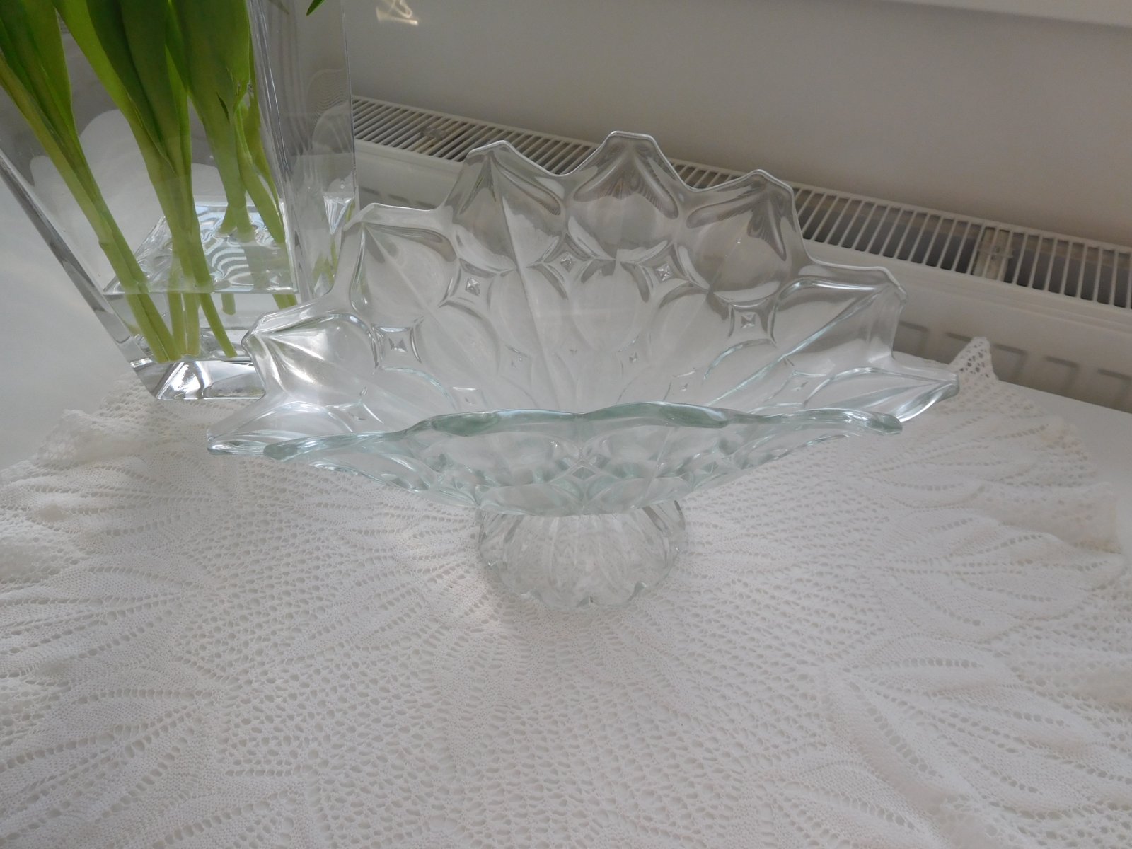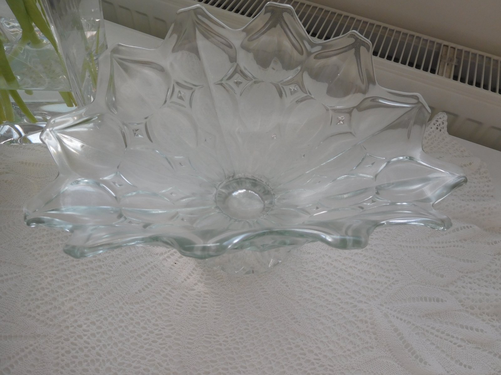 Ponúkam na predaj misu viď foto, krásne prevedenie misy z lisovaného skla na ovocie , tento RETRO kúsok može niekomu pripomínať detstvo -spomienku na babkin stol s ovocím,