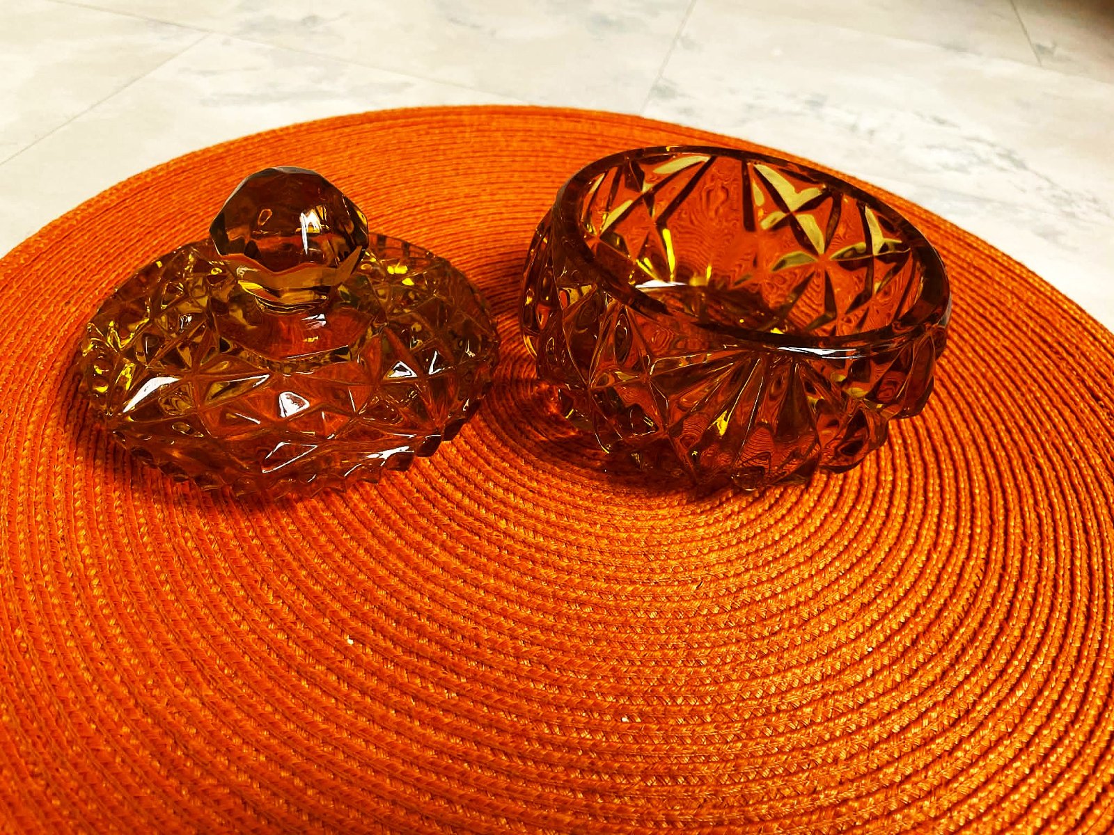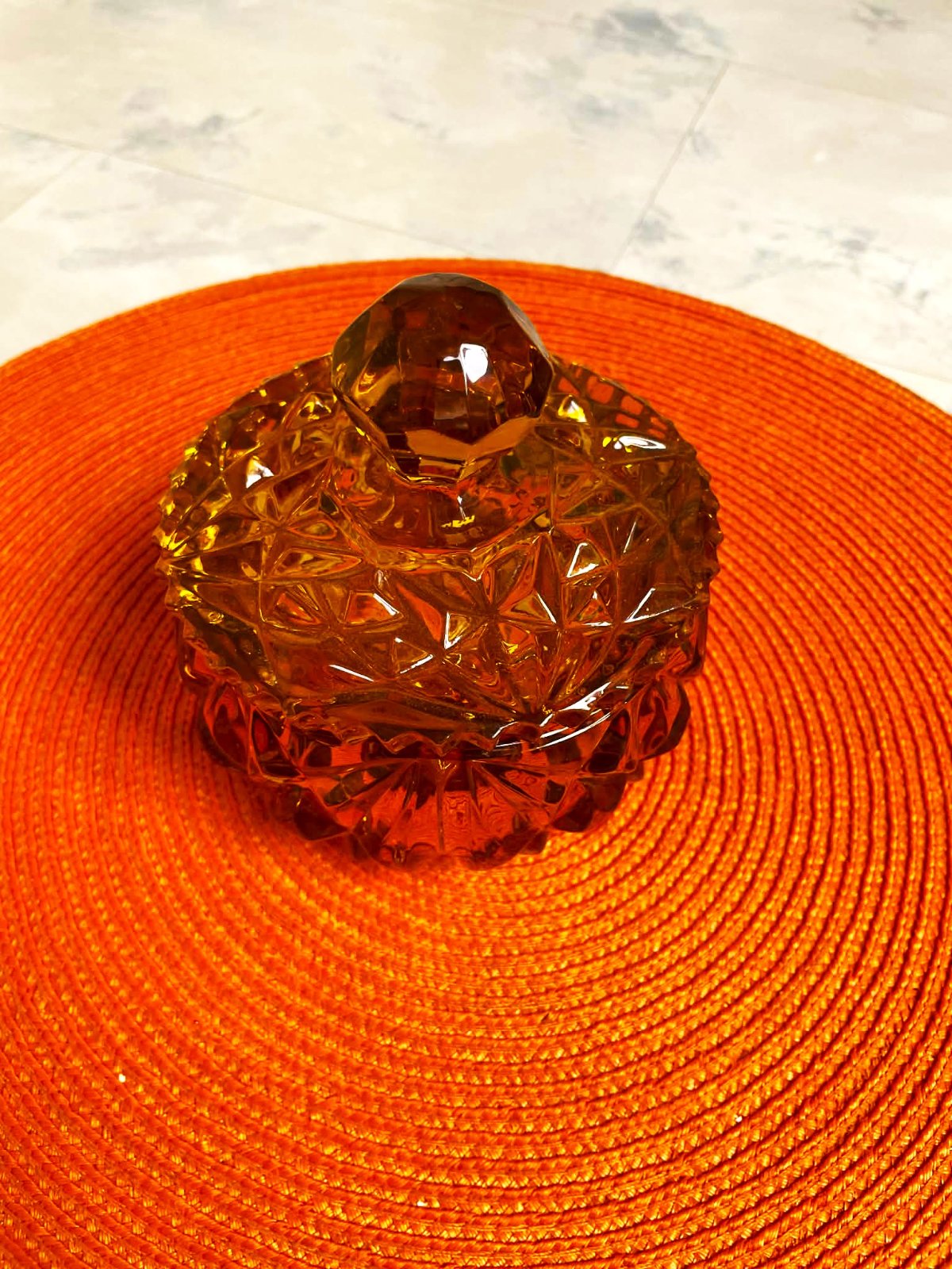 nádherná masívna nerozbitná bonboniére z hrubého skla,v top stave,nepoškodená,výška = 12 cm, priemer = 11 cm