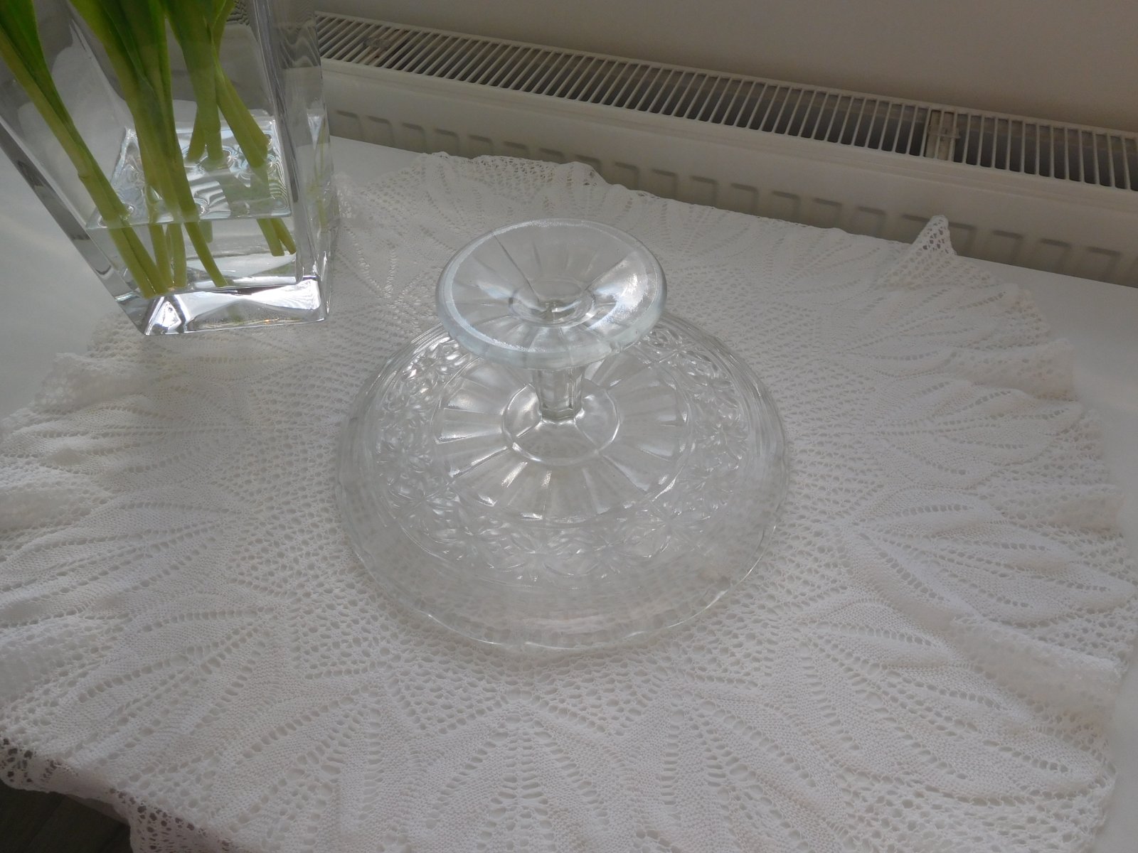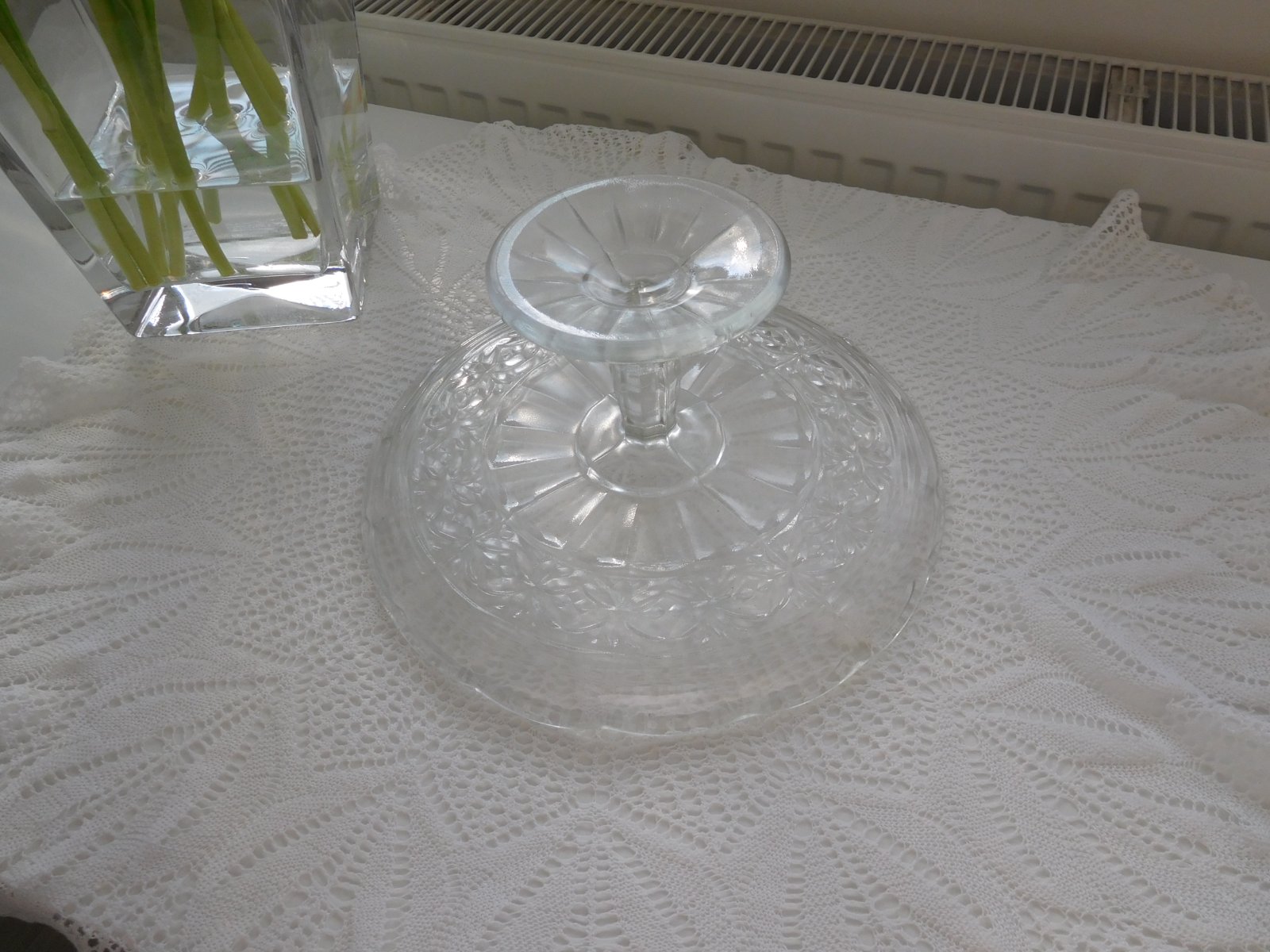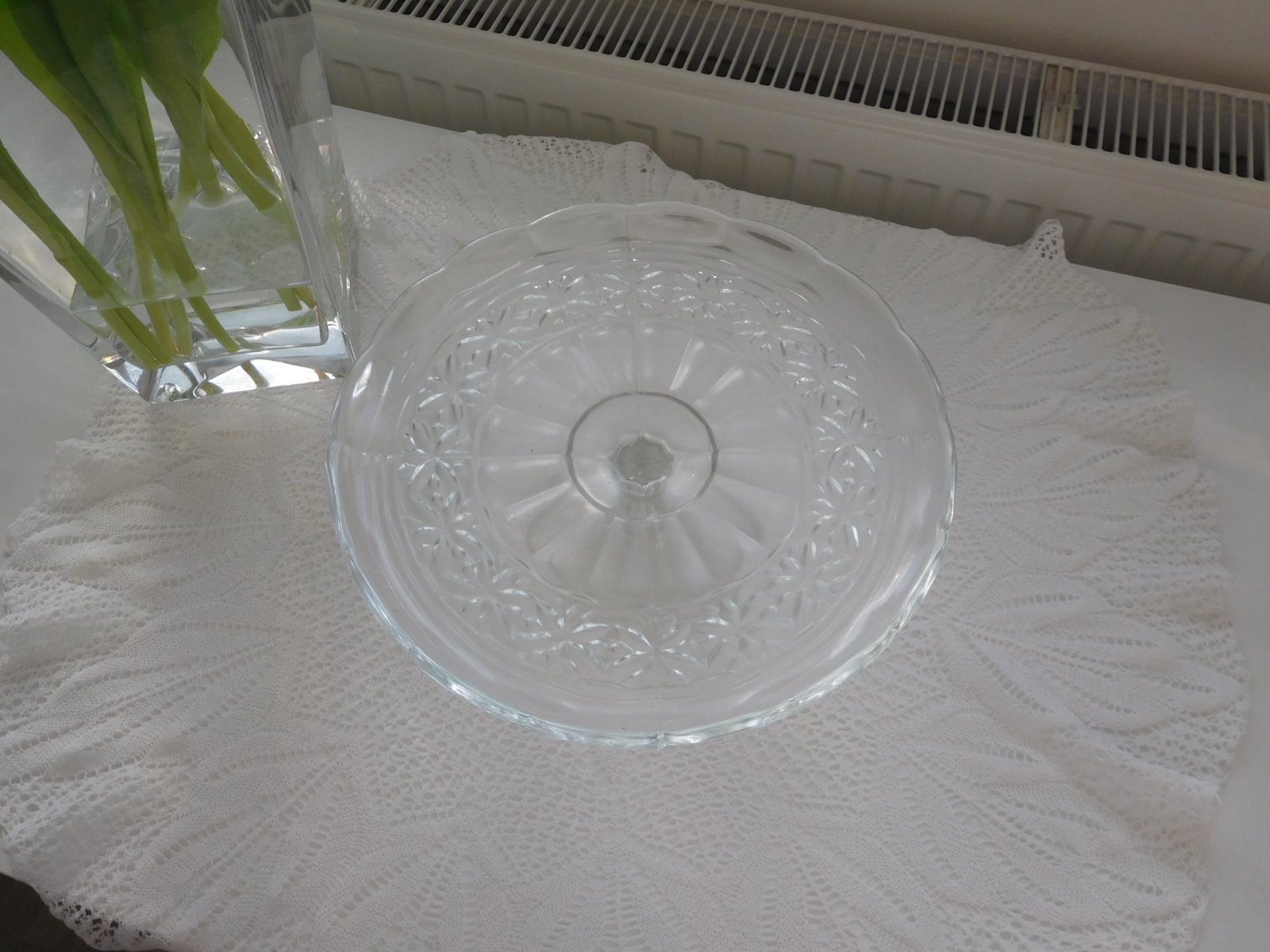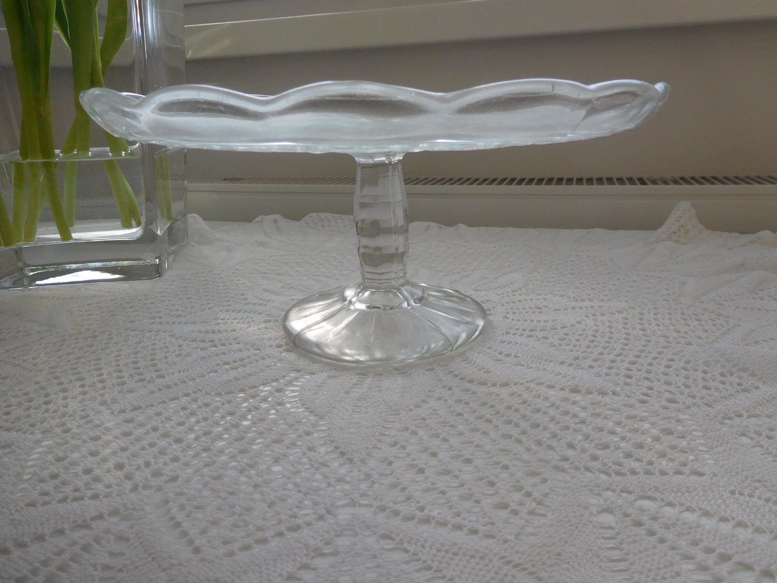 Podnos tortový livované sklo na nožičke,